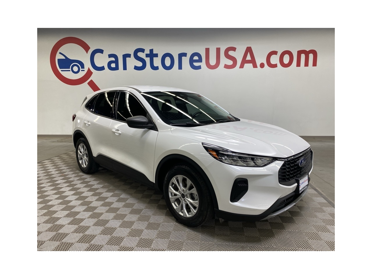 CARFAX One-Owner. THIS VEHICLE IS EQUIPPED WITH THE FOLLOWING FEATURES AND OPTIONS Equipment Group 200A, 3.81 Axle Ratio, 4-Wheel Disc Brakes, 6 Speakers, ABS brakes, Air Conditioning, Alloy wheels, AM/FM radio: SiriusXM, AM/FM Stereo, Auto High-beam Headlights, Automatic temperature control, Brake assist, Bumpers: body-color, Compass, Delay-off headlights, Driver door bin, Driver vanity mirror, Dual front impact airbags, Dual front side impact airbags, Electronic Stability Control, Emergency communication system: SYNC 4 911 Assist, Exterior Parking Camera Rear, FordPass Connect, Four wheel independent suspension, Front anti-roll bar, Front Bucket Seats, Front Center Armrest, Front dual zone A/C, Front License Plate Bracket, Front reading lights, Fully automatic headlights, Illuminated entry, Knee airbag, Low tire pressure warning, Occupant sensing airbag, Outside temperature display, Overhead airbag, Overhead console, Panic alarm, Passenger door bin, Passenger vanity mirror, Power door mirrors, Power driver seat, Power Liftgate, Power steering, Power windows, Radio data system, Rear anti-roll bar, Rear reading lights, Rear seat center armrest, Rear window defroster, Rear window wiper, Remote keyless entry, Speed control, Speed-sensing steering, Speed-Sensitive Wipers, Split folding rear seat, Spoiler, Steering wheel mounted audio controls, SYNC 4, Tachometer, Telescoping steering wheel, Tilt steering wheel, Traction control, Trip computer, Unique Cloth Front Bucket Seats, Variably intermittent wipers, and Wheels: 17" Shadow Silver-Painted Aluminum. Clean CARFAX. Star White Metallic Tri-Coat 2023 Ford Escape Active FWD 8-Speed Automatic 1.5L EcoBoost