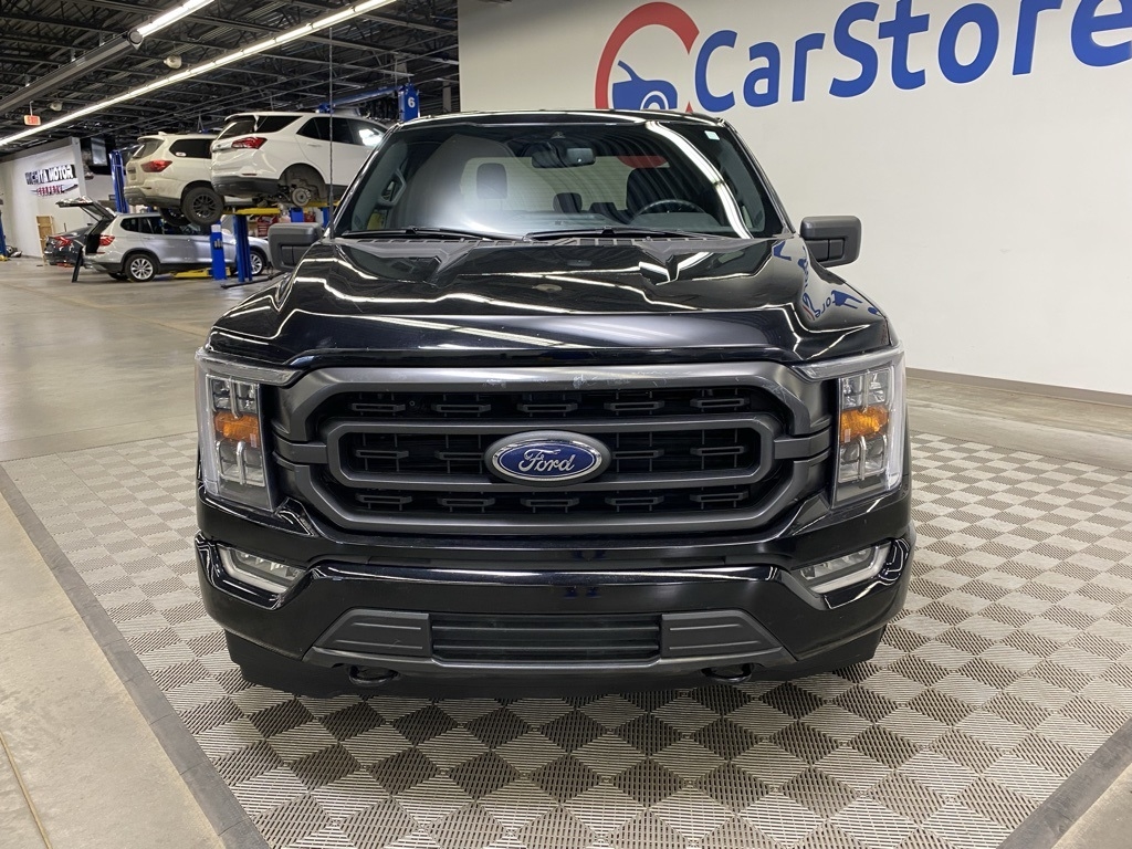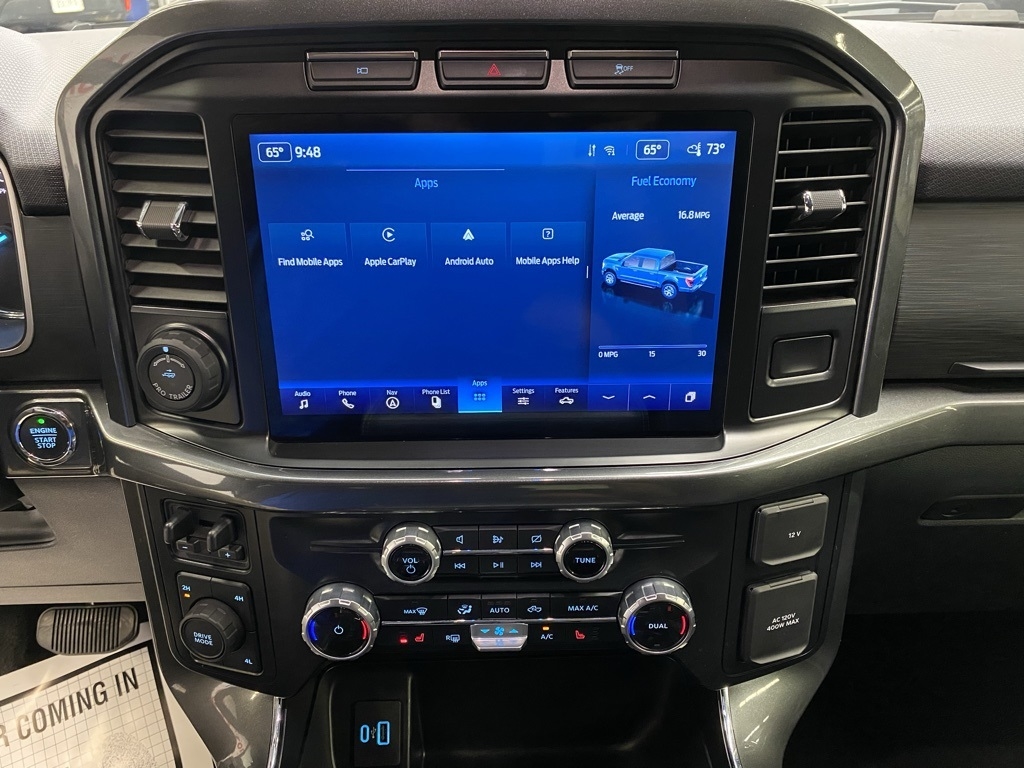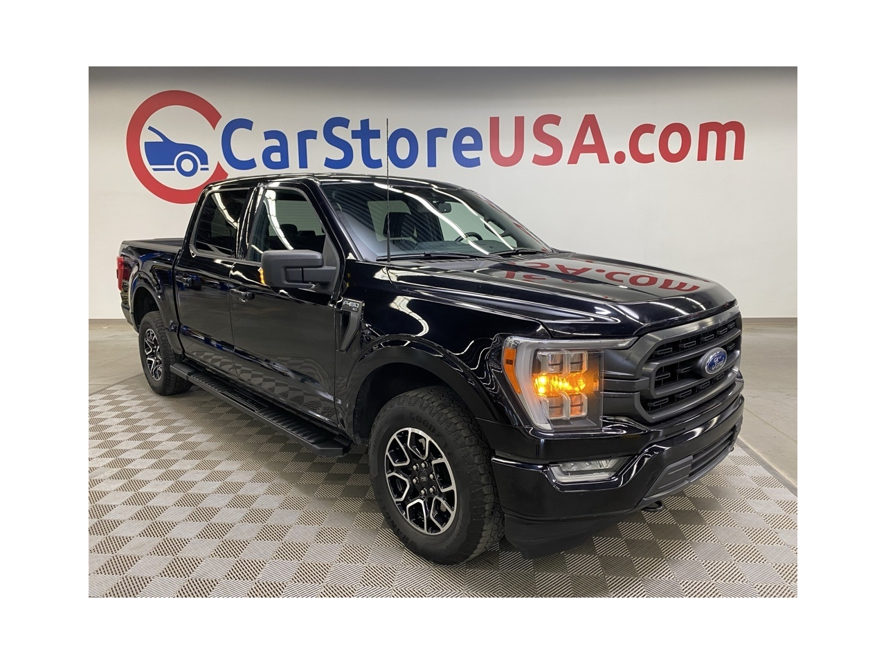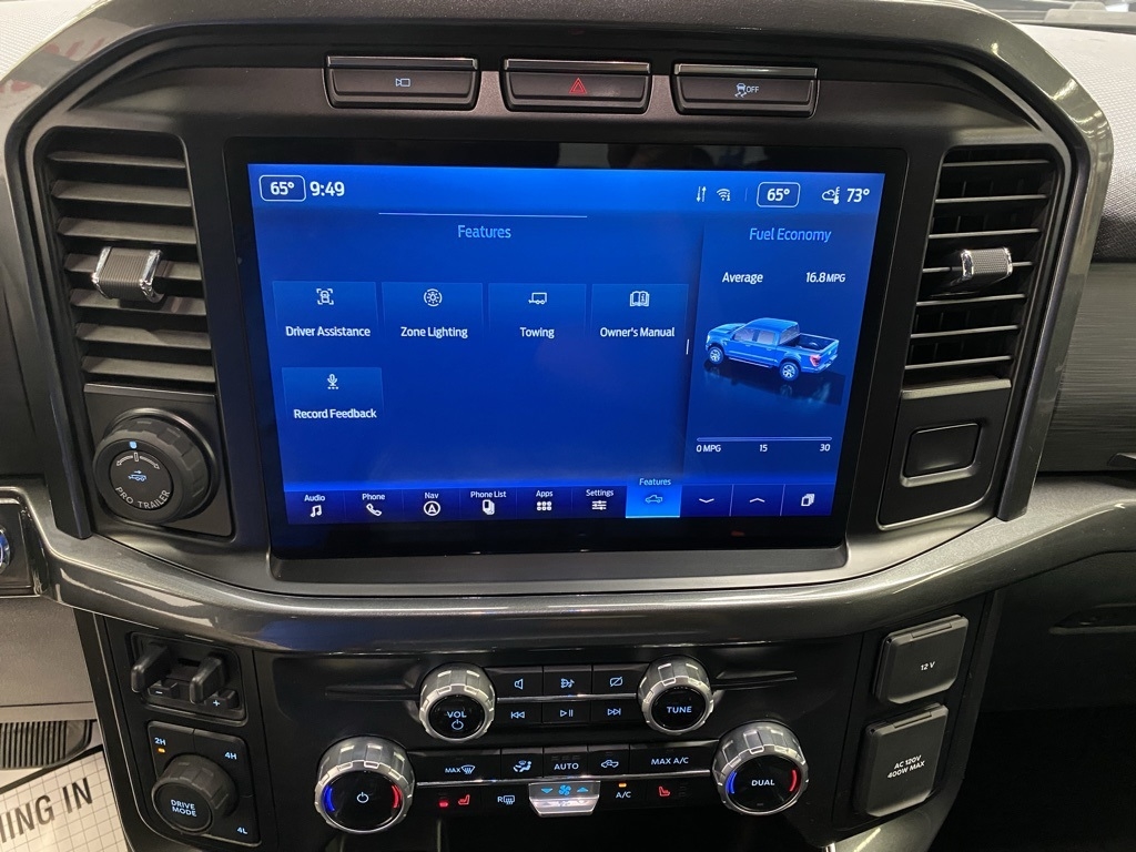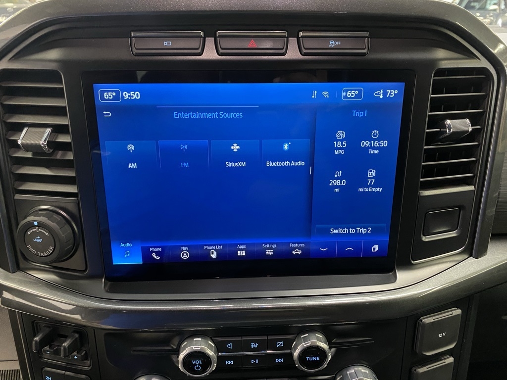 CARFAX One-Owner. THIS VEHICLE IS EQUIPPED WITH THE FOLLOWING FEATURES AND OPTIONS Equipment Group 302A High, Trailer Tow Package (Pro Trailer Backup Assist & Pro Trailer Hitch Assist), XLT Sport Appearance Package (Black 2-Bar Style Grille w/Black Surround/Accents, Body-Color Door & Tailgate Handles, Body-Color Front & Rear Bumpers, Box Side Decals, and Unique Sport Cloth 40/Console/40 Front-Seats), 3.31 Axle Ratio, 4-Wheel Disc Brakes, 6 Speakers, 6" Extended Dark Gray Accent Running Board, ABS brakes, Air Conditioning, Alloy wheels, AM/FM radio, Auto High-beam Headlights, Brake assist, Bumpers: chrome, Chrome Single-Tip Exhaust, Cloth 40/20/40 Front Seat, Compass, Delay-off headlights, Driver door bin, Driver vanity mirror, Dual front impact airbags, Dual front side impact airbags, Electronic Stability Control, Emergency communication system: SYNC 4 911 Assist, Exterior Parking Camera Rear, Front anti-roll bar, Front Center Armrest w/Storage, Front fog lights, Front License Plate Bracket, Front reading lights, Front wheel independent suspension, Fully automatic headlights, Heated door mirrors, Illuminated entry, Low tire pressure warning, Occupant sensing airbag, Outside temperature display, Overhead airbag, Overhead console, Panic alarm, Passenger door bin, Passenger vanity mirror, Power door mirrors, Power steering, Power windows, Radio data system, Radio: AM/FM Stereo w/6 Speakers, Rear reading lights, Rear step bumper, Rear window defroster, Remote keyless entry, Security system, Speed control, Speed-sensing steering, Split folding rear seat, Steering wheel mounted audio controls, SYNC 4, Tachometer, Telescoping steering wheel, Tilt steering wheel, Tough Bed Spray-In Bedliner, Traction control, Trip computer, Variably intermittent wipers, Voltmeter, and Wheels: 17" Silver Painted Aluminum. Clean CARFAX. Black 2023 Ford F-150 XLT 4WD 10-Speed Automatic 5.0L V8