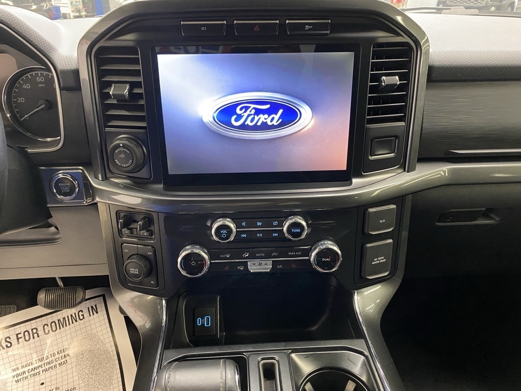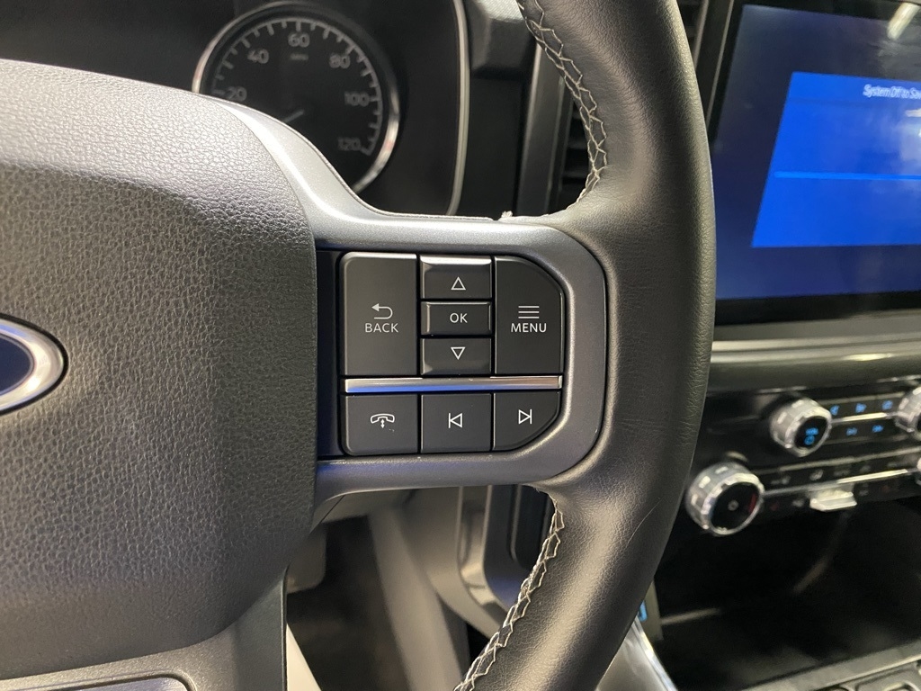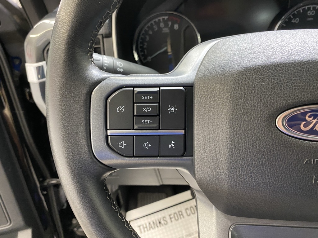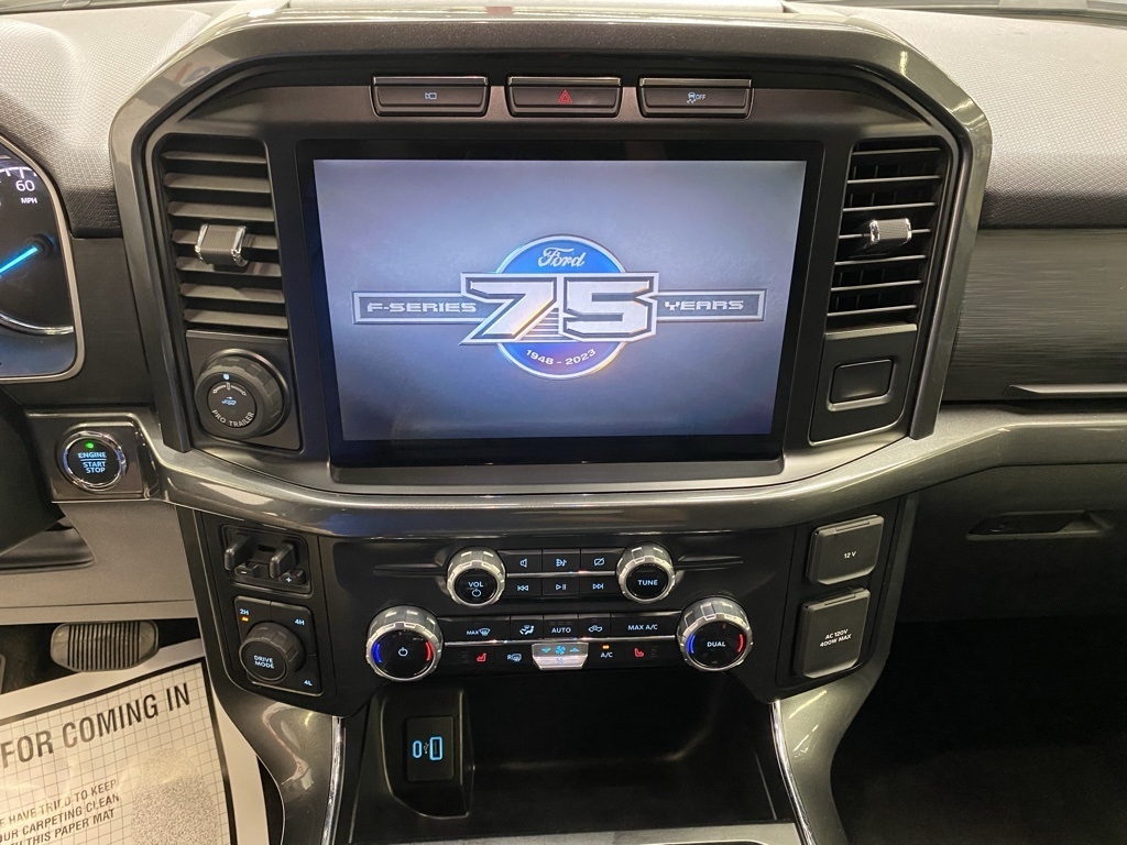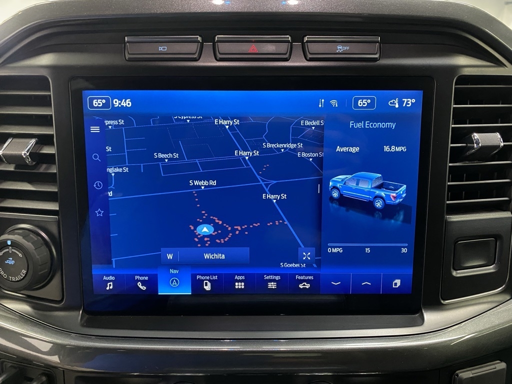 CARFAX One-Owner. THIS VEHICLE IS EQUIPPED WITH THE FOLLOWING FEATURES AND OPTIONS Equipment Group 302A High, Trailer Tow Package (Pro Trailer Backup Assist & Pro Trailer Hitch Assist), XLT Sport Appearance Package (Black 2-Bar Style Grille w/Black Surround/Accents, Body-Color Door & Tailgate Handles, Body-Color Front & Rear Bumpers, Box Side Decals, and Unique Sport Cloth 40/Console/40 Front-Seats), 3.31 Axle Ratio, 4-Wheel Disc Brakes, 6 Speakers, 6" Extended Dark Gray Accent Running Board, ABS brakes, Air Conditioning, Alloy wheels, AM/FM radio, Auto High-beam Headlights, Brake assist, Bumpers: chrome, Chrome Single-Tip Exhaust, Cloth 40/20/40 Front Seat, Compass, Delay-off headlights, Driver door bin, Driver vanity mirror, Dual front impact airbags, Dual front side impact airbags, Electronic Stability Control, Emergency communication system: SYNC 4 911 Assist, Exterior Parking Camera Rear, Front anti-roll bar, Front Center Armrest w/Storage, Front fog lights, Front License Plate Bracket, Front reading lights, Front wheel independent suspension, Fully automatic headlights, Heated door mirrors, Illuminated entry, Low tire pressure warning, Occupant sensing airbag, Outside temperature display, Overhead airbag, Overhead console, Panic alarm, Passenger door bin, Passenger vanity mirror, Power door mirrors, Power steering, Power windows, Radio data system, Radio: AM/FM Stereo w/6 Speakers, Rear reading lights, Rear step bumper, Rear window defroster, Remote keyless entry, Security system, Speed control, Speed-sensing steering, Split folding rear seat, Steering wheel mounted audio controls, SYNC 4, Tachometer, Telescoping steering wheel, Tilt steering wheel, Tough Bed Spray-In Bedliner, Traction control, Trip computer, Variably intermittent wipers, Voltmeter, and Wheels: 17" Silver Painted Aluminum. Clean CARFAX. Black 2023 Ford F-150 XLT 4WD 10-Speed Automatic 5.0L V8