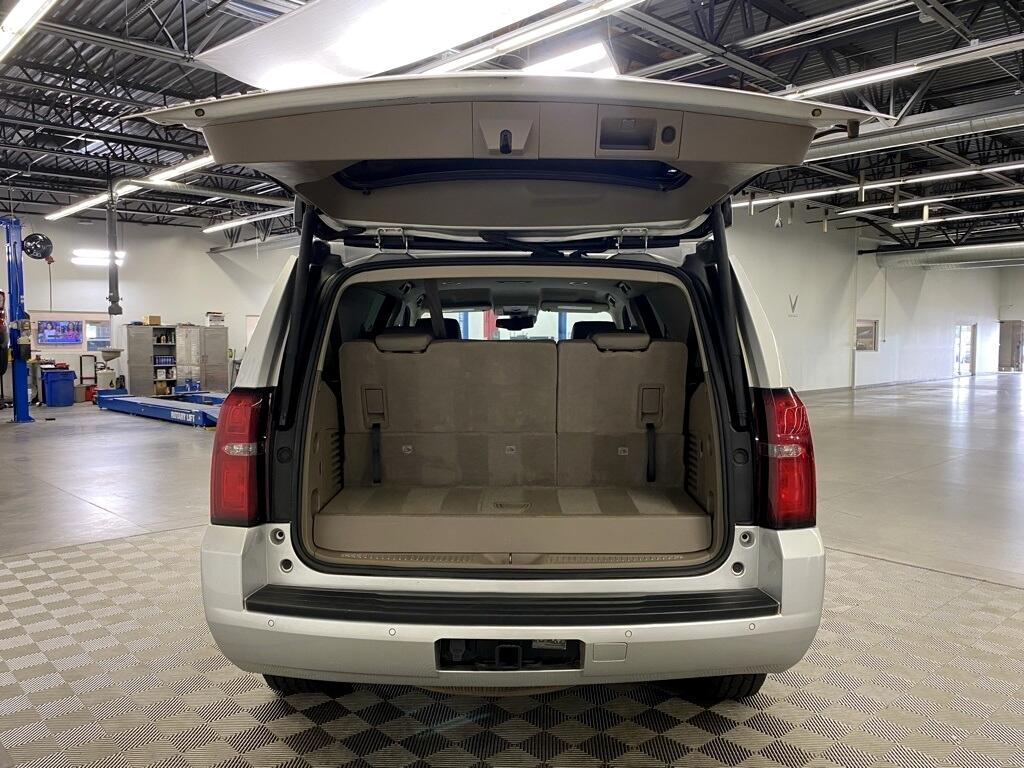 THIS VEHICLE IS EQUIPPED WITH THE FOLLOWING FEATURES AND OPTIONS Enhanced Driver Alert Package (Y86) (Automatic Emergency Braking, Forward Collision Alert, IntelliBeam Headlamps, and Lane Keep Assist w/Lane Departure Warning), License Plate Front Mounting Package, Preferred Equipment Group 1LT (1st & 2nd Row Color-Keyed Carpeted Floor Mats, 2nd Row 60/40 Split-Folding Manual Bench, 3rd Row Manual 60/40 Split-Folding Fold Flat Bench, 4-Wheel Antilock Disc Brakes w/Brake Assist, 5 12-Volt Auxiliary Power Outlets, Auto-Dimming Inside Rear-View Mirror, Black Assist Steps, Bose Premium 9-Speaker System, Cargo Net, Color-Keyed Carpeting Floor Covering, Driver Inboard & Front Passenger Airbags, Electronic Cruise Control w/Set & Resume Speed, Extended-Range Remote Keyless Entry, Floor Console, Front Passenger 6-Way Power Seat Adjuster, Leather-Wrapped Steering Wheel, Memory Settings, Power Liftgate, Power-Adjustable Accelerator & Brake Pedals, Rear Park Assist w/Audible Warning, Remote Vehicle Start, Roof-Mounted Luggage Rack Side Rails, SiriusXM Radio, and Universal Home Remote), Premium Smooth Ride Suspension Package, 18" x 8.5" Aluminum Wheels, 3.08 Rear Axle Ratio, 3rd row seats: split-bench, 4-Wheel Disc Brakes, 9 Speakers, ABS brakes, Adjustable pedals, Air Conditioning, Alloy wheels, AM/FM radio: SiriusXM, Apple CarPlay/Android Auto, Auto High-beam Headlights, Auto-dimming Rear-View mirror, Automatic temperature control, Bluetooth for Phone, Brake assist, Bumpers: body-color, CD player, Compass, Delay-off headlights, Driver door bin, Driver vanity mirror, Dual front impact airbags, Dual front side impact airbags, Electronic Stability Control, Emergency communication system: OnStar and Chevrolet connected services capable, Exterior Parking Camera Rear, Front anti-roll bar, Front Bucket Seats, Front Center Armrest, Front dual zone A/C, Front Heated Reclining Bucket Seats, Front reading lights, Front wheel independent suspension, Fully automatic headlights, Garage door transmitter, HD Radio, Heated door mirrors, Heated front seats, Illuminated entry, Leather steering wheel, Leather-Appointed Seat Trim, Low tire pressure warning, Memory seat, Occupant sensing airbag, Outside temperature display, Overhead airbag, Overhead console, Panic alarm, Passenger door bin, Passenger vanity mirror, Pedal memory, Power door mirrors, Power driver seat, Power passenger seat, Power steering, Power windows, Premium audio system: Chevrolet MyLink, Radio: Chevrolet Infotainment AM/FM Stereo, Radio: Chevrolet Infotainment AM/FM Stereo w/Nav, Rain sensing wipers, Rear air conditioning, Rear anti-roll bar, Rear reading lights, Rear seat center armrest, Rear window defroster, Rear window wiper, Remote keyless entry, Security system, Single-Slot CD/MP3 Player, SiriusXM NavTraffic, Speed control, Speed-sensing steering, Split folding rear seat, Spoiler, Steering wheel mounted audio controls, Tachometer, Telescoping steering wheel, Tilt steering wheel, Traction control, Trip computer, Variably intermittent wipers, and Voltmeter. Clean CARFAX. Silver Ice Metallic 2020 Chevrolet Tahoe LT 4WD 6-Speed Automatic Electronic with Overdrive EcoTec3 5.3L V8