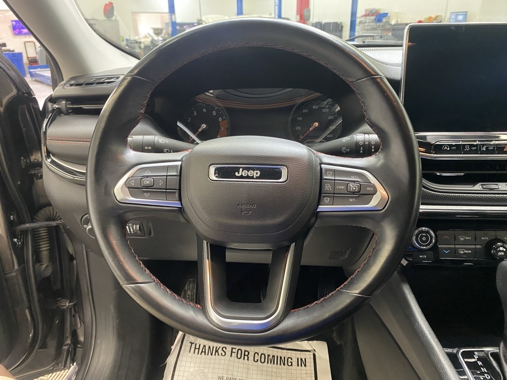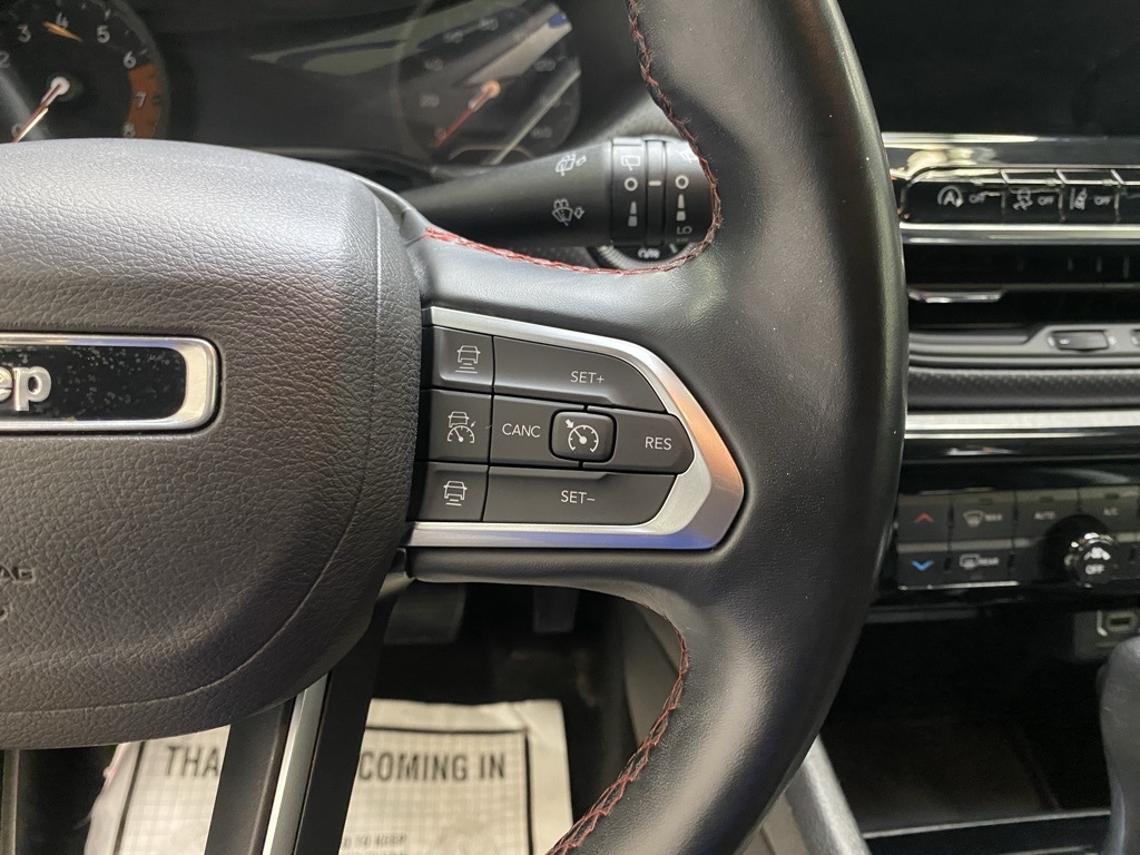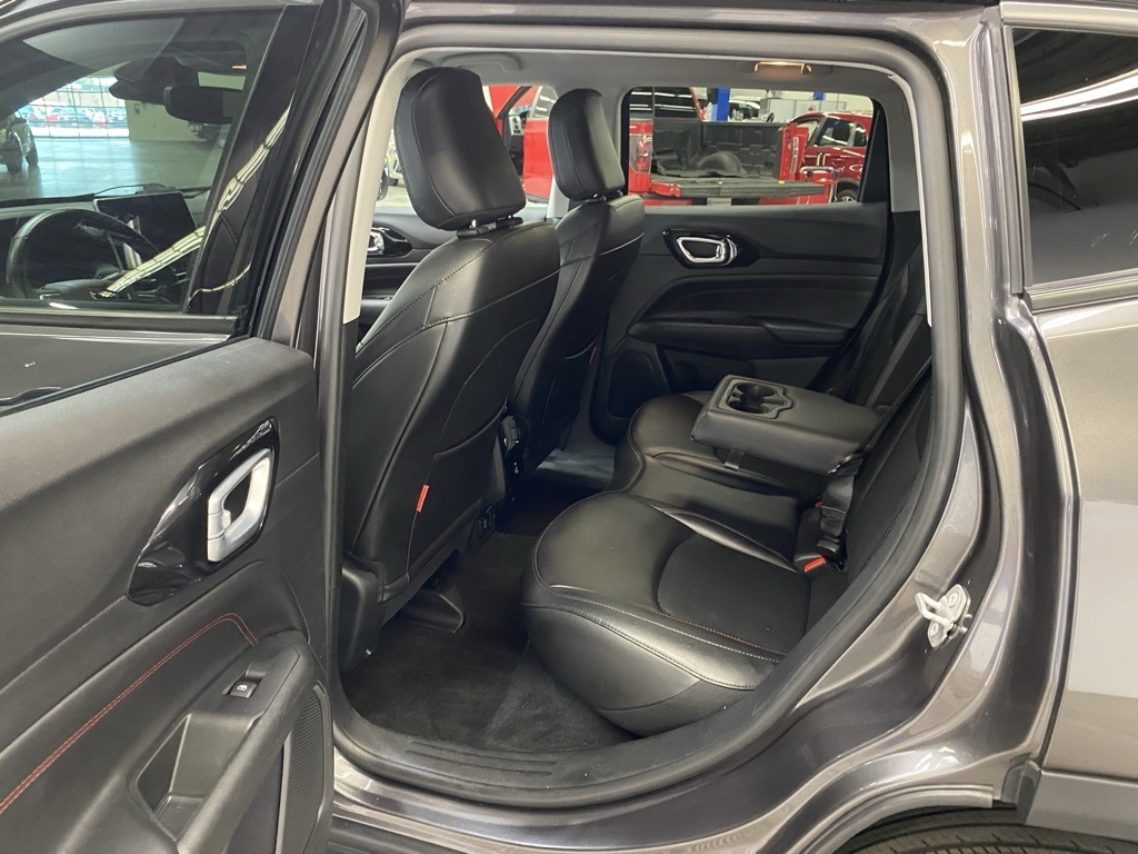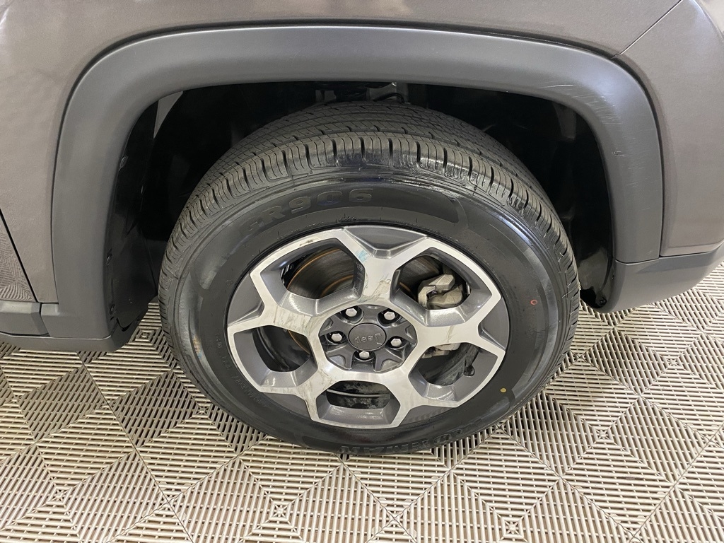 THIS VEHICLE IS EQUIPPED WITH THE FOLLOWING FEATURES AND OPTIONS Quick Order Package 2GE, Trailhawk Convenience Group (115V Auxiliary Power Outlet, 2nd Row USB Type A/C Charge Only, Heated Front Seats, Leather Wrapped Steering Wheel, Power 2-Way Driver Lumbar Adjust, Power Adjust 8-Way Driver Seat, Remote Start System, Reversible Carpet/Vinyl Cargo Mat, Vehicle Information Center, and Windshield Wiper De-Icer), 10.1" Touchscreen Display, 4-Wheel Disc Brakes, 4.334 Axle Ratio, 6 Speakers, ABS brakes, Air Conditioning, Alloy wheels, AM/FM radio: SiriusXM, Anti-whiplash front head restraints, Auto High-beam Headlights, Auto-dimming Rear-View mirror, Automatic temperature control, Brake assist, Bumpers: body-color, Compass, Delay-off headlights, Disassociated Touchscreen Display, Driver door bin, Driver vanity mirror, Dual front impact airbags, Dual front side impact airbags, Electronic Stability Control, Emergency communication system: SiriusXM Guardian, Four wheel independent suspension, Front anti-roll bar, Front Bucket Seats, Front Center Armrest w/Storage, Front dual zone A/C, Front fog lights, Front License Plate Bracket, Front reading lights, Fully automatic headlights, Global Telematics Box Module (TBM), Heated door mirrors, Illuminated entry, Knee airbag, Leather Shift Knob, Low tire pressure warning, Occupant sensing airbag, Outside temperature display, Overhead airbag, Overhead console, Panic alarm, ParkView Rear Back-Up Camera, Passenger door bin, Passenger vanity mirror, Power door mirrors, Power steering, Power windows, Premium Cloth/Leather Trim Bucket Seats, Radio: Uconnect 5 w/10.1" Display, Rain sensing wipers, Rear anti-roll bar, Rear seat center armrest, Rear window defroster, Rear window wiper, Remote keyless entry, Roof rack: rails only, Security system, Speed control, Split folding rear seat, Spoiler, Steering wheel mounted audio controls, Tachometer, Telescoping steering wheel, Tilt steering wheel, Traction control, Trip computer, Turn signal indicator mirrors, Variably intermittent wipers, and Wheels: 17" x 6.5" Painted Diamond Cut Aluminum. Clean CARFAX. Granite Crystal Metallic Clearcoat 2022 Jeep Compass Trailhawk 4WD 9-Speed 948TE Automatic 2.4L I4