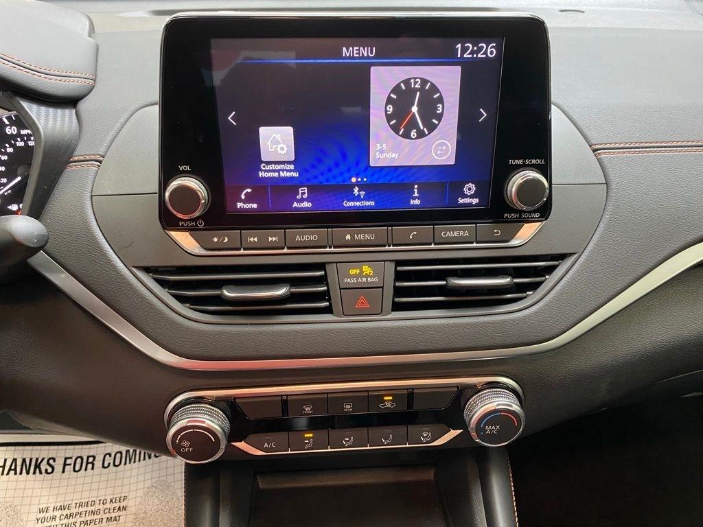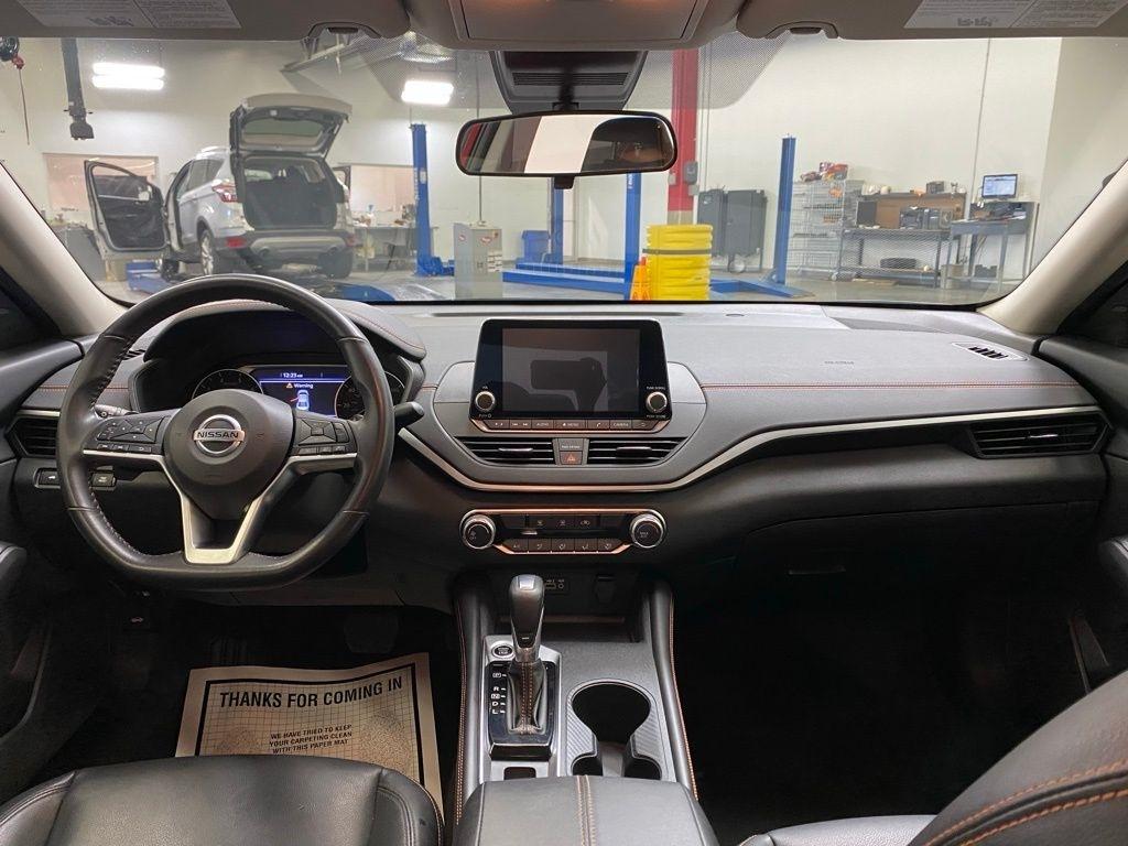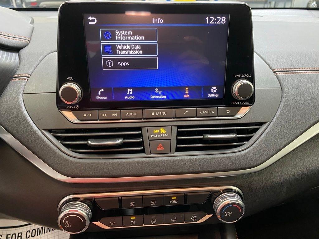 CARFAX One-Owner. THIS VEHICLE IS EQUIPPED WITH THE FOLLOWING FEATURES AND OPTIONS 4-Wheel Disc Brakes, 6 Speakers, ABS brakes, Air Conditioning, Alloy wheels, AM/FM radio: SiriusXM, Auto High-beam Headlights, Blind Spot Warning, Body-Colored Splash Guards, Brake assist, Bumpers: body-color, Chrome Bumper Protector, Delay-off headlights, Driver door bin, Driver vanity mirror, Dual front impact airbags, Dual front side impact airbags, Electronic Stability Control, Four wheel independent suspension, Front anti-roll bar, Front Bucket Seats, Front Center Armrest, Front reading lights, Front Sport Bucket Seats, Fully automatic headlights, Illuminated entry, Knee airbag, Leather Shift Knob, Low tire pressure warning, NissanConnect featuring Apple CarPlay and Android Auto, Occupant sensing airbag, Outside temperature display, Overhead airbag, Overhead console, Panic alarm, Passenger door bin, Passenger vanity mirror, Power door mirrors, Power driver seat, Power steering, Power windows, Radio data system, Radio: AM/FM Audio System, Rear anti-roll bar, Rear Parking Sensors, Rear reading lights, Rear seat center armrest, Rear side impact airbag, Rear window defroster, Remote keyless entry, Security system, Speed control, Speed-sensing steering, Speed-Sensitive Wipers, Split folding rear seat, Sport Seat Trim, Sport steering wheel, SR Floor Mats/Trunk Mat/Hideaway Nets, Steering wheel mounted audio controls, Tachometer, Telescoping steering wheel, Tilt steering wheel, Traction control, Trip computer, Trunk Organizer Tray, Variably intermittent wipers, and Wheels: 19" Machined Alloy. Clean CARFAX. Scarlet Ember Tintcoat 2022 Nissan Altima 2.5 SR AWD CVT with Xtronic 2.5L 4-Cylinder DOHC 16V