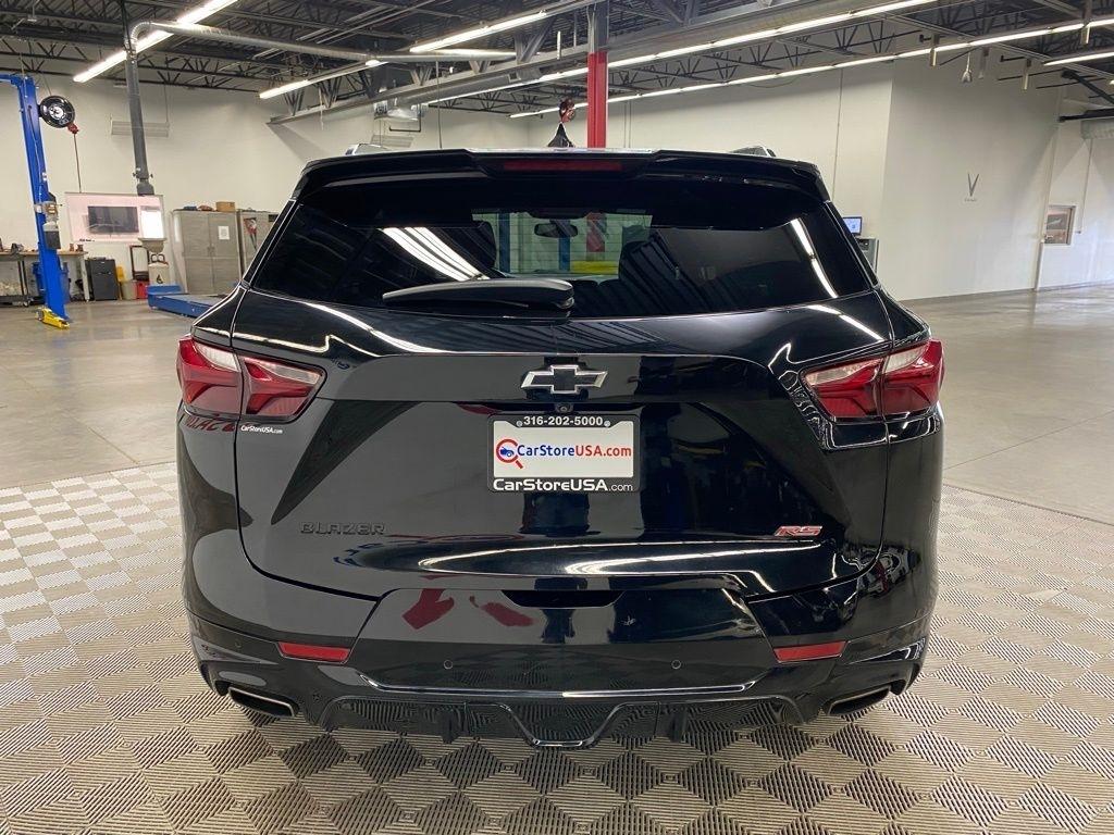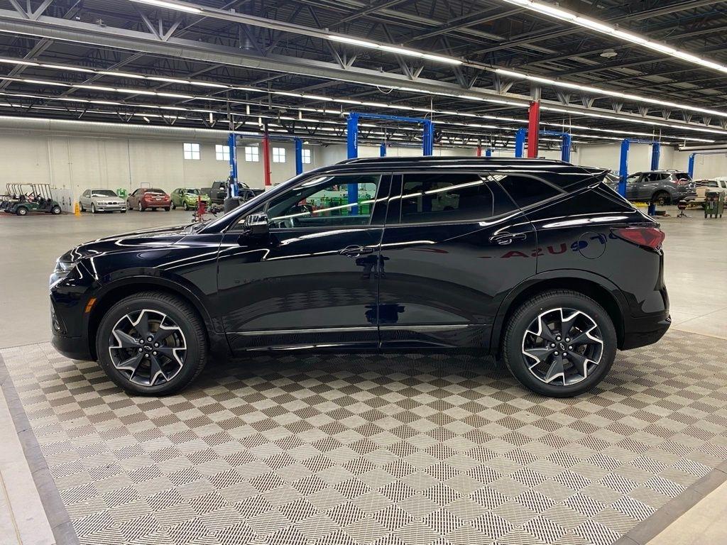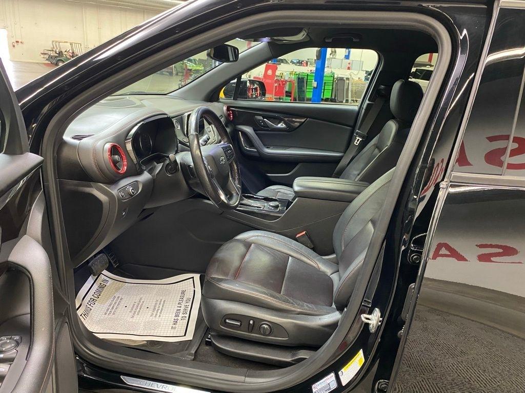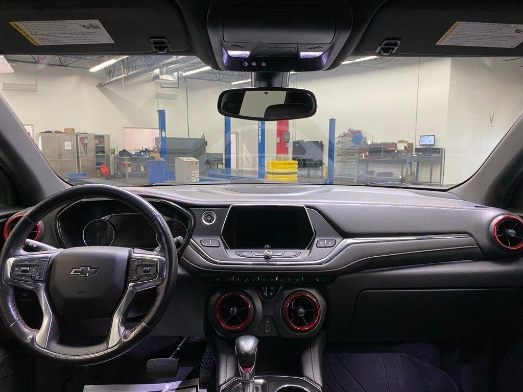 CARFAX One-Owner. THIS VEHICLE IS EQUIPPED WITH THE FOLLOWING FEATURES AND OPTIONS Preferred Equipment Group 1RS, 155 Amp Alternator, 3.49 Final Drive Axle Ratio, 4-Wheel Disc Brakes, 6 Speakers, 6-Speaker Audio System Feature, 6-Way Power Front Passenger Seat Adjuster, ABS brakes, Air Conditioning, Alloy wheels, AM/FM radio: SiriusXM, Apple CarPlay/Android Auto, Auto-dimming door mirrors, Auto-dimming Rear-View mirror, Automatic temperature control, Brake assist, Bumpers: body-color, Child-Seat-Sensing Airbag, Compass, Delay-off headlights, Driver door bin, Driver vanity mirror, Dual front impact airbags, Dual front side impact airbags, Electronic Stability Control, Emergency communication system: OnStar and Chevrolet connected services capable, Exterior Parking Camera Rear, Four wheel independent suspension, Front anti-roll bar, Front Bucket Seats, Front Center Armrest, Front dual zone A/C, Front reading lights, Fully automatic headlights, Garage door transmitter, Heated door mirrors, Heated Driver & Front Passenger Seats, Heated front seats, Heated steering wheel, High-Intensity Discharge Headlights, Illuminated entry, Knee airbag, Leather Shift Knob, Low tire pressure warning, Navigation System, Occupant sensing airbag, Outside temperature display, Overhead airbag, Overhead console, Panic alarm, Passenger door bin, Passenger vanity mirror, Perforated Leather-Appointed Seat Trim, Power door mirrors, Power driver seat, Power Liftgate, Power passenger seat, Power steering, Power windows, Radio data system, Radio: Chevrolet Infotainment 3 Plus System, Rear anti-roll bar, Rear reading lights, Rear seat center armrest, Rear window defroster, Rear window wiper, Remote keyless entry, Ride & Handling Suspension, Security system, SiriusXM w/360L, Speed control, Speed-sensing steering, Split folding rear seat, Spoiler, Steering wheel mounted audio controls, Tachometer, Telescoping steering wheel, Tilt steering wheel, Traction control, Trip computer, Turn signal indicator mirrors, Variably intermittent wipers, Voltmeter, and Wheels: 20" Dark Android Machined-Face Aluminum. Clean CARFAX. Black 2020 Chevrolet Blazer RS FWD 9-Speed Automatic 3.6L V6 SIDI DOHC VVT