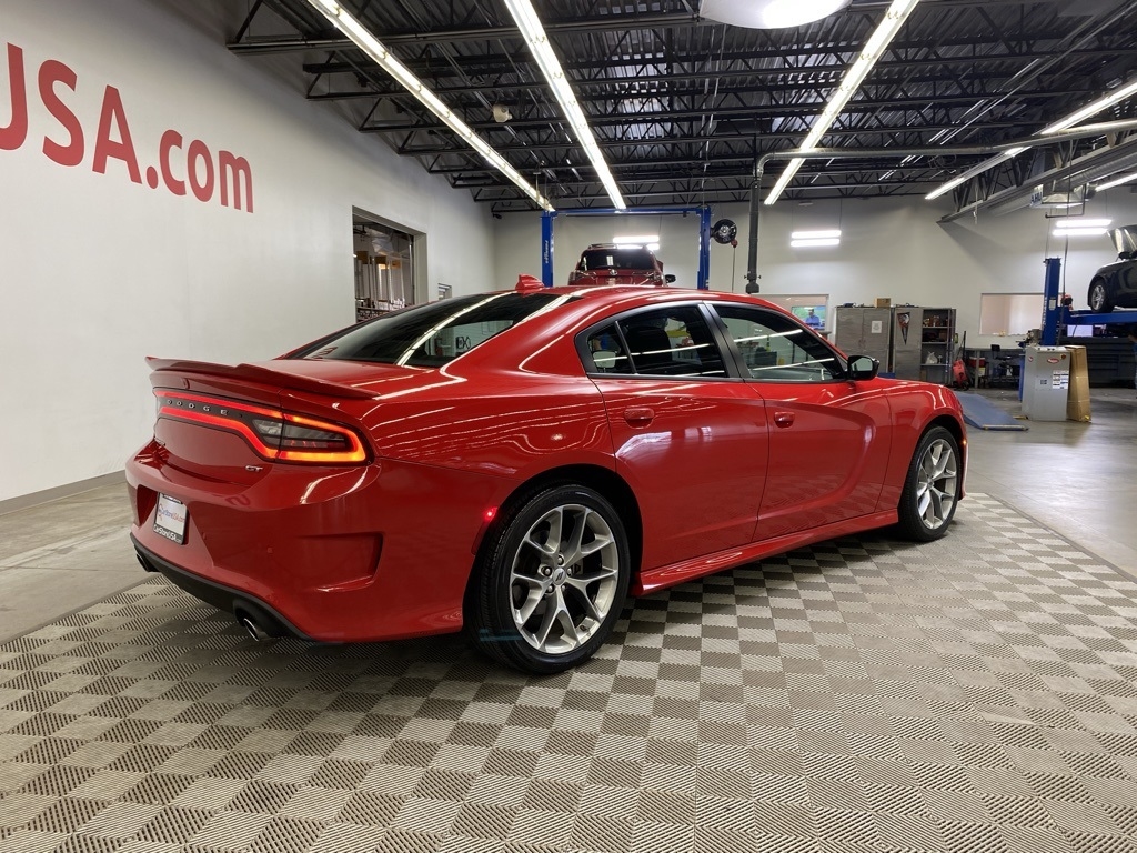 CARFAX One-Owner. THIS VEHICLE IS EQUIPPED WITH THE FOLLOWING FEATURES AND OPTIONS Quick Order Package 2EH, 1-Yr SiriusXM Guardian Trial, 2-Piece Shark Fin Antenna, 4-Wheel Disc Brakes, 4G LTE Wi-Fi Hot Spot, 6 Speakers, 8.4" Touchscreen Display, ABS brakes, Air Conditioning, Alloy wheels, AM/FM radio: SiriusXM, Anti-whiplash front head restraints, Apple CarPlay, Apple CarPlay/Android Auto, Auto-dimming Rear-View mirror, Automatic temperature control, Brake assist, Bumpers: body-color, Cloth Performance Seats, Compass, Delay-off headlights, Driver door bin, Driver vanity mirror, Dual front impact airbags, Dual front side impact airbags, Electronic Stability Control, Emergency communication system: SiriusXM Guardian, For Details, Visit DriveUconnect.com, Four wheel independent suspension, Front anti-roll bar, Front Bucket Seats, Front Center Armrest, Front dual zone A/C, Front License Plate Bracket, Front reading lights, Fully automatic headlights, Garage door transmitter: HomeLink, Google Android Auto, GPS Antenna Input, HD Radio, Heated door mirrors, Illuminated entry, Integrated Center Stack Radio, Integrated Voice Command w/Bluetooth, Knee airbag, Leather Shift Knob, Low tire pressure warning, Manufacturer's Statement of Origin, Media Hub (2 USB, AUX), Occupant sensing airbag, Outside temperature display, Overhead airbag, Overhead console, Panic alarm, ParkView Rear Back-Up Camera, Passenger door bin, Passenger vanity mirror, Power 2-Way Driver Lumbar Adjust, Power 8-Way Driver Seat, Power door mirrors, Power driver seat, Power steering, Power windows, Radio: Uconnect 4C w/8.4" Display, Rear anti-roll bar, Rear Armrest w/Cupholder Seat, Rear reading lights, Rear seat center armrest, Rear window defroster, Remote keyless entry, Speed control, Speed-Sensitive Wipers, Split folding rear seat, Spoiler, Steering wheel mounted audio controls, Tachometer, Telescoping steering wheel, Tilt steering wheel, Traction control, Trip computer, USB Host Flip, Variably intermittent wipers, and Wheels: 20" x 8" Satin Carbon PainteD. Clean CARFAX. Torred Clearcoat 2023 Dodge Charger GT RWD 8-Speed Automatic 3.6L V6 24V VVT