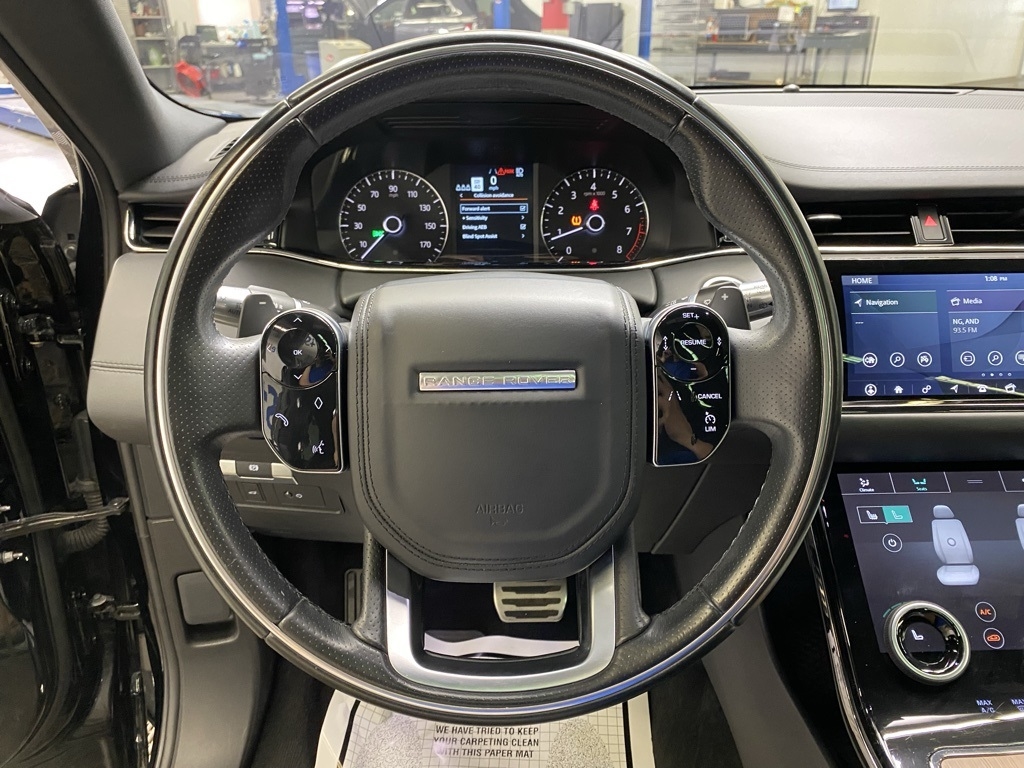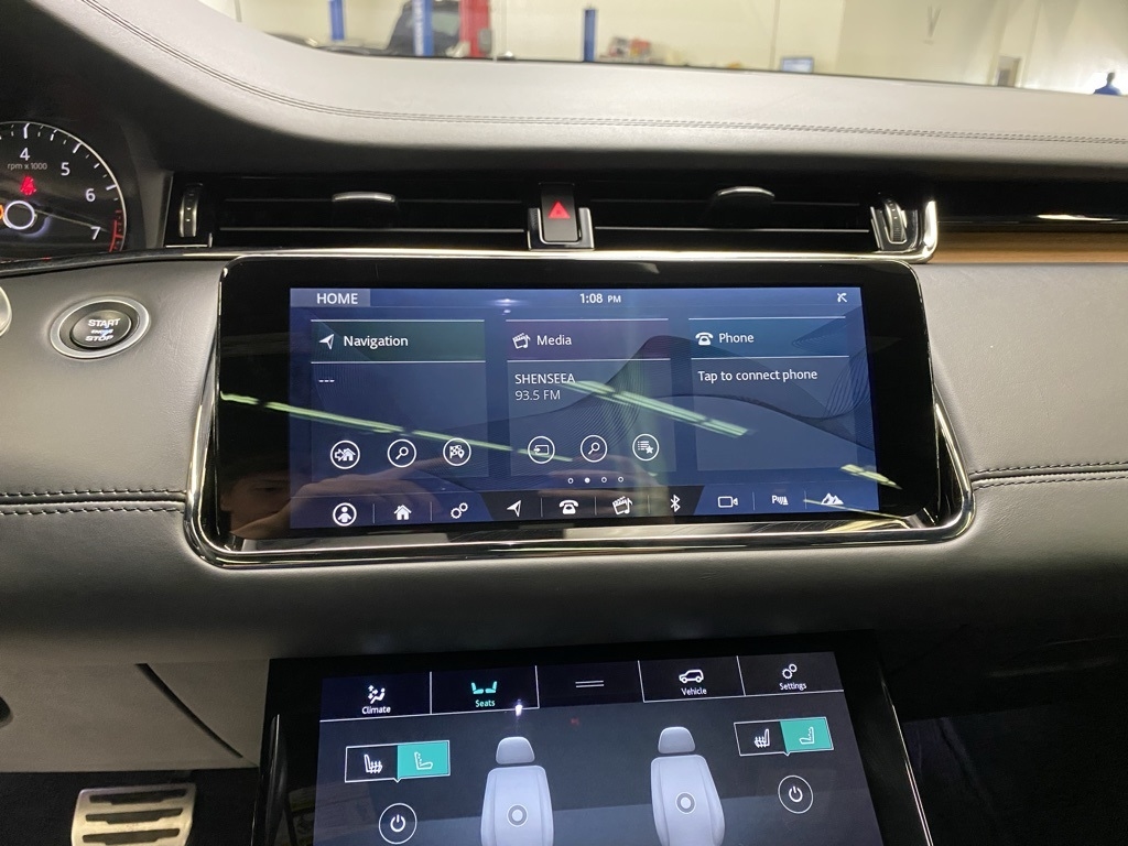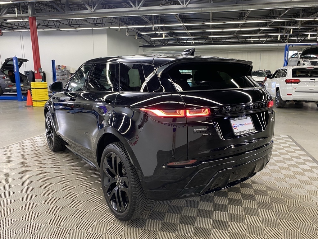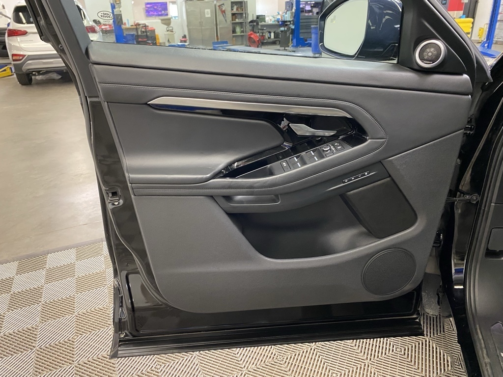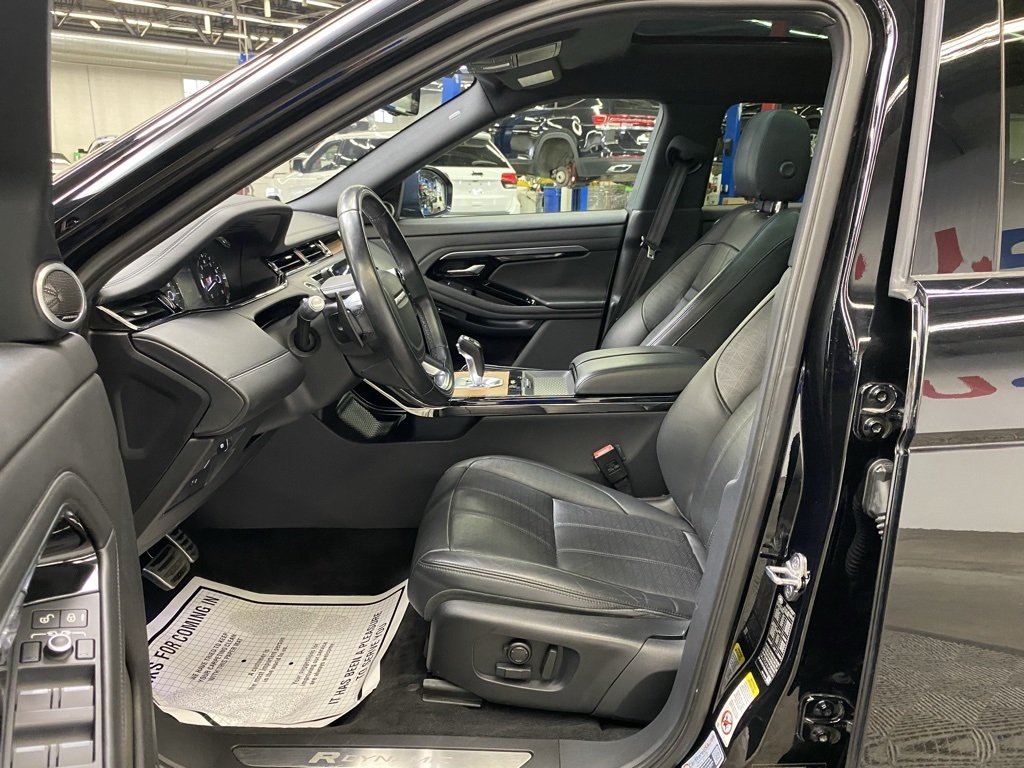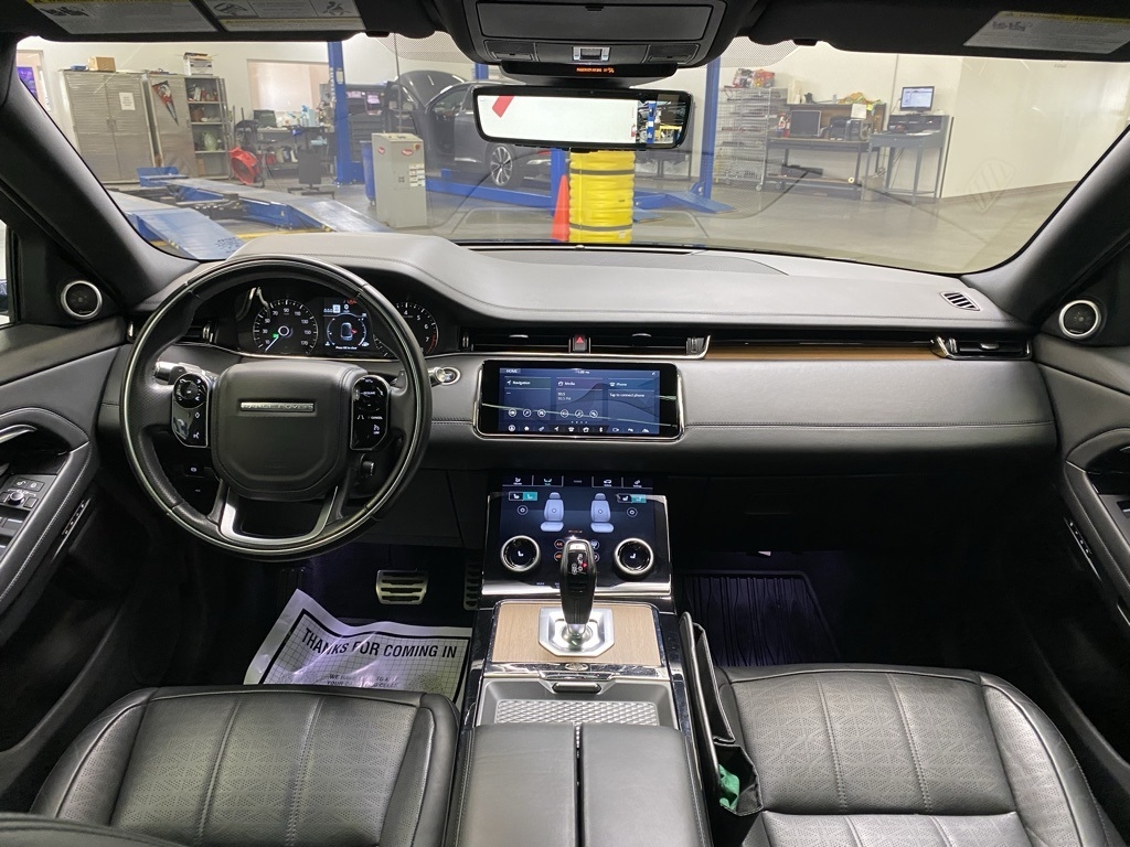THIS VEHICLE IS EQUIPPED WITH THE FOLLOWING FEATURES AND OPTIONS 10-Way Front Bucket Seats, 180 Watt Range Rover Sound System w/6-Speakers, 3.94 Axle Ratio, 4-Wheel Disc Brakes, 6 Speakers, ABS brakes, Air Conditioning, Alloy wheels, Android Auto, Apple CarPlay, Apple CarPlay & Android Auto, Auto-dimming door mirrors, Auto-dimming Rear-View mirror, Automatic temperature control, Brake assist, Bumpers: body-color, Compass, Delay-off headlights, Driver door bin, Driver vanity mirror, Dual front impact airbags, Dual front side impact airbags, Electronic Stability Control, Emergency communication system: InControl Protect, Exterior Parking Camera Rear, Four wheel independent suspension, Front anti-roll bar, Front Bucket Seats, Front Center Armrest, Front dual zone A/C, Front reading lights, Fully automatic headlights, Grained Leather Seat Trim, Heated door mirrors, Illuminated entry, Leather Shift Knob, Low tire pressure warning, Navigation system: InControl Navigation Pro, Occupant sensing airbag, Outside temperature display, Overhead airbag, Overhead console, Panic alarm, Passenger door bin, Passenger vanity mirror, Power door mirrors, Power driver seat, Power passenger seat, Power Socket Pack 1, Power steering, Power windows, Radio data system, Radio: Touch Pro Infotainment w/10" Touchscreen, Rain sensing wipers, Rear anti-roll bar, Rear fog lights, Rear reading lights, Rear seat center armrest, Rear window defroster, Rear window wiper, Remote keyless entry, Security system, Speed control, Speed-sensing steering, Speed-Sensitive Wipers, Split folding rear seat, Spoiler, Steering wheel mounted audio controls, Tachometer, Telescoping steering wheel, Tilt steering wheel, Traction control, Trip computer, Turn signal indicator mirrors, Variably intermittent wipers, and Wheels: 18" 5 Split-Spoke (Style 5074) Black 2020 Land Rover Range Rover Evoque Dynamic AWD 9-Speed Automatic I4
