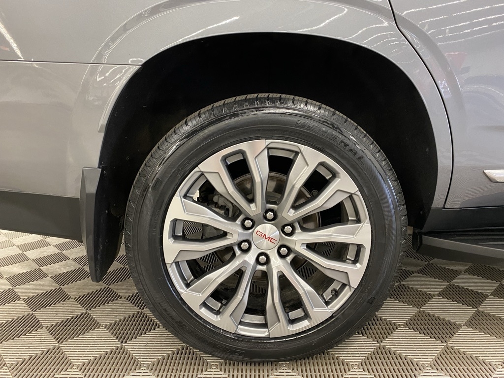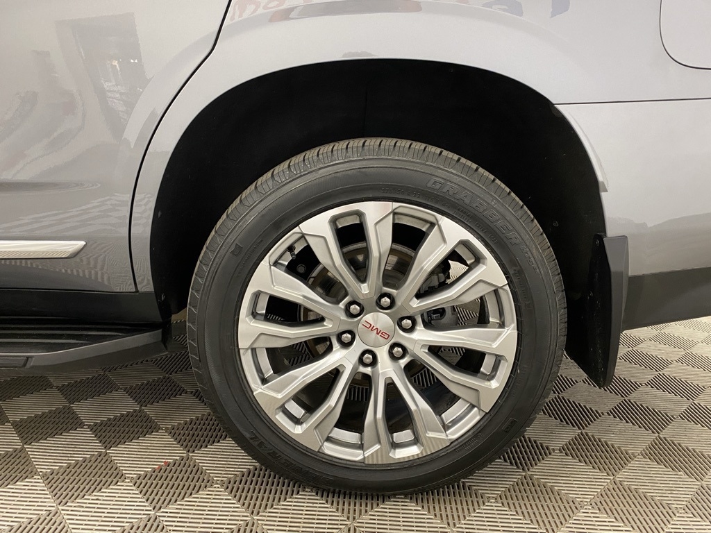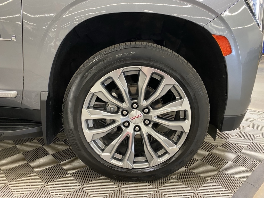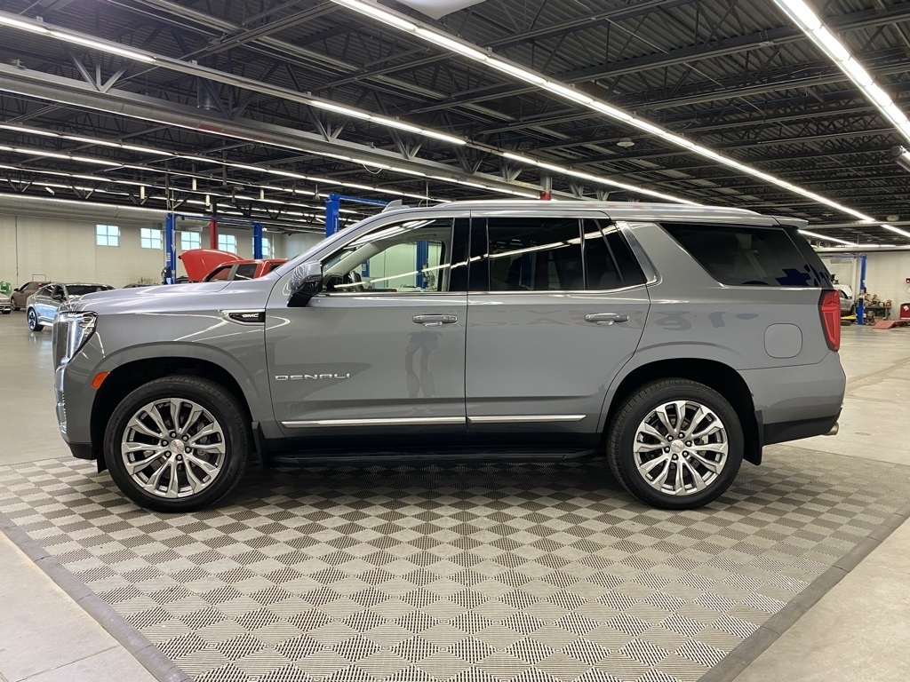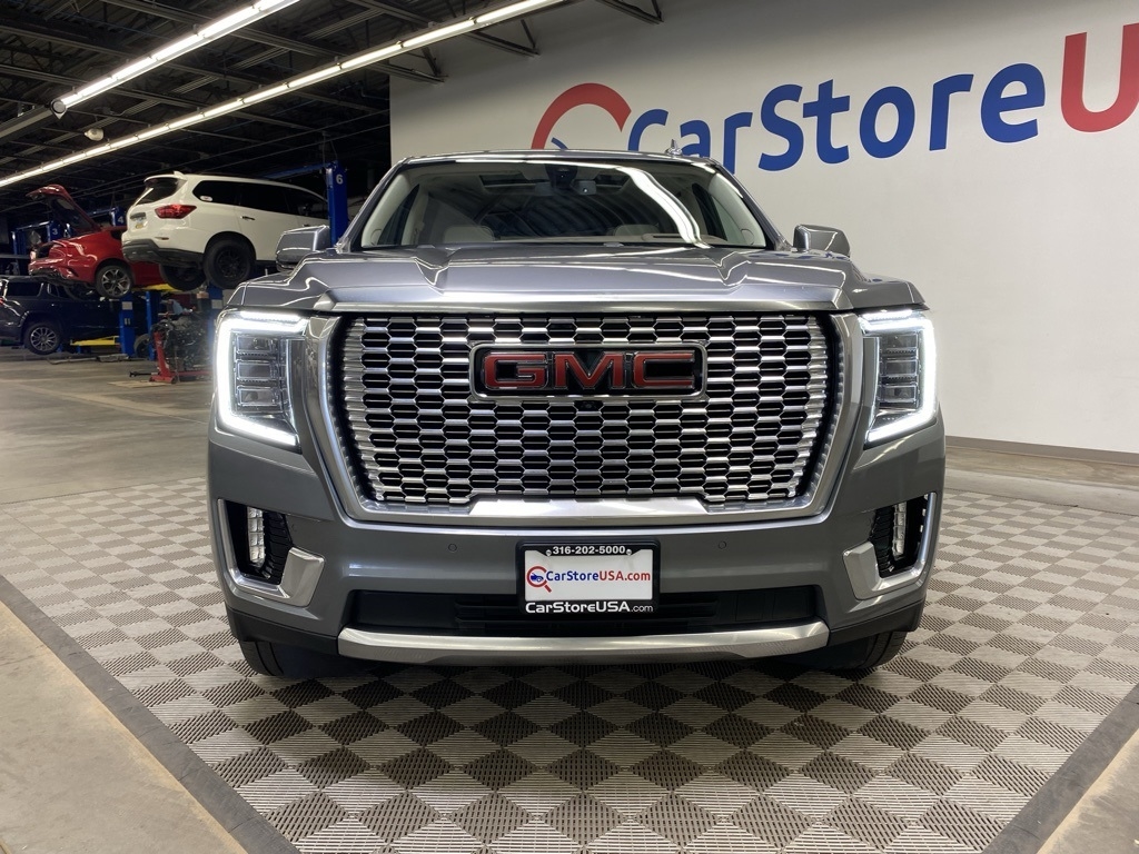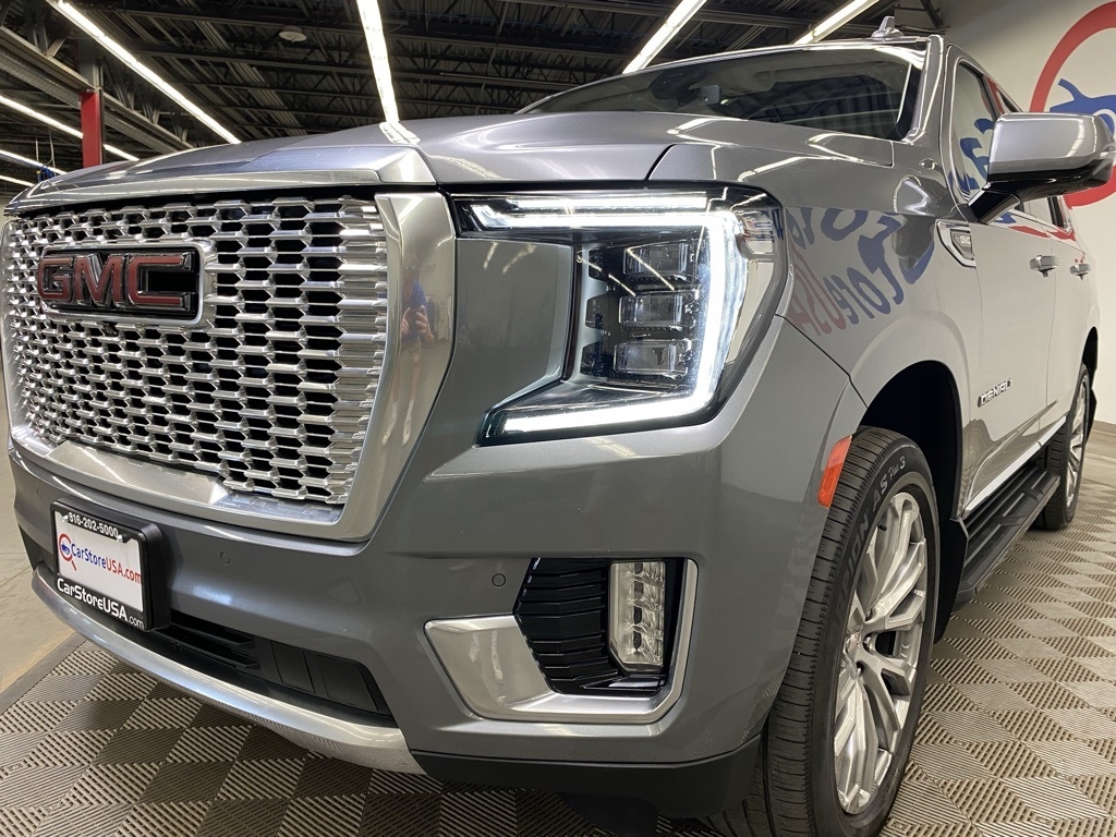 CARFAX One-Owner. THIS VEHICLE IS EQUIPPED WITH THE FOLLOWING FEATURES AND OPTIONS Illumination Package (LPO) (Illuminated Front GMC Emblem (LPO) and Illuminated Mirror GMC Emblem (LPO)), License Plate Front Mounting Package, Preferred Equipment Group 5SA (12-Way Power Seat Adjusters, 15" Diagonal Multi-Color Head-Up Display, 2 Presets For Outside Rearview Mirrors, 3rd Row 60/40 Power-Folding Split-Bench Seat, Bright Front & Rear Door Sill Plates, Chrome Door Handles w/Body-Color Strip, Dual Exhaust System, Galvano Bodyside Moldings, Hands-Free Power Programmable Rear Liftgate, HD Surround Vision, Heated & Ventilated Driver & Front Passenger Seats, Heated 2nd Row Outboard Position Seats, Heated Automatic Steering Wheel, Heated Driver & Front Passenger Seats, Hill Descent Control, Inside Rear-View Auto-Dimming Mirror, Outside Heated Power-Adjustable Mirrors, Power Release 2nd Row Bucket Seats, Power Tilt & Telescopic Steering Column, Rear Pedestrian Alert, Safety Alert Seat, and Universal Home Remote), 14 Speakers, 3.23 Rear Axle Ratio, 3rd row seats: split-bench, 4-Wheel Disc Brakes, ABS brakes, Adaptive suspension, Air Conditioning, Alloy wheels, AM/FM radio: SiriusXM with 360L, Apple CarPlay/Android Auto, Auto High-beam Headlights, Auto-dimming door mirrors, Auto-dimming Rear-View mirror, Auto-leveling suspension, Automatic Emergency Braking, Automatic temperature control, Bodyside moldings, Bose 14-Speaker Surround w/CenterPoint, Brake assist, Bumpers: body-color, Compass, Delay-off headlights, Driver door bin, Driver vanity mirror, Dual front impact airbags, Dual front side impact airbags, Dual-Pane Panoramic Power Sunroof, Electronic Stability Control, Emergency communication system: OnStar and GMC connected services capable, Floor Console, Following Distance Indicator, Forward Collision Alert, Four wheel independent suspension, Front & Rear Park Assist, Front anti-roll bar, Front Bucket Seats, Front Center Armrest, Front dual zone A/C, Front fog lights, Front Pedestrian Braking, Front reading lights, Fully automatic headlights, Garage door transmitter, HD Radio, Heads-Up Display, Heated door mirrors, Heated front seats, Heated rear seats, Heated steering wheel, Illuminated entry, IntelliBeam Automatic High Beam On/Off, Lane Change Alert w/Side Blind Zone Alert, Lane Keep Assist w/Lane Departure Warning, Leather steering wheel, Low tire pressure warning, Magnetic Ride Control Suspension, Memory seat, Molded Splash Guards, Navigation System, Not Equipped w/Automatic Stop/Start, Not Equipped w/Steering Column Lock, Occupant sensing airbag, Outside temperature display, Overhead airbag, Overhead console, Panic alarm, Passenger door bin, Passenger vanity mirror, Perforated Leather Seating Surfaces, Power door mirrors, Power driver seat, Power Liftgate, Power passenger seat, Power steering, Power windows, Radio: AM/FM/SiriusXM w/Navigation, Rain sensing wipers, Rear air conditioning, Rear anti-roll bar, Rear Cross Traffic Alert, Rear reading lights, Rear Seat Media System, Rear window defroster, Rear window wiper, Remote keyless entry, Roof rack: rails only, Security system, SiriusXM w/360L, Speed control, Speed-sensing steering, Split folding rear seat, Spoiler, Steering wheel memory, Steering wheel mounted audio controls, Tachometer, Telescoping steering wheel, Tilt steering wheel, Traction control, Trip computer, Turn signal indicator mirrors, Variably intermittent wipers, Ventilated front seats, Voltmeter, Wheel Locks, Wheels: 20" x 9" 6-Spoke Polished Aluminum, and Wheels: 22" x 9" Bright Machined Aluminum. Satin Steel Metallic 2021 GMC Yukon Denali 4WD 10-Speed Automatic with Overdrive EcoTec3 6.2L V8