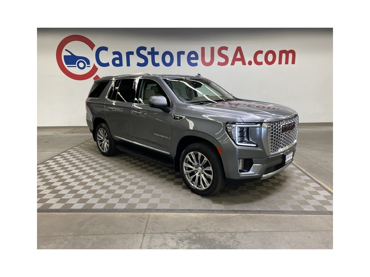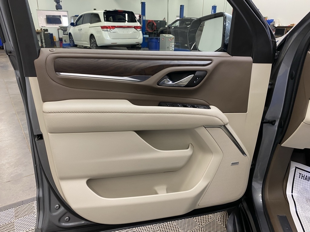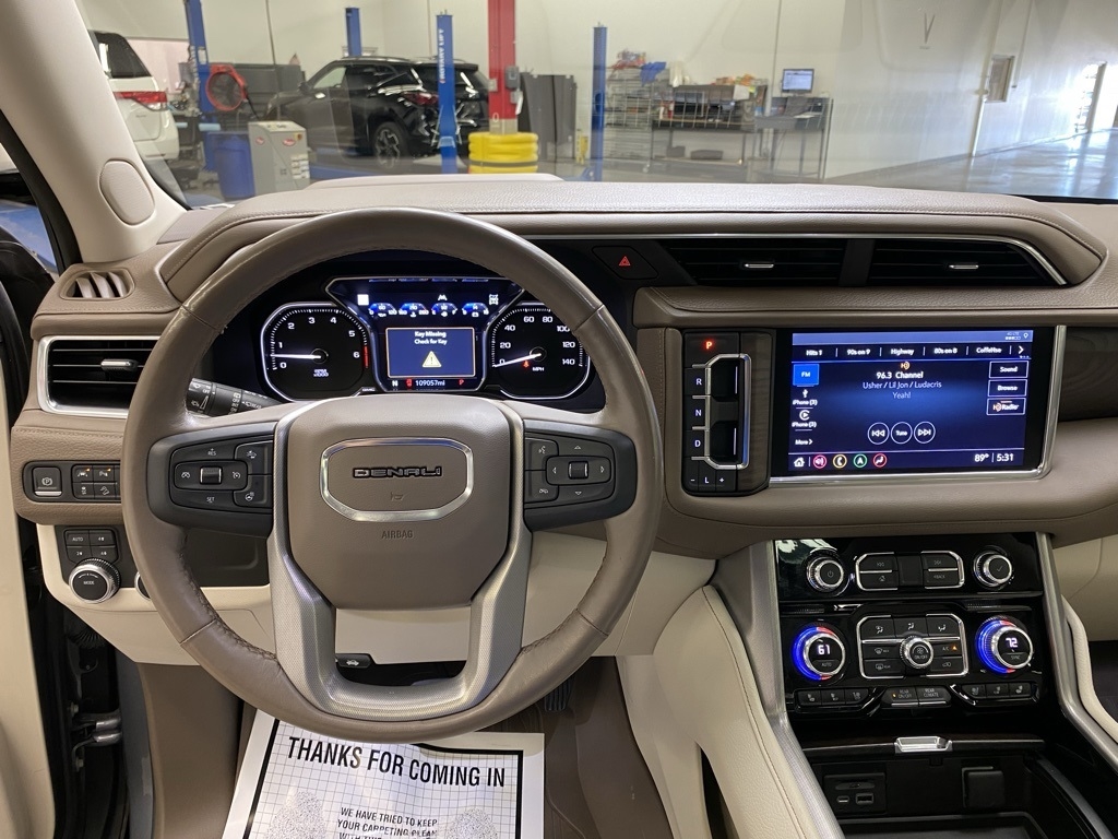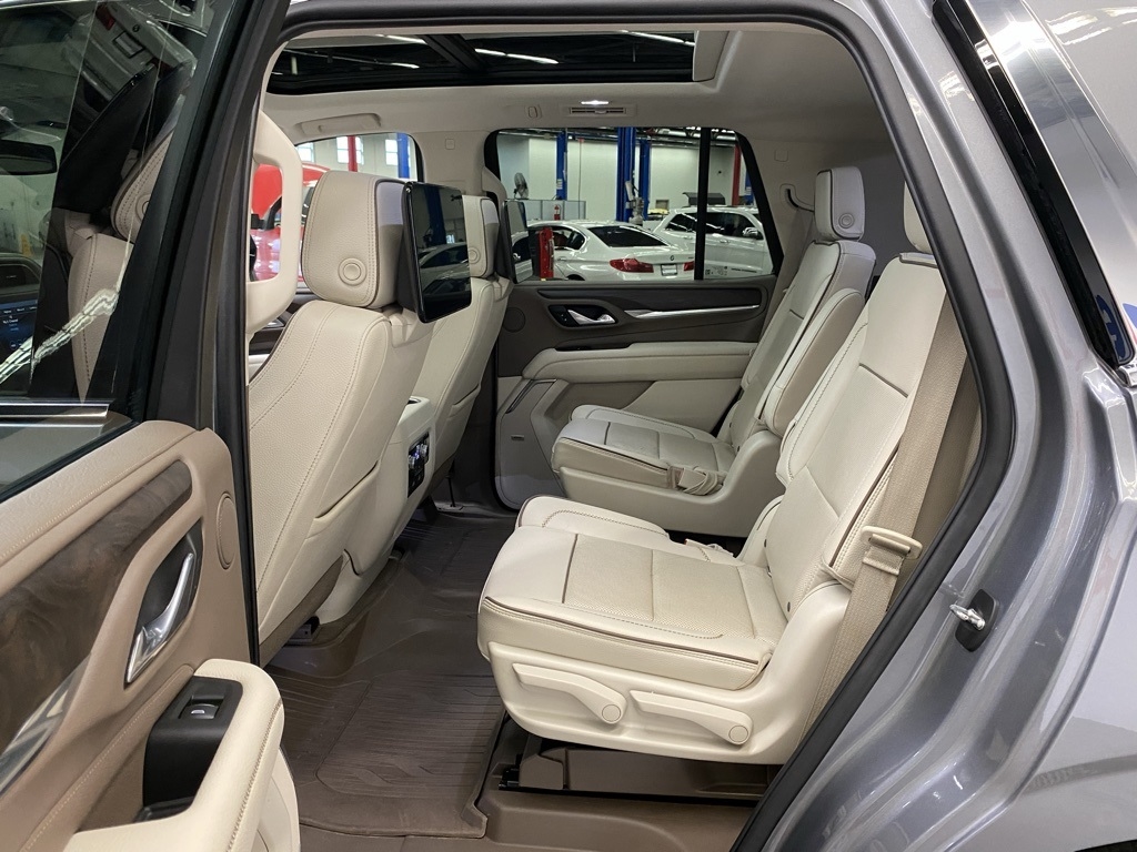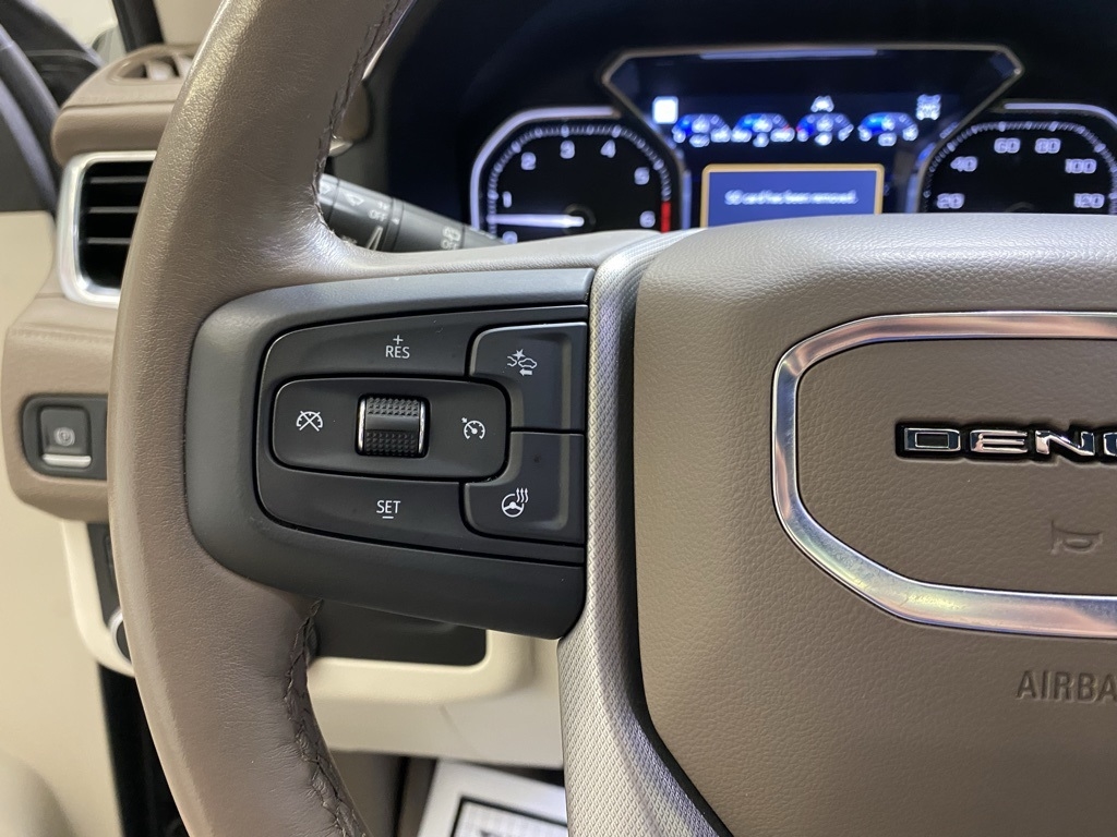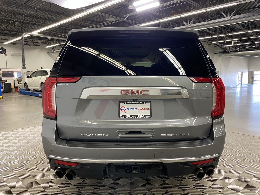 CARFAX One-Owner. THIS VEHICLE IS EQUIPPED WITH THE FOLLOWING FEATURES AND OPTIONS Illumination Package (LPO) (Illuminated Front GMC Emblem (LPO) and Illuminated Mirror GMC Emblem (LPO)), License Plate Front Mounting Package, Preferred Equipment Group 5SA (12-Way Power Seat Adjusters, 15" Diagonal Multi-Color Head-Up Display, 2 Presets For Outside Rearview Mirrors, 3rd Row 60/40 Power-Folding Split-Bench Seat, Bright Front & Rear Door Sill Plates, Chrome Door Handles w/Body-Color Strip, Dual Exhaust System, Galvano Bodyside Moldings, Hands-Free Power Programmable Rear Liftgate, HD Surround Vision, Heated & Ventilated Driver & Front Passenger Seats, Heated 2nd Row Outboard Position Seats, Heated Automatic Steering Wheel, Heated Driver & Front Passenger Seats, Hill Descent Control, Inside Rear-View Auto-Dimming Mirror, Outside Heated Power-Adjustable Mirrors, Power Release 2nd Row Bucket Seats, Power Tilt & Telescopic Steering Column, Rear Pedestrian Alert, Safety Alert Seat, and Universal Home Remote), 14 Speakers, 3.23 Rear Axle Ratio, 3rd row seats: split-bench, 4-Wheel Disc Brakes, ABS brakes, Adaptive suspension, Air Conditioning, Alloy wheels, AM/FM radio: SiriusXM with 360L, Apple CarPlay/Android Auto, Auto High-beam Headlights, Auto-dimming door mirrors, Auto-dimming Rear-View mirror, Auto-leveling suspension, Automatic Emergency Braking, Automatic temperature control, Bodyside moldings, Bose 14-Speaker Surround w/CenterPoint, Brake assist, Bumpers: body-color, Compass, Delay-off headlights, Driver door bin, Driver vanity mirror, Dual front impact airbags, Dual front side impact airbags, Dual-Pane Panoramic Power Sunroof, Electronic Stability Control, Emergency communication system: OnStar and GMC connected services capable, Floor Console, Following Distance Indicator, Forward Collision Alert, Four wheel independent suspension, Front & Rear Park Assist, Front anti-roll bar, Front Bucket Seats, Front Center Armrest, Front dual zone A/C, Front fog lights, Front Pedestrian Braking, Front reading lights, Fully automatic headlights, Garage door transmitter, HD Radio, Heads-Up Display, Heated door mirrors, Heated front seats, Heated rear seats, Heated steering wheel, Illuminated entry, IntelliBeam Automatic High Beam On/Off, Lane Change Alert w/Side Blind Zone Alert, Lane Keep Assist w/Lane Departure Warning, Leather steering wheel, Low tire pressure warning, Magnetic Ride Control Suspension, Memory seat, Molded Splash Guards, Navigation System, Not Equipped w/Automatic Stop/Start, Not Equipped w/Steering Column Lock, Occupant sensing airbag, Outside temperature display, Overhead airbag, Overhead console, Panic alarm, Passenger door bin, Passenger vanity mirror, Perforated Leather Seating Surfaces, Power door mirrors, Power driver seat, Power Liftgate, Power passenger seat, Power steering, Power windows, Radio: AM/FM/SiriusXM w/Navigation, Rain sensing wipers, Rear air conditioning, Rear anti-roll bar, Rear Cross Traffic Alert, Rear reading lights, Rear Seat Media System, Rear window defroster, Rear window wiper, Remote keyless entry, Roof rack: rails only, Security system, SiriusXM w/360L, Speed control, Speed-sensing steering, Split folding rear seat, Spoiler, Steering wheel memory, Steering wheel mounted audio controls, Tachometer, Telescoping steering wheel, Tilt steering wheel, Traction control, Trip computer, Turn signal indicator mirrors, Variably intermittent wipers, Ventilated front seats, Voltmeter, Wheel Locks, Wheels: 20" x 9" 6-Spoke Polished Aluminum, and Wheels: 22" x 9" Bright Machined Aluminum. Satin Steel Metallic 2021 GMC Yukon Denali 4WD 10-Speed Automatic with Overdrive EcoTec3 6.2L V8