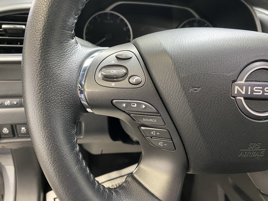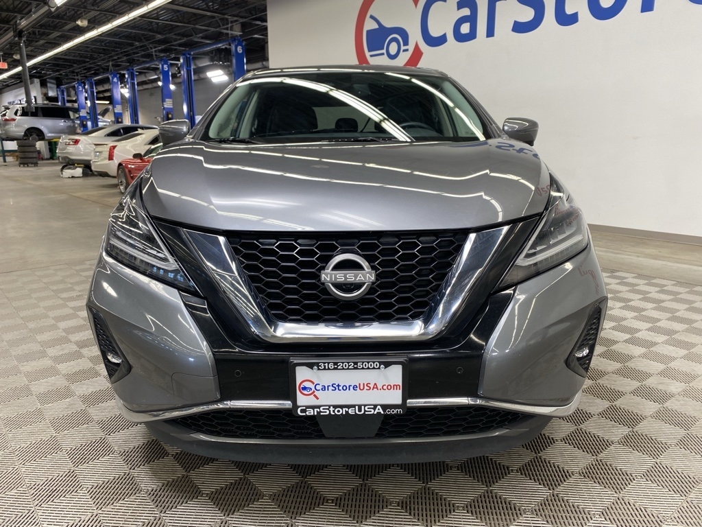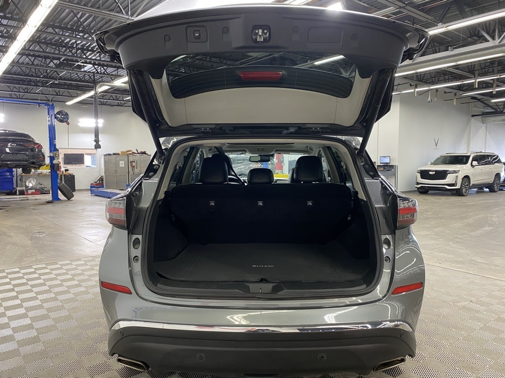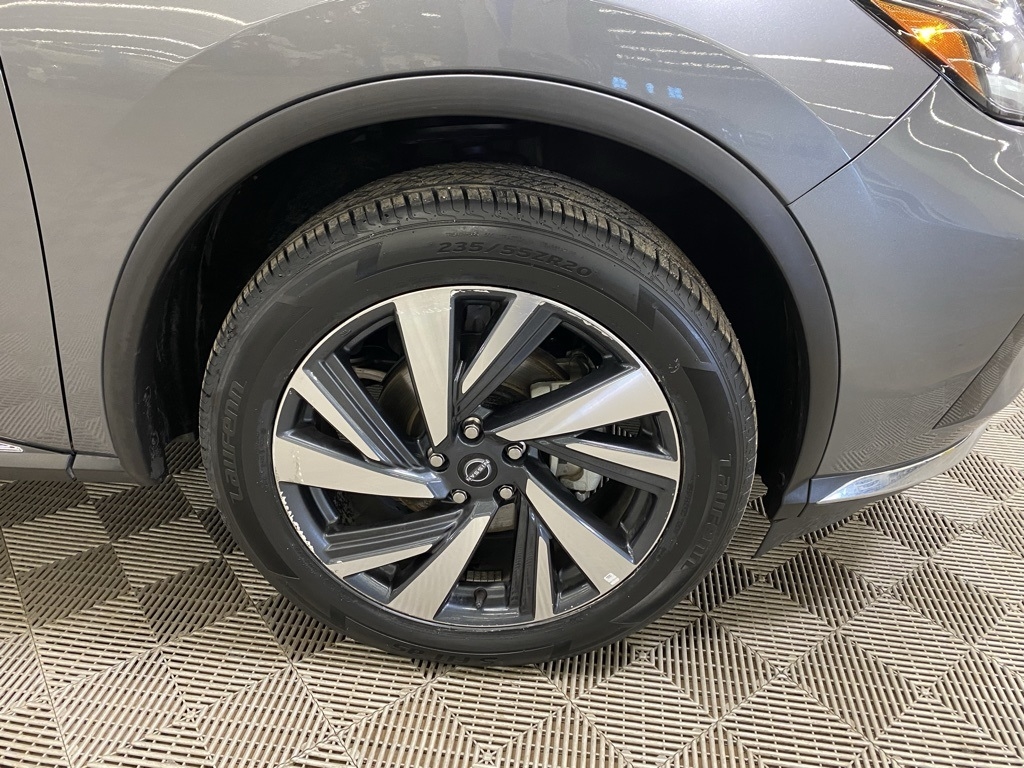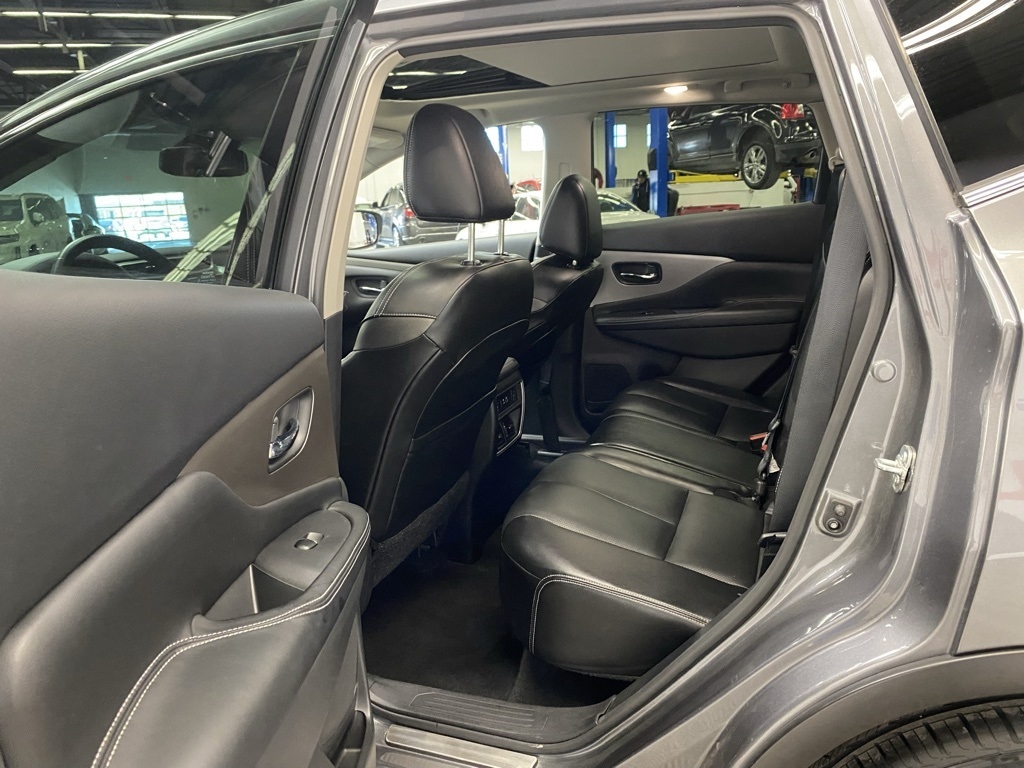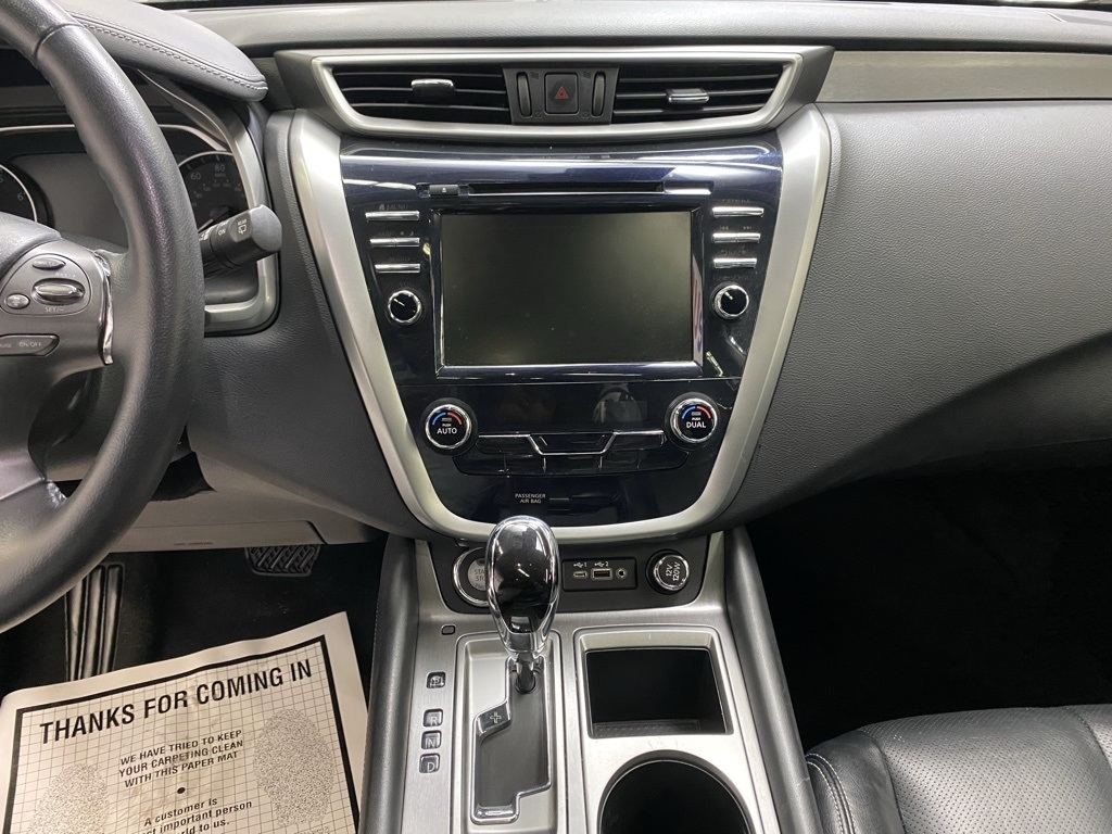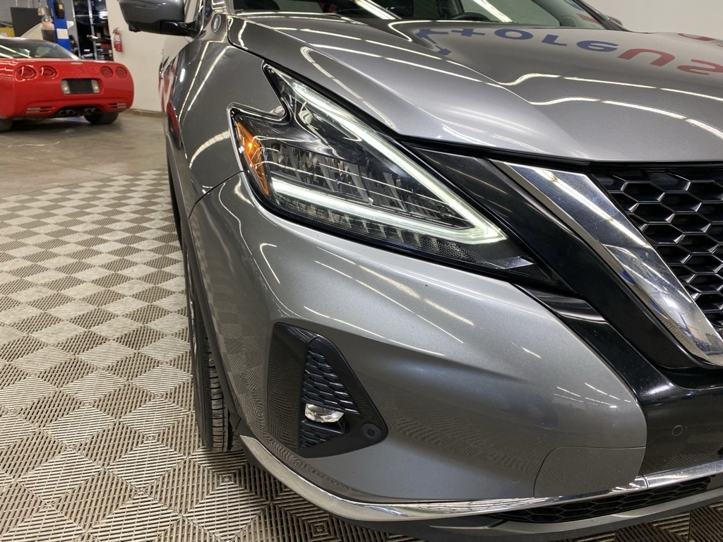 CARFAX One-Owner. THIS VEHICLE IS EQUIPPED WITH THE FOLLOWING FEATURES AND OPTIONS SL Moonroof Package (Dual-Panel Moonroof and Roof Rail Delete), 11 Speakers, 4-Wheel Disc Brakes, 4.667 Axle Ratio, ABS brakes, Air Conditioning, Alloy wheels, AM/FM radio: SiriusXM, AM/FM/CD/MP3/WMA Audio System, Auto High-beam Headlights, Auto-dimming Rear-View mirror, Automatic temperature control, Blind Spot Warning, Brake assist, Bumpers: body-color, Carpeted Floor Mats & Carpeted Cargo Mat, CD player, Child-Seat-Sensing Airbag, Delay-off headlights, Driver door bin, Driver vanity mirror, Dual front impact airbags, Dual front side impact airbags, Electronic Stability Control, Exterior Parking Camera Rear, Four wheel independent suspension, Front anti-roll bar, Front Bucket Seats, Front Center Armrest, Front dual zone A/C, Front fog lights, Front reading lights, Fully automatic headlights, Garage door transmitter: HomeLink, Heated door mirrors, Heated Front Bucket Seats, Heated front seats, Heated rear seats, Heated steering wheel, Illuminated entry, Illuminated Kick Plates, Illuminated Kick Plates (PIO), Knee airbag, Leather-Appointed Seat Trim, Low tire pressure warning, Memory seat, Navigation system: NissanConnect Navigation, NissanConnect featuring Apple CarPlay and Android Auto, Occupant sensing airbag, Outside temperature display, Overhead airbag, Overhead console, Panic alarm, Passenger door bin, Passenger vanity mirror, Power door mirrors, Power driver seat, Power Liftgate, Power passenger seat, Power steering, Power windows, Premium audio system: Bose, Radio data system, Rear anti-roll bar, Rear reading lights, Rear seat center armrest, Rear side impact airbag, Rear window defroster, Rear window wiper, Remote keyless entry, Security system, Speed control, Speed-sensing steering, Speed-Sensitive Wipers, Split folding rear seat, Spoiler, Steering wheel mounted audio controls, Tachometer, Telescoping steering wheel, Tilt steering wheel, Traction control, Trip computer, Turn signal indicator mirrors, Variably intermittent wipers, and Wheels: 20" Machined Aluminum-Alloy. Clean CARFAX. Gun Metallic 2023 Nissan Murano SL FWD CVT with Xtronic 3.5L V6 DOHC 24V