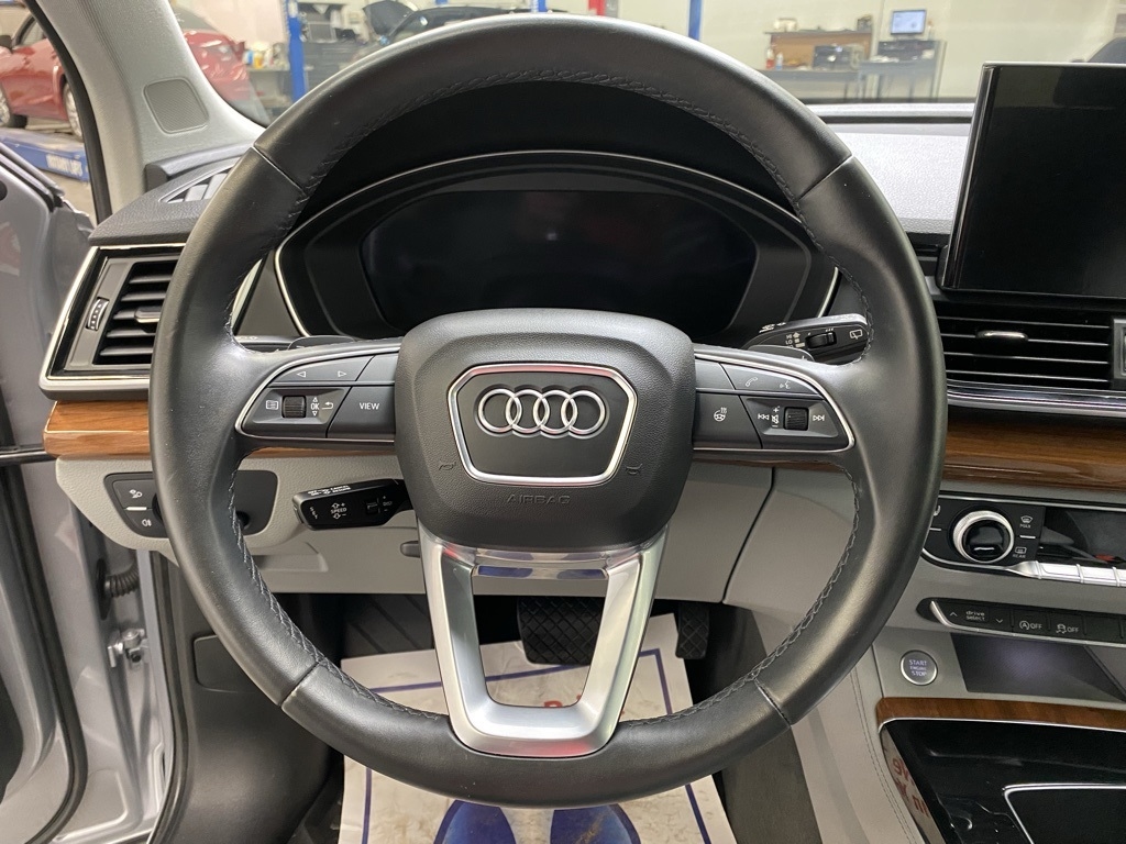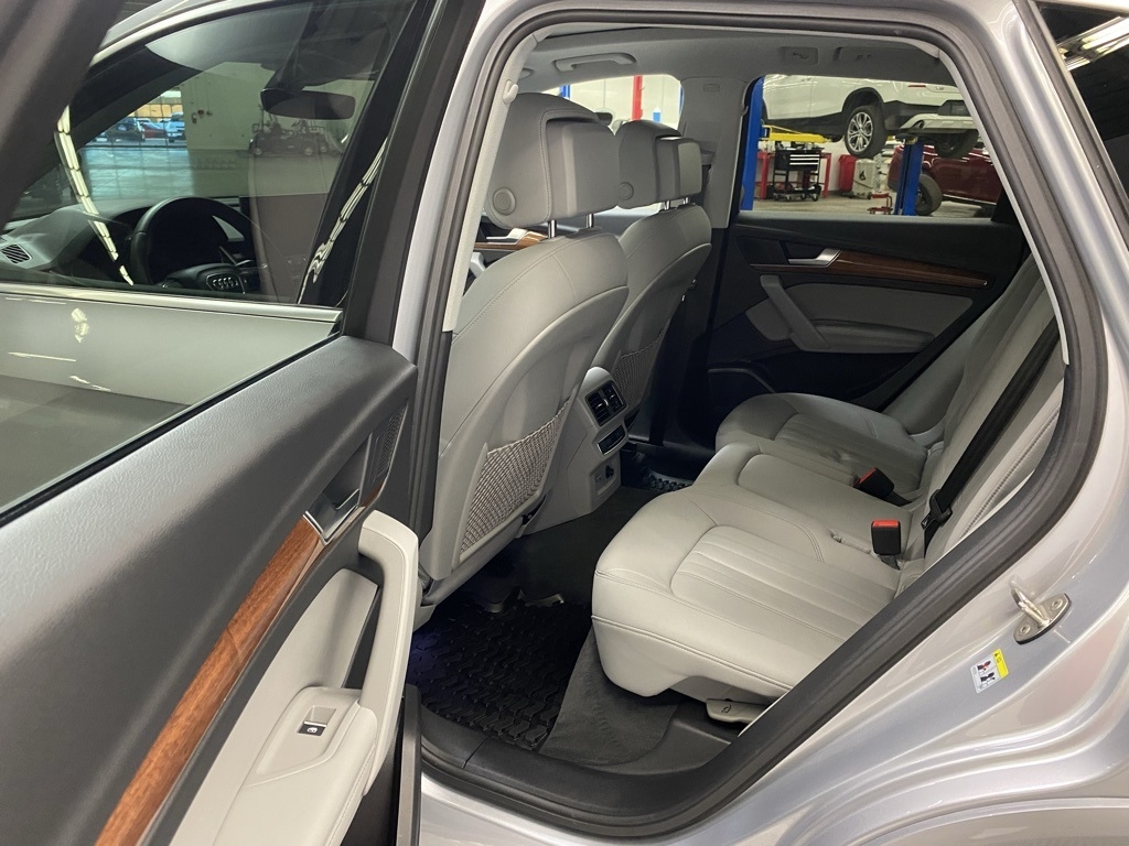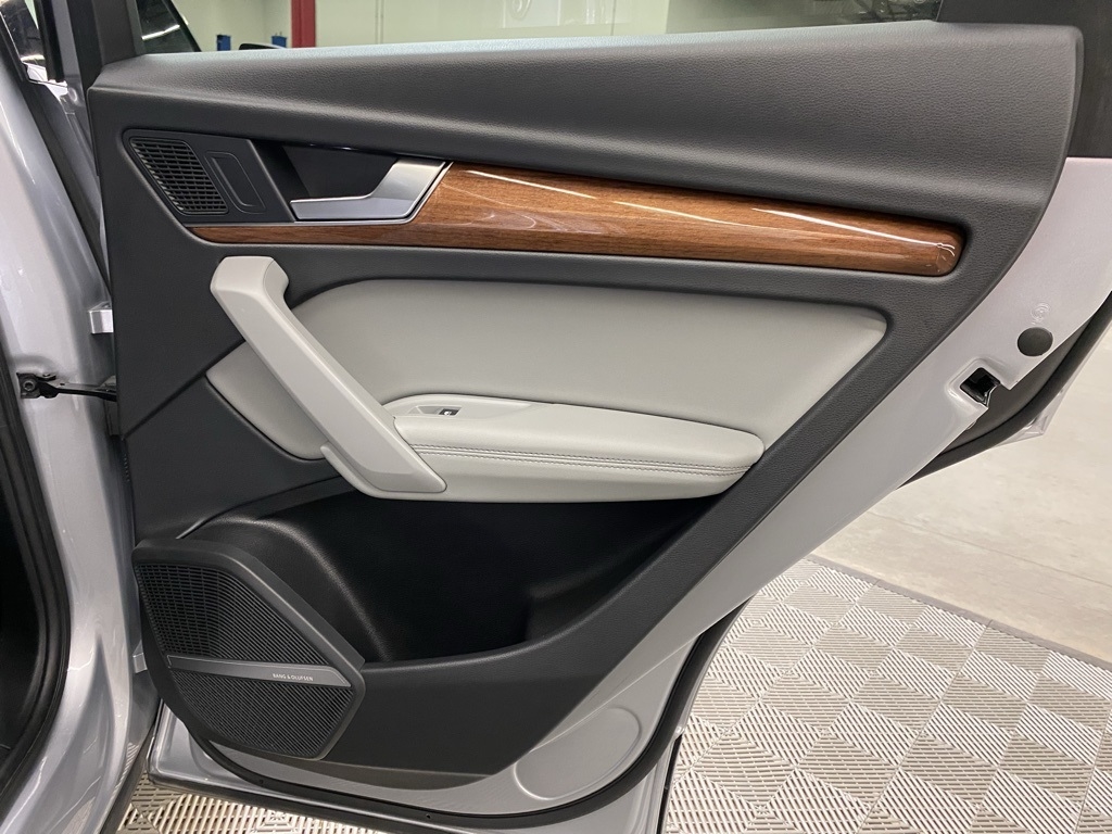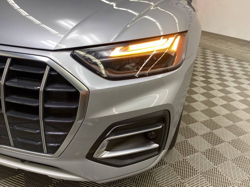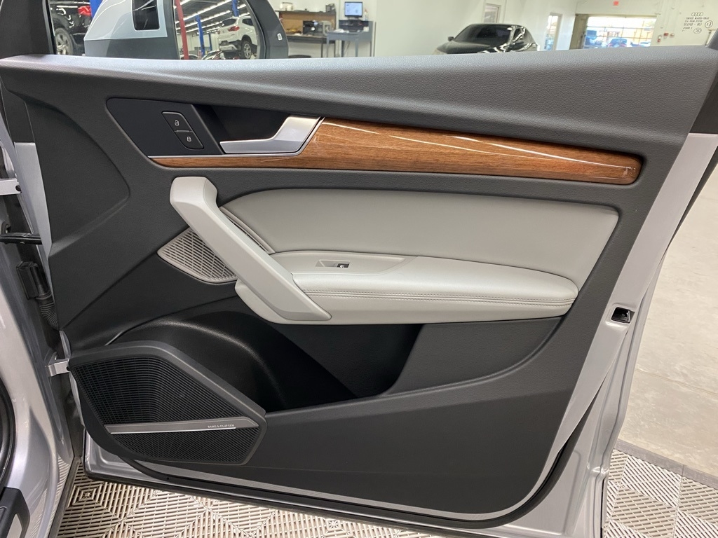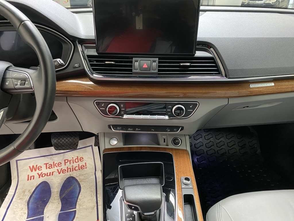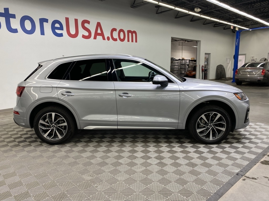 THIS VEHICLE IS EQUIPPED WITH THE FOLLOWING FEATURES AND OPTIONS Convenience Package (Audi Advanced Key, Auto-Dimming Power Folding Exterior Mirrors, Driver Seat Memory, Heated Steering Wheel, and SiriusXM All Access Service), Navigation Package (Audi Connect PRIME & PLUS and MMI Navigation Plus), Premium Plus Package (Adaptive Cruise Control w/Traffic Jam Assist, Audi Active Lane Assist, Audi Phone Box, Audi Virtual Cockpit Plus, Hands-On Detection Steering Wheel, Leatherette Covered Center Console & Door Armrests, Panoramic Sunroof, Top View Camera System, and Wheels: 19" 5-Double-Arm Design Bi-Color Finish), 10 Speakers, 4-Wheel Disc Brakes, 5.302 Axle Ratio, ABS brakes, Air Conditioning, All-Weather Floor Mats, Alloy wheels, AM/FM radio, Audi Beam-Rings, Audi Guard Protection Kit, Auto High-beam Headlights, Auto-dimming Rear-View mirror, Automatic temperature control, Bang & Olufsen Sound System w/3D Sound, Black Privacy Trunk Cover, Brake assist, Bumpers: body-color, Cargo Mat, Compass, Delay-off headlights, Driver door bin, Driver vanity mirror, Dual front impact airbags, Dual front side impact airbags, Electronic Stability Control, Emergency communication system: Audi connect CARE, Exterior Parking Camera Rear, Four wheel independent suspension, Front anti-roll bar, Front Bucket Seats, Front Center Armrest, Front dual zone A/C, Front fog lights, Front reading lights, Garage door transmitter: HomeLink, Genuine wood console insert, Genuine wood dashboard insert, Genuine wood door panel insert, Heated 8-Way Power Front Bucket Seats, Heated door mirrors, Heated front seats, Illuminated entry, Leather Seating Surfaces, Leather Shift Knob, Low tire pressure warning, Occupant sensing airbag, Outside temperature display, Overhead airbag, Overhead console, Panic alarm, Passenger door bin, Passenger vanity mirror, Power door mirrors, Power driver seat, Power Liftgate, Power passenger seat, Power steering, Power windows, Radio data system, Radio: Audi Sound System, Rain sensing wipers, Rear air conditioning, Rear anti-roll bar, Rear fog lights, Rear reading lights, Rear seat center armrest, Rear window defroster, Rear window wiper, Remote keyless entry, Roof rack, Security system, Speed control, Speed-sensing steering, Speed-Sensitive Wipers, Split folding rear seat, Spoiler, Steering wheel mounted audio controls, Tachometer, Telescoping steering wheel, Tilt steering wheel, Traction control, Trip computer, Turn signal indicator mirrors, Variably intermittent wipers, and Wheels: 18" 5-Arm-Star Design. Clean CARFAX. Silver Metallic 2021 Audi Q5 45 Premium Plus quattro quattro 7-Speed Automatic S tronic 2.0L Turbocharged