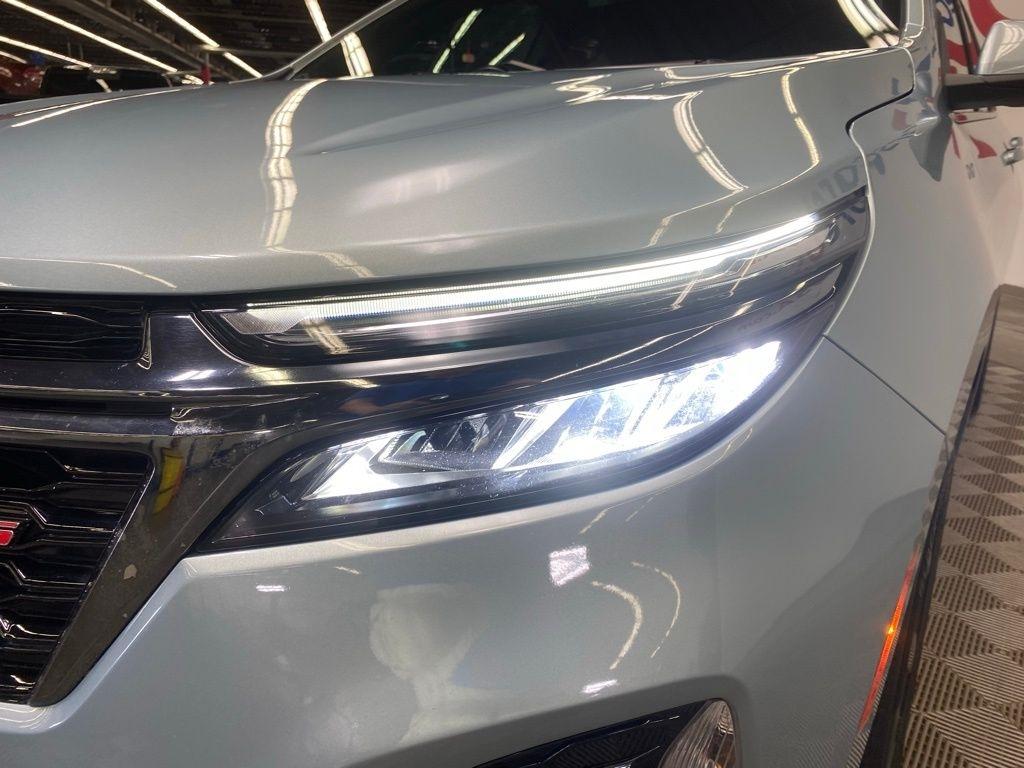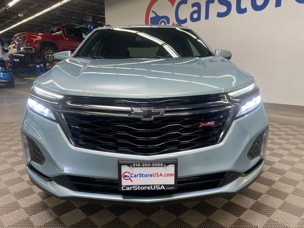 CARFAX One-Owner. THIS VEHICLE IS EQUIPPED WITH THE FOLLOWING FEATURES AND OPTIONS Preferred Equipment Group 1RS, 19" Aluminum Wheels, 2 Rear USB Charging-Only Ports, 2 USB Ports & Auxiliary Input Jack, 2-Way Power Driver Lumbar Control Seat Adjuster, 3.87 Final Drive Axle Ratio, 4-Wheel Disc Brakes, 6 Speaker Audio System Feature, 6 Speakers, 8-Way Power Driver Seat Adjuster, ABS brakes, Air Conditioning, Alloy wheels, AM/FM radio: SiriusXM, Auto High-beam Headlights, Automatic temperature control, Bluetooth® For Phone, Brake assist, Bumpers: body-color, Compass, Delay-off headlights, Driver door bin, Driver vanity mirror, Dual front impact airbags, Dual front side impact airbags, Electronic Stability Control, Emergency communication system: OnStar and Chevrolet connected services capable, Four wheel independent suspension, Front anti-roll bar, Front Bucket Seats, Front Center Armrest, Front dual zone A/C, Front Passenger 4-Way Manual Seat Adjuster, Front reading lights, Fully automatic headlights, Heated door mirrors, Heated Driver & Front Passenger Seats, Heated front seats, Illuminated entry, Leather steering wheel, Low tire pressure warning, Not Equipped w/Driver & Fr Pass Heated Seats, Occupant sensing airbag, Outside temperature display, Overhead airbag, Overhead console, Panic alarm, Passenger door bin, Passenger vanity mirror, Power door mirrors, Power driver seat, Power Liftgate, Power steering, Power windows, Premium audio system: Chevrolet Infotainment 3, Premium Cloth Seat Trim, Radio data system, Radio: Chevrolet Infotainment 3 System w/AM/FM, Rear anti-roll bar, Rear reading lights, Rear seat center armrest, Rear window defroster, Rear window wiper, Remote keyless entry, Roof rack: rails only, Security system, SiriusXM Radio, Speed control, Speed-sensing steering, Split folding rear seat, Spoiler, Steering wheel mounted audio controls, Tachometer, Telescoping steering wheel, Tilt steering wheel, Traction control, Trip computer, Variably intermittent wipers, and Wireless Apple CarPlay/Wireless Android Auto. Clean CARFAX. Seaglass Blue Metallic 2022 Chevrolet Equinox RS AWD 6-Speed Automatic Electronic with Overdrive 1.5L DOHC