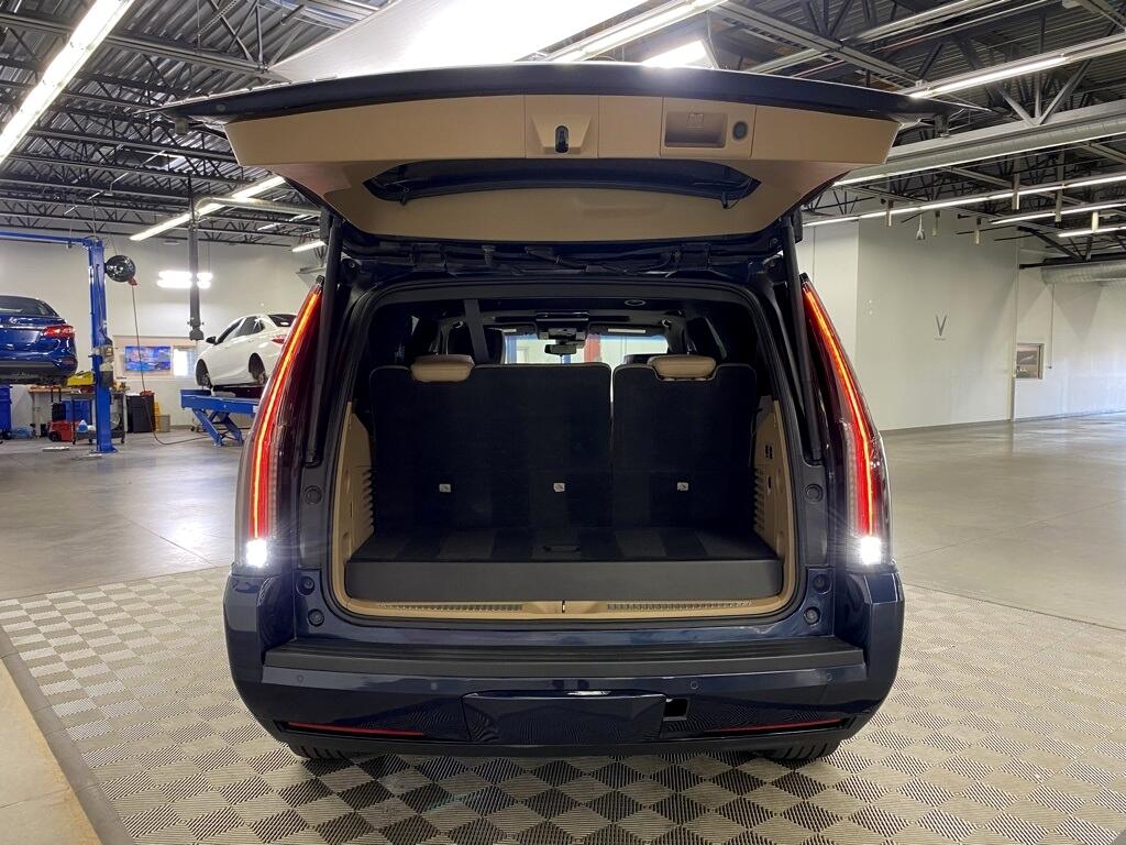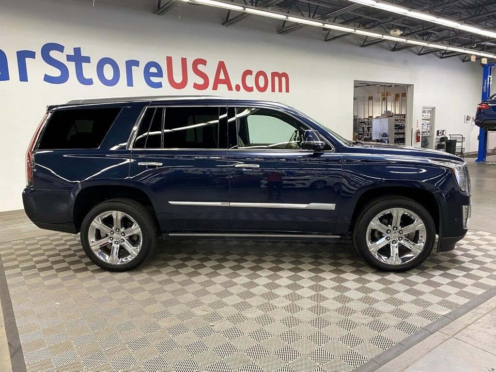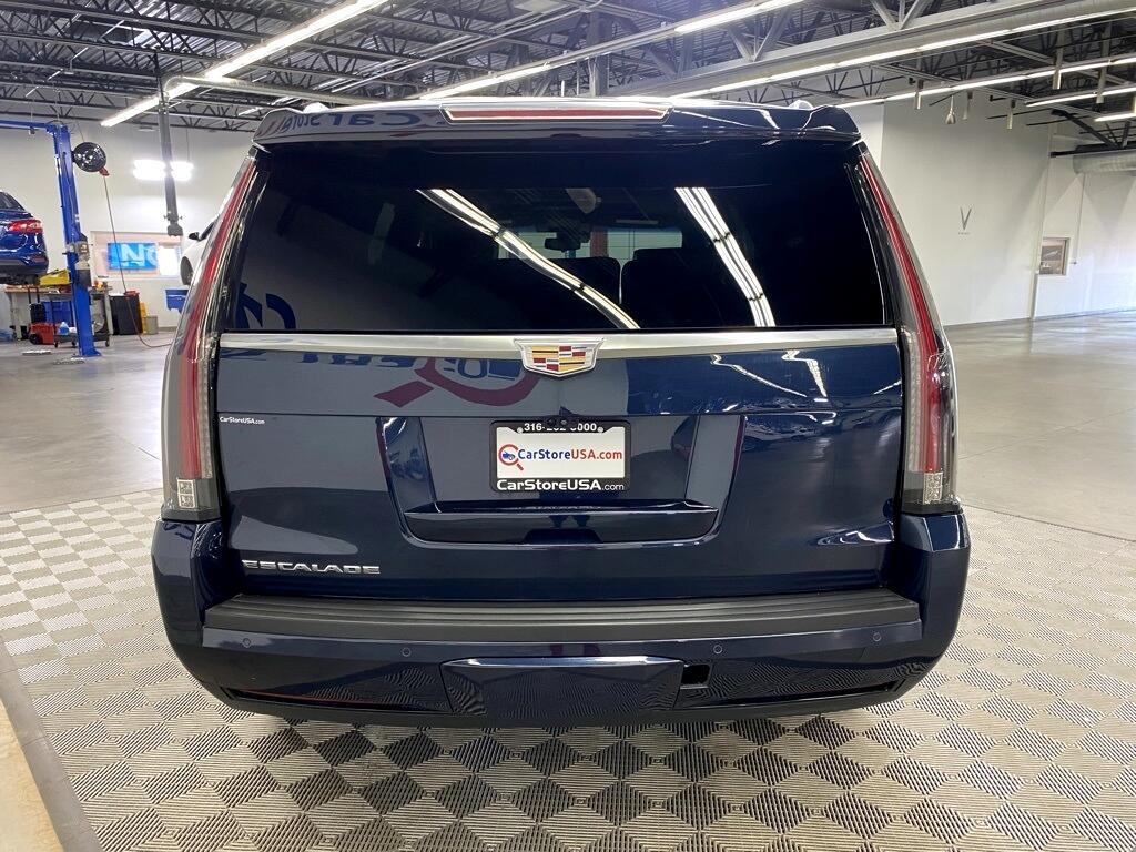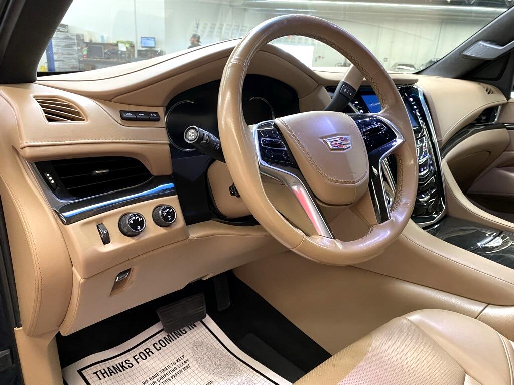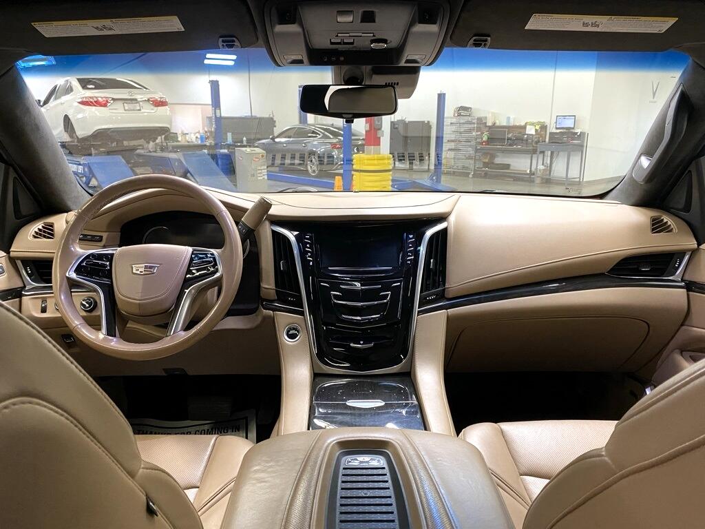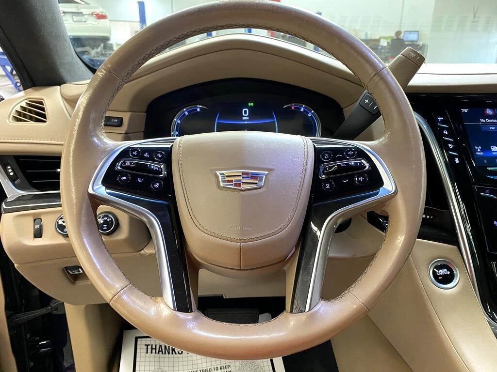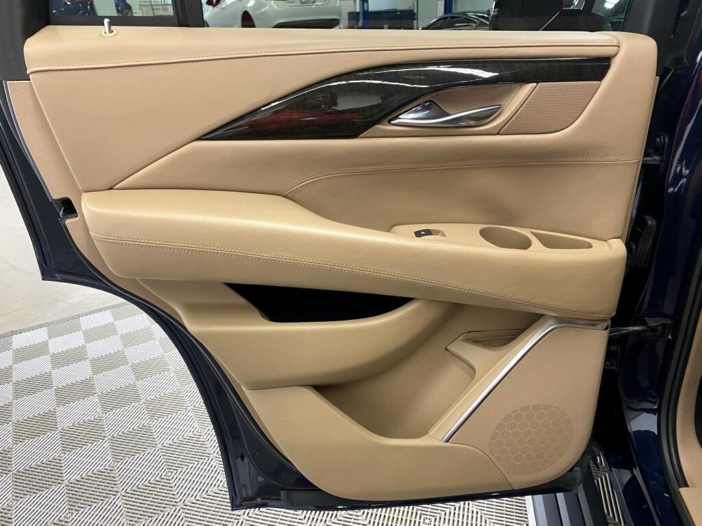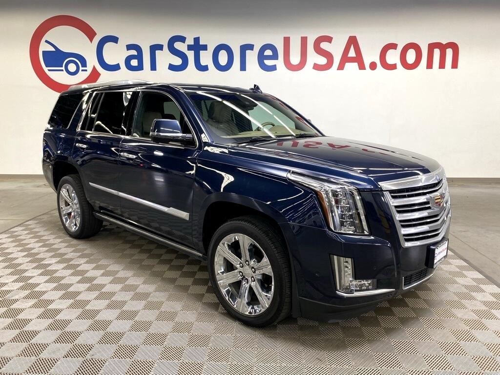 THIS VEHICLE IS EQUIPPED WITH THE FOLLOWING FEATURES AND OPTIONS Driver Assist Package (Adaptive Full-Speed Range Cruise Control, Automatic Safety Belt Tightening, Electronic Powered Parking Brake, and Forward/Reverse Automatic Braking), Interior Protection Package (LPO) (1st 2nd & 3rd Row All-Weather Floor Mats (LPO) and All-Weather Cargo Mat (LPO)), Platinum Package (Cooled Console w/Covered Storage, Dual DVD Screens, Leather Wrapped IP/Console/Door, Microfiber Sueded Headliner, Platinum Sill Plates, Premium Floor Mats, Sumi Black Tamo Ash Unique Exotic Wood, and Unique Grille Design), Preferred Equipment Group 1SD (Forward Collision Alert, Illuminated Door Handles, IntelliBeam Automatic High Beam On/Off, Lane Change Alert w/Side Blind Zone Alert, Lane Keep Assist w/Lane Departure Warning, Power Tilt-Sliding Sunroof w/Express-Open/Close, Power-Retractable Assist Steps, Rear Camera Mirror, Rear Camera Washer, Rear Cross-Traffic Alert, Rear Seat Entertainment System, Reconfigurable 4-Color Head-Up Display, Safety Alert Seat, Second Row Bucket Seats, and VAC Power 17" Disc Brakes), Theft-Deterrent Package (Inclination Sensor, Theft-Deterrent Alarm System, and Vehicle Interior Movement Sensor), 16 Speakers, 2-Position Memory For Driver's Seat Adjuster, 3.23 Axle Ratio, 3rd row seats: split-bench, 4-Wheel Disc Brakes, A/V remote, ABS brakes, Adaptive suspension, Adjustable pedals, Air Conditioning, Alloy wheels, AM/FM radio: SiriusXM, Apple CarPlay/Android Auto, Auto High-beam Headlights, Auto tilt-away steering wheel, Auto-dimming door mirrors, Auto-leveling suspension, Automatic temperature control, Black Front License Plate Bracket, Bodyside moldings, Bose Centerpoint 16 Speaker Surround Sound System, Brake assist, Bumpers: body-color, CD player, Compass, Delay-off headlights, Driver door bin, Driver vanity mirror, Dual front impact airbags, Dual front side impact airbags, DVD-Audio, Electronic Stability Control, Emergency communication system: OnStar and Cadillac connected services capable, Exterior Parking Camera Rear, Front anti-roll bar, Front Bucket Seats, Front Center Armrest w/Storage, Front dual zone A/C, Front reading lights, Front wheel independent suspension, Fully automatic headlights, Garage door transmitter, Genuine wood dashboard insert, HD Radio, Headphones, Heads-Up Display, Heated & Cooled Front Bucket Seats, Heated door mirrors, Heated front seats, Heated rear seats, Heated steering wheel, Illuminated entry, Leather Shift Knob, Leather steering wheel, Low tire pressure warning, Magnetic Ride Control Suspension, Memory seat, Navigation System, NavTraffic, Occupant sensing airbag, Outside temperature display, Overhead airbag, Overhead console, Panic alarm, Passenger door bin, Passenger vanity mirror, Pedal memory, Power door mirrors, Power driver seat, Power Liftgate, Power moonroof, Power passenger seat, Power steering, Power windows, Radio data system, Radio: AM/FM Cadillac User Experience w/Nav, Rain sensing wipers, Rear air conditioning, Rear anti-roll bar, Rear audio controls, Rear reading lights, Rear window defroster, Rear window wiper, Remote keyless entry, Roof rack: rails only, Security system, Semi-Aniline Leather Seating Surfaces, SiriusXM Satellite Radio, Speed control, Split folding rear seat, Spoiler, Steering wheel memory, Steering wheel mounted audio controls, Tachometer, Telescoping steering wheel, Tilt steering wheel, Traction control, Trip computer, Turn signal indicator mirrors, Variably intermittent wipers, Ventilated front seats, Wheel Locks, Wheels: 22" x 9" 6-Spoke Chrome, and Wheels: 22" x 9" Premium Painted w/Chrome Inserts. Clean CARFAX. Dark Adriatic Blue Metallic 2018 Cadillac Escalade Platinum Edition 4WD 10-Speed Automatic with Overdrive 6.2L Variable Valve Timing V8 SIDI