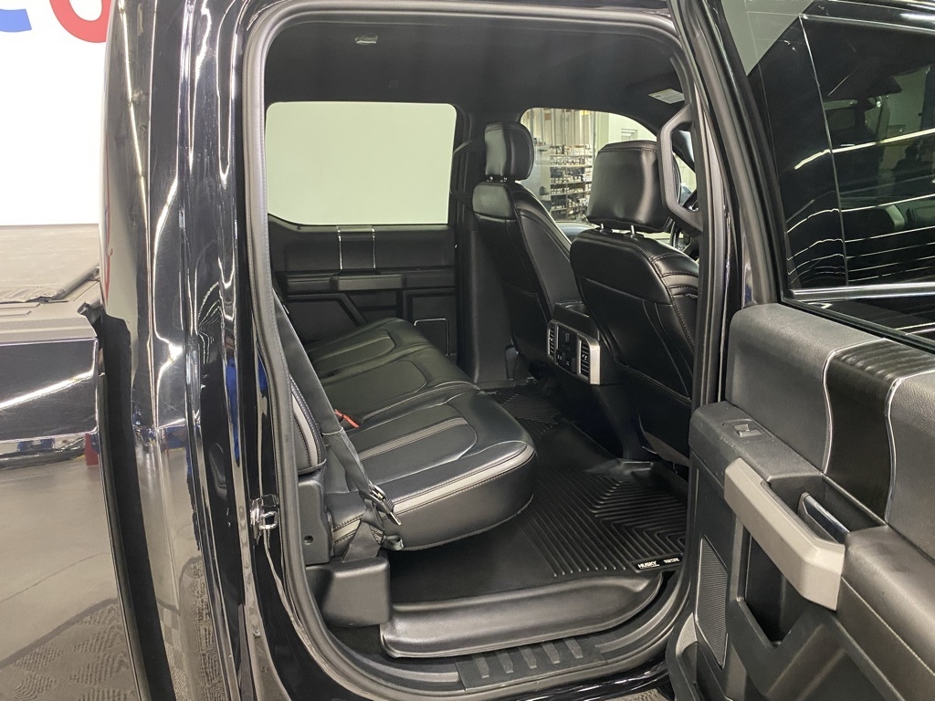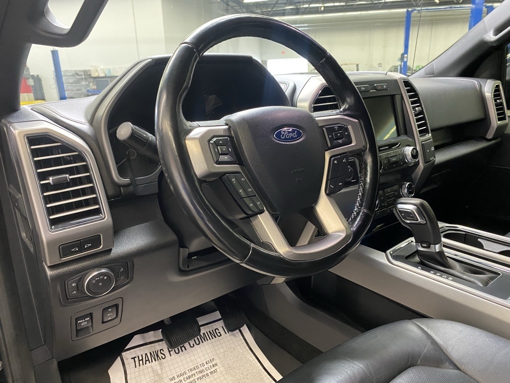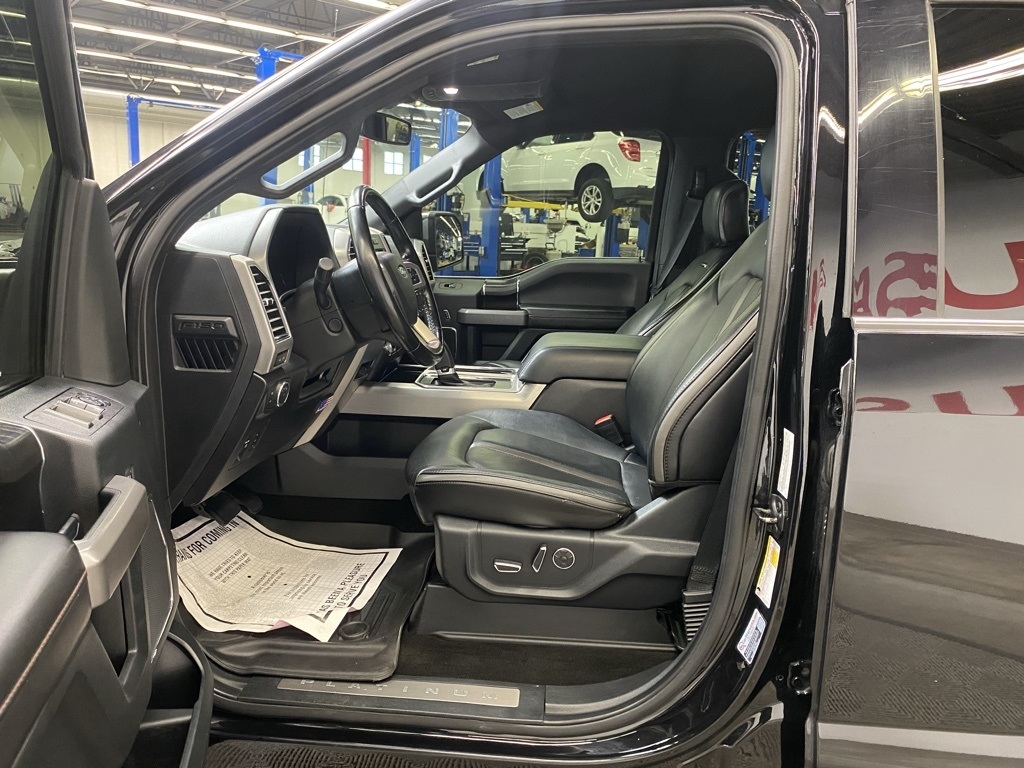 THIS VEHICLE IS EQUIPPED WITH THE FOLLOWING FEATURES AND OPTIONS Equipment Group 700A Base, GVWR: 7,050 lbs Payload Package, 10 Speakers, 20" Polished Aluminum Wheels, 3.31 Axle Ratio, 4-Wheel Disc Brakes, ABS brakes, Adjustable pedals, Air Conditioning, Alloy wheels, AM/FM radio: SiriusXM, AppLink/Apple CarPlay and Android Auto, Auto High-beam Headlights, Auto tilt-away steering wheel, Auto-dimming door mirrors, Auto-dimming Rear-View mirror, Automatic temperature control, Black Unique Multi-Contour Leather Bucket Seats, Brake assist, Bumpers: body-color, Class IV Trailer Hitch Receiver, Compass, Delay-off headlights, Driver door bin, Driver vanity mirror, Dual front impact airbags, Dual front side impact airbags, Electronic Stability Control, Emergency communication system: SYNC 3 911 Assist, Exterior Parking Camera Rear, Front anti-roll bar, Front Bucket Seats, Front Center Armrest, Front dual zone A/C, Front fog lights, Front reading lights, Front wheel independent suspension, Fully automatic headlights, Garage door transmitter, Genuine wood door panel insert, Heated door mirrors, Heated front seats, Heated rear seats, Heated steering wheel, Illuminated entry, Integrated Trailer Brake Controller, Low tire pressure warning, Memory seat, Navigation System, Occupant sensing airbag, Outside temperature display, Overhead airbag, Overhead console, Panic alarm, Passenger door bin, Passenger vanity mirror, Pedal memory, Power door mirrors, Power driver seat, Power passenger seat, Power steering, Power windows, Radio data system, Radio: B&O Sound System by Bang & Olufsen, Rain sensing wipers, Rear Parking Sensors, Rear reading lights, Rear seat center armrest, Rear step bumper, Rear window defroster, Remote keyless entry, Security system, SiriusXM Radio, Speed control, Speed-sensing steering, Split folding rear seat, Steering wheel memory, Steering wheel mounted audio controls, SYNC 3, Tachometer, Telescoping steering wheel, Tilt steering wheel, Traction control, Trip computer, Turn signal indicator mirrors, Variably intermittent wipers, Ventilated front seats, Voice-Activated Touchscreen Navigation, and Voltmeter. Clean CARFAX. Black Metallic 2019 Ford F-150 Platinum 4WD 10-Speed Automatic 3.5L V6 EcoBoost
