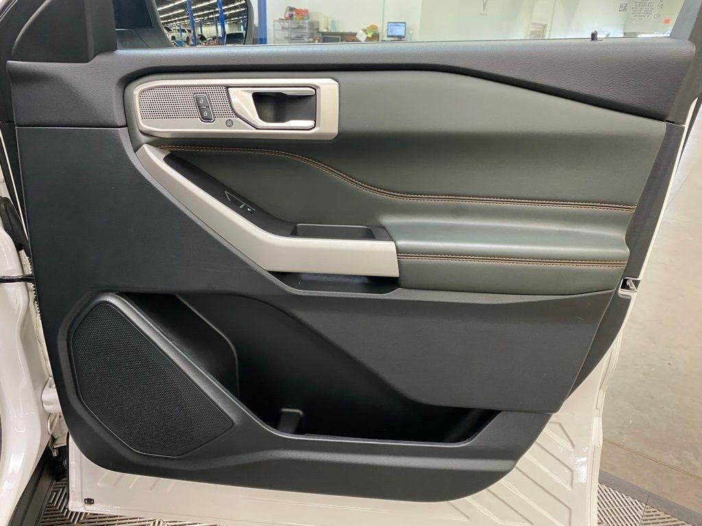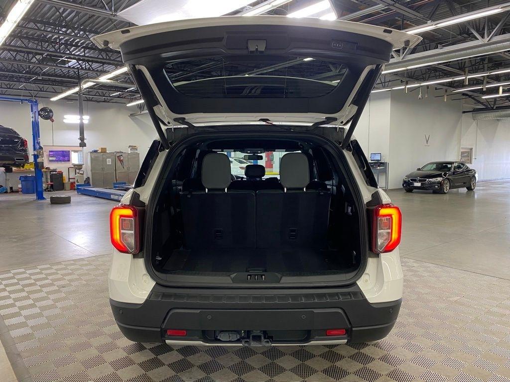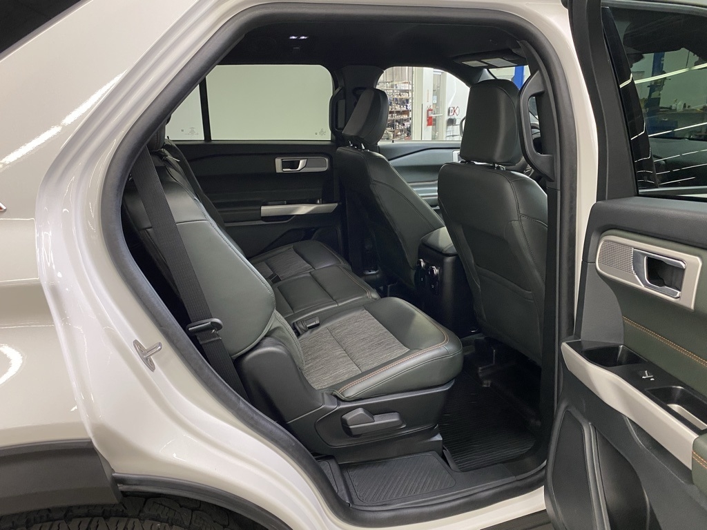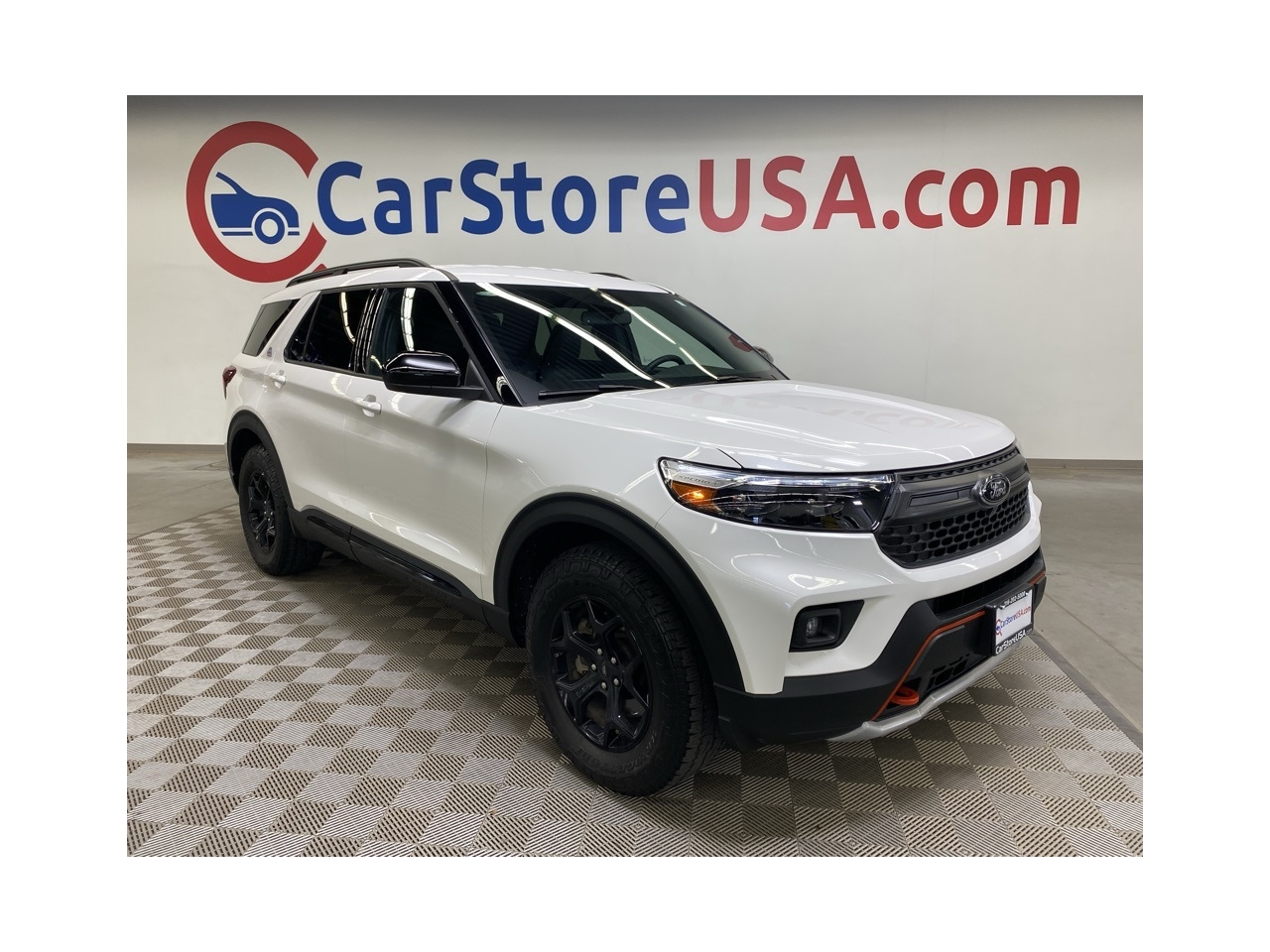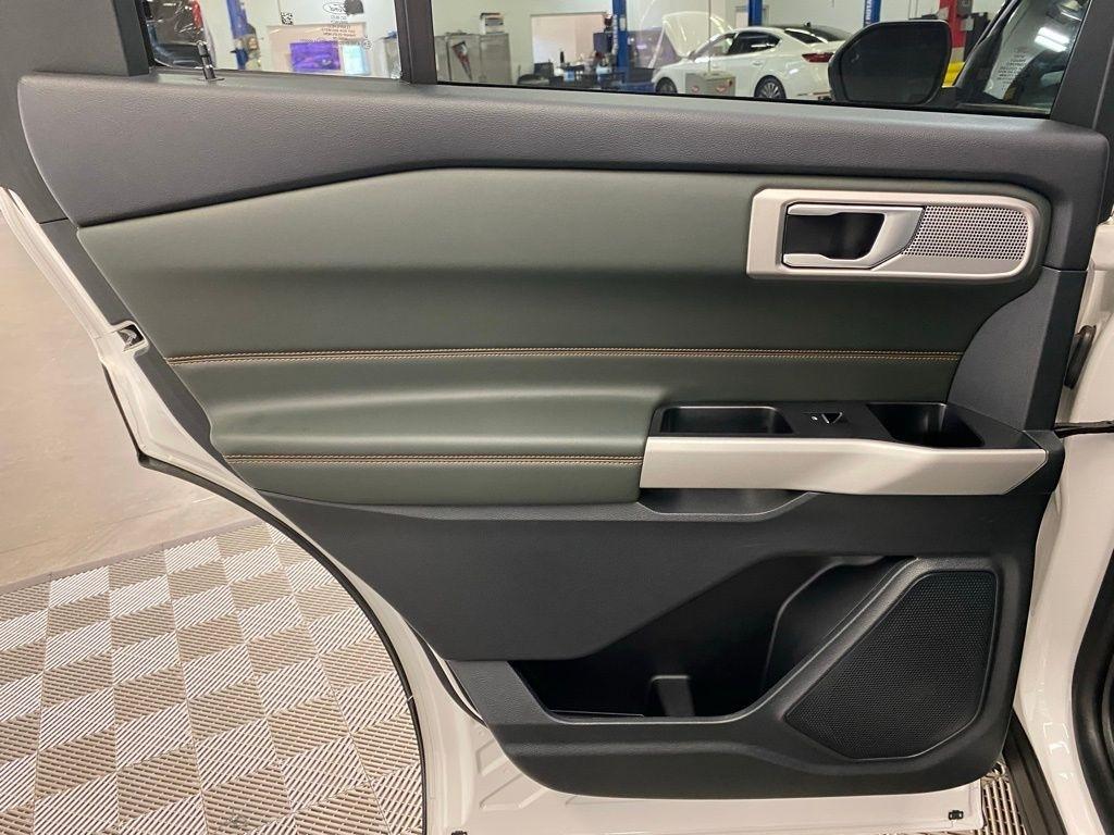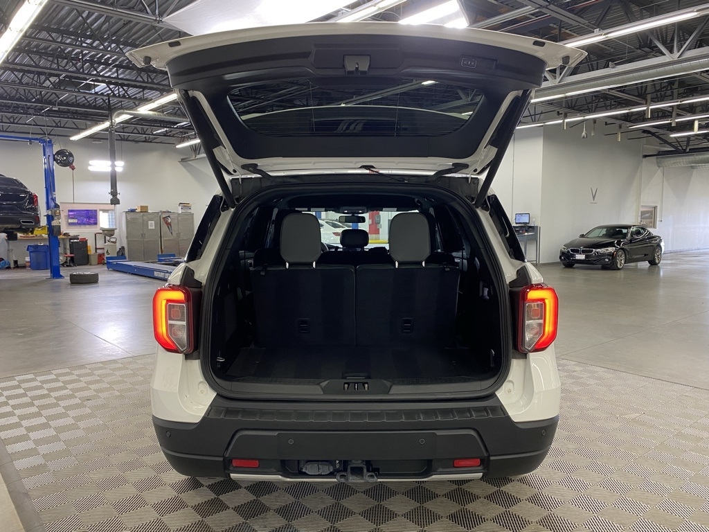CARFAX One-Owner. THIS VEHICLE IS EQUIPPED WITH THE FOLLOWING FEATURES AND OPTIONS Equipment Group 800A, Timberline Technology Package (110V/150W AC Power Outlet, 3rd Row PowerFold Seat, Auto-Dimming Interior Rear-View Mirror, Radio: B&O Sound System by Bang & Olufsen, Sideview Mirrors w/Gloss Black Caps, Universal Garage Door Opener (UGDO), and Wireless Charging Pad), 2nd Row 35/30/35 Bench w/E-Z Entry & Armrest, 3.58 Torsen Limited Slip Rear Axle, 360-Degree Camera Credit, 3rd row seats: bench, 4-Wheel Disc Brakes, 4G LTE Wi-Fi Hotspot Credit, 6 Speakers, ABS brakes, Air Conditioning, Alloy wheels, AM/FM radio: SiriusXM, AM/FM Stereo, Auto High-beam Headlights, Automatic temperature control, Brake assist, Bumpers: body-color, Compass, Delay-off headlights, Driver door bin, Driver vanity mirror, Dual front impact airbags, Dual front side impact airbags, Electronic Stability Control, Emergency communication system: SYNC 3 911 Assist, Exterior Parking Camera Rear, FordPass Connect, Four wheel independent suspension, Front anti-roll bar, Front Bucket Seats, Front Center Armrest, Front dual zone A/C, Front fog lights, Front License Plate Bracket, Front reading lights, Fully automatic headlights, Heated ActiveX Trimmed Captain's Chairs, Heated door mirrors, Heated front seats, Heated rear seats, Heated steering wheel, Illuminated entry, Knee airbag, Leather steering wheel, Low tire pressure warning, Navigation System, Occupant sensing airbag, Outside temperature display, Overhead airbag, Overhead console, Panic alarm, Passenger door bin, Passenger vanity mirror, Power door mirrors, Power driver seat, Power Liftgate, Power passenger seat, Power steering, Power windows, Rear air conditioning, Rear anti-roll bar, Rear reading lights, Rear window defroster, Rear window wiper, Remote keyless entry, Security system, SelectShift Capability w/Paddle Shifters, Speed control, Speed-sensing steering, Speed-Sensitive Wipers, Split folding rear seat, Spoiler, Sport steering wheel, Steering wheel mounted audio controls, SYNC 3 Communications & Entertainment System, SYNC 3/Apple CarPlay/Android Auto, Tachometer, Telescoping steering wheel, Tilt steering wheel, Traction control, Trip computer, Variably intermittent wipers, Voice-Activated Touchscreen Navigation System, and Wheels: 18" High Gloss Black-Painted Aluminum. White Metallic 2024 Ford Explorer Timberline 4WD 10-Speed Automatic 2.3L EcoBoost I-4