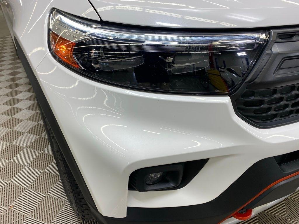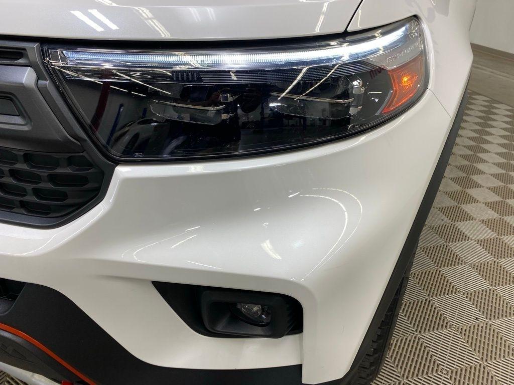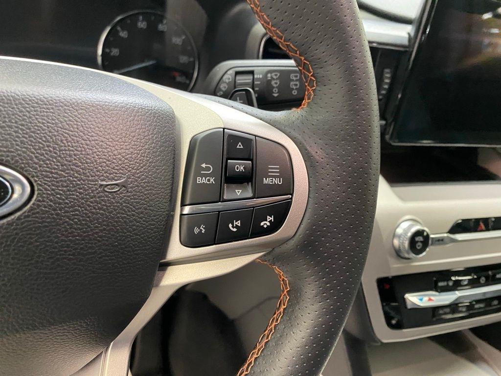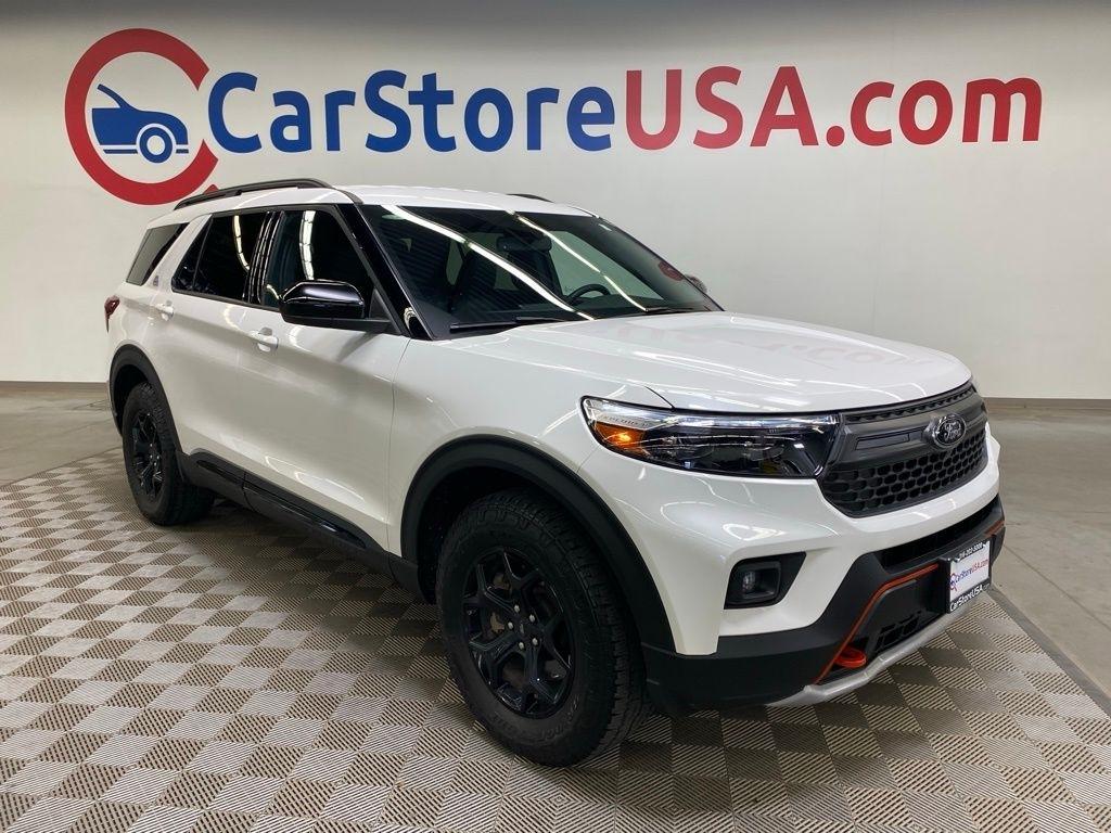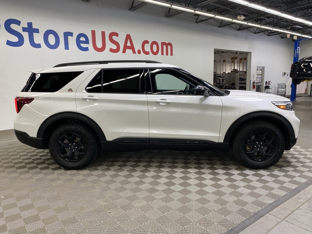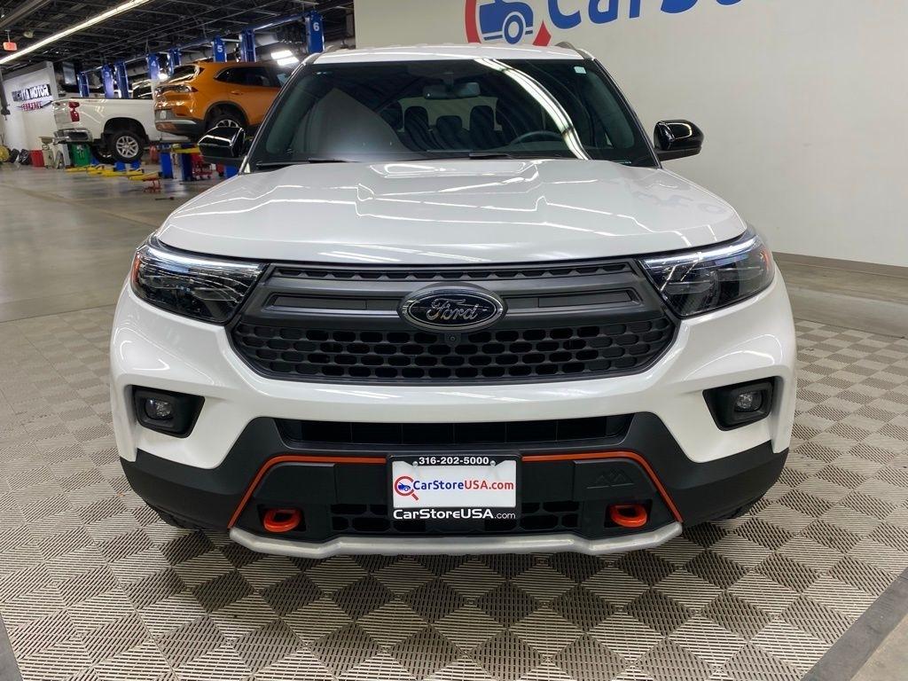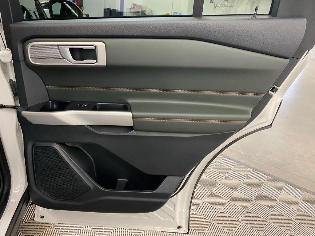 CARFAX One-Owner. THIS VEHICLE IS EQUIPPED WITH THE FOLLOWING FEATURES AND OPTIONS Equipment Group 800A, Timberline Technology Package (110V/150W AC Power Outlet, 3rd Row PowerFold Seat, Auto-Dimming Interior Rear-View Mirror, Radio: B&O Sound System by Bang & Olufsen, Sideview Mirrors w/Gloss Black Caps, Universal Garage Door Opener (UGDO), and Wireless Charging Pad), 2nd Row 35/30/35 Bench w/E-Z Entry & Armrest, 3.58 Torsen Limited Slip Rear Axle, 360-Degree Camera Credit, 3rd row seats: bench, 4-Wheel Disc Brakes, 4G LTE Wi-Fi Hotspot Credit, 6 Speakers, ABS brakes, Air Conditioning, Alloy wheels, AM/FM radio: SiriusXM, AM/FM Stereo, Auto High-beam Headlights, Automatic temperature control, Brake assist, Bumpers: body-color, Compass, Delay-off headlights, Driver door bin, Driver vanity mirror, Dual front impact airbags, Dual front side impact airbags, Electronic Stability Control, Emergency communication system: SYNC 3 911 Assist, Exterior Parking Camera Rear, FordPass Connect, Four wheel independent suspension, Front anti-roll bar, Front Bucket Seats, Front Center Armrest, Front dual zone A/C, Front fog lights, Front License Plate Bracket, Front reading lights, Fully automatic headlights, Heated ActiveX Trimmed Captain's Chairs, Heated door mirrors, Heated front seats, Heated rear seats, Heated steering wheel, Illuminated entry, Knee airbag, Leather steering wheel, Low tire pressure warning, Navigation System, Occupant sensing airbag, Outside temperature display, Overhead airbag, Overhead console, Panic alarm, Passenger door bin, Passenger vanity mirror, Power door mirrors, Power driver seat, Power Liftgate, Power passenger seat, Power steering, Power windows, Rear air conditioning, Rear anti-roll bar, Rear reading lights, Rear window defroster, Rear window wiper, Remote keyless entry, Security system, SelectShift Capability w/Paddle Shifters, Speed control, Speed-sensing steering, Speed-Sensitive Wipers, Split folding rear seat, Spoiler, Sport steering wheel, Steering wheel mounted audio controls, SYNC 3 Communications & Entertainment System, SYNC 3/Apple CarPlay/Android Auto, Tachometer, Telescoping steering wheel, Tilt steering wheel, Traction control, Trip computer, Variably intermittent wipers, Voice-Activated Touchscreen Navigation System, and Wheels: 18" High Gloss Black-Painted Aluminum. White Metallic 2024 Ford Explorer Timberline 4WD 10-Speed Automatic 2.3L EcoBoost I-4
