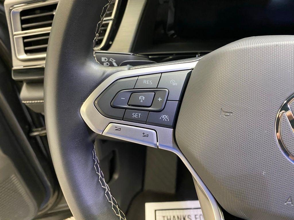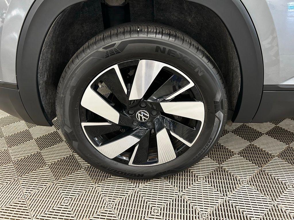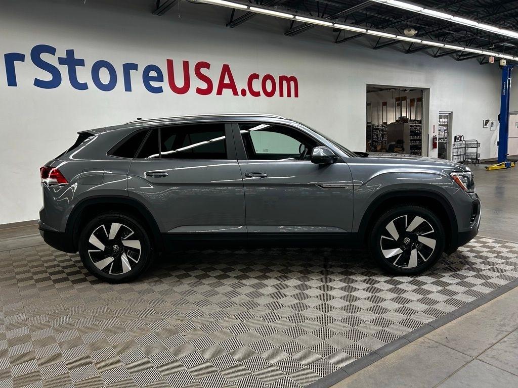 CARFAX One-Owner. THIS VEHICLE IS EQUIPPED WITH THE FOLLOWING FEATURES AND OPTIONS 3.60 Axle Ratio, 4-Wheel Disc Brakes, 4-Wheel Independent Suspension, 6 Speakers, ABS brakes, Air Conditioning, Alloy wheels, AM/FM radio: SiriusXM with 360L, Auto-dimming Rear-View mirror, Automatic temperature control, Brake assist, Bumpers: body-color, Compass, Delay-off headlights, Driver door bin, Driver vanity mirror, Dual front impact airbags, Dual front side impact airbags, Electronic Stability Control, Emergency communication system: VW Car-Net Safe & Secure 5-year, Exterior Parking Camera Rear, Four wheel independent suspension, Front anti-roll bar, Front Bucket Seats, Front Center Armrest, Front dual zone A/C, Front fog lights, Front reading lights, Fully automatic headlights, Heated & Actively Ventilated Front Seats, Heated door mirrors, Heated front seats, Heated steering wheel, Illuminated entry, Low tire pressure warning, Occupant sensing airbag, Outside temperature display, Overhead airbag, Overhead console, Panic alarm, Passenger door bin, Passenger vanity mirror, Perforated V-Tex Leatherette Seating Surfaces, Power door mirrors, Power driver seat, Power Liftgate, Power steering, Power windows, Radio data system, Radio: MIB3 Composition Media AM/FM/HD, Rain sensing wipers, Rear anti-roll bar, Rear reading lights, Rear seat center armrest, Rear window defroster, Rear window wiper, Remote keyless entry, Security system, Speed control, Speed-sensing steering, Split folding rear seat, Spoiler, Steering wheel mounted audio controls, Tachometer, Telescoping steering wheel, Tilt steering wheel, Traction control, Trip computer, Turn signal indicator mirrors, Variably intermittent wipers, Ventilated front seats, and Wheels: 20" 5-Spoke 2-Tone Machined Alloy. Clean CARFAX. Gray 2024 Volkswagen Atlas Cross Sport 2.0T SE w/Technology FWD 8-Speed Automatic with Tiptronic 2.0L TSI