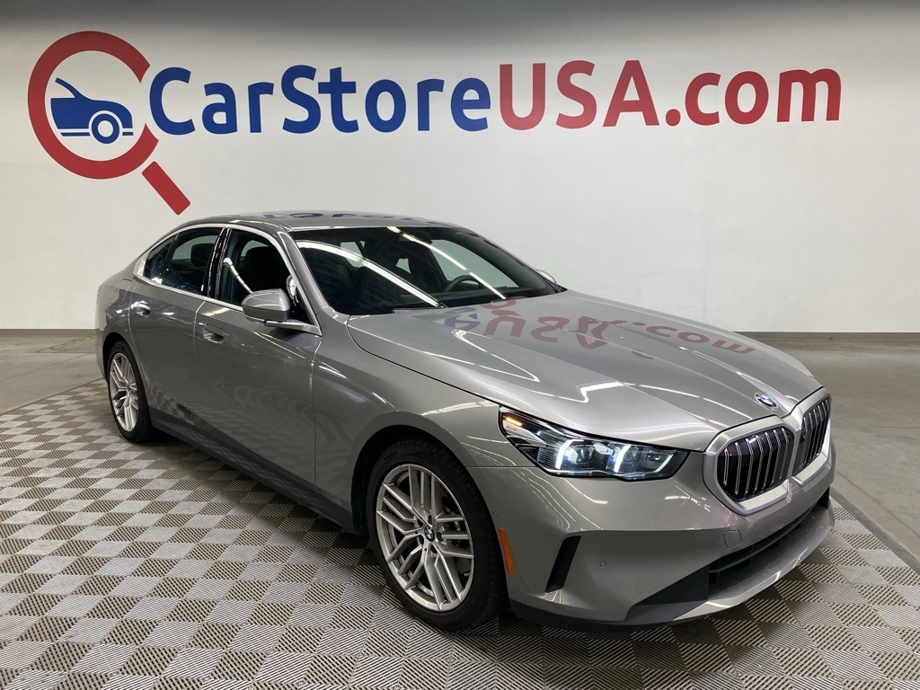 CARFAX One-Owner. THIS VEHICLE IS EQUIPPED WITH THE FOLLOWING FEATURES AND OPTIONS Connected Package Pro, 12 Speakers, 4-Wheel Disc Brakes, ABS brakes, Air Conditioning, Alloy wheels, AM/FM radio: SiriusXM with 360L, Auto tilt-away steering wheel, Auto-dimming door mirrors, Auto-dimming Rear-View mirror, Automatic temperature control, BMW Assist eCall, BMW TeleServices, Brake assist, Bumpers: body-color, ConnectedDrive Services, Delay-off headlights, Driver door bin, Driver vanity mirror, Dual front impact airbags, Dual front side impact airbags, Electronic Stability Control, Emergency communication system: BMW Assist eCall, Exterior Parking Camera Rear, Four wheel independent suspension, Front anti-roll bar, Front Bucket Seats, Front Center Armrest, Front dual zone A/C, Front reading lights, Fully automatic headlights, Garage door transmitter, Genuine wood dashboard insert, Genuine wood door panel insert, harman/kardon® Logic 7® Digital Surround, harman/kardon® Speakers, Head restraints memory, Heated door mirrors, Illuminated entry, Leather steering wheel, Low tire pressure warning, Lumbar Support, Memory seat, Navigation System, Occupant sensing airbag, Outside temperature display, Overhead airbag, Panic alarm, Passenger door bin, Passenger vanity mirror, Power adjustable front head restraints, Power door mirrors, Power driver seat, Power Front Seats, Power moonroof, Power passenger seat, Power steering, Power windows, Radio data system, Radio: AM/FM Audio System, Rain sensing wipers, Rear anti-roll bar, Rear reading lights, Rear seat center armrest, Rear window defroster, Remote keyless entry, Security system, SiriusXM w/360L & 1 Yr Platinum Plan Subscription, Speed control, Speed-sensing steering, Speed-Sensitive Wipers, Split folding rear seat, Sport Seats, Steering wheel memory, Steering wheel mounted audio controls, Tachometer, Telescoping steering wheel, Tilt steering wheel, Traction control, Trip computer, Turn signal indicator mirrors, Variably intermittent wipers, Veganza Perforated & Quilted Upholstery, and Wheels: 19" x 8.5" Light-Alloy Triplex-Spoke. Clean CARFAX. Gray 2024 BMW 5 Series 530i RWD 8-Speed Automatic 2.0L 4-Cylinder