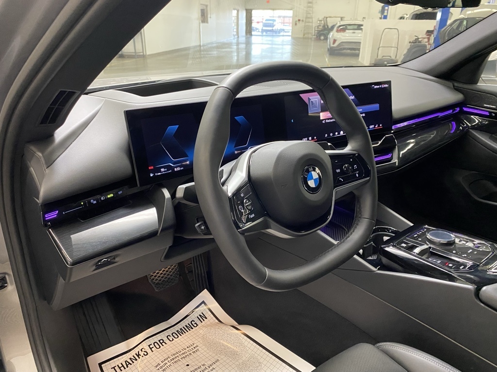 CARFAX One-Owner. THIS VEHICLE IS EQUIPPED WITH THE FOLLOWING FEATURES AND OPTIONS Connected Package Pro, 12 Speakers, 4-Wheel Disc Brakes, ABS brakes, Air Conditioning, Alloy wheels, AM/FM radio: SiriusXM with 360L, Auto tilt-away steering wheel, Auto-dimming door mirrors, Auto-dimming Rear-View mirror, Automatic temperature control, BMW Assist eCall, BMW TeleServices, Brake assist, Bumpers: body-color, ConnectedDrive Services, Delay-off headlights, Driver door bin, Driver vanity mirror, Dual front impact airbags, Dual front side impact airbags, Electronic Stability Control, Emergency communication system: BMW Assist eCall, Exterior Parking Camera Rear, Four wheel independent suspension, Front anti-roll bar, Front Bucket Seats, Front Center Armrest, Front dual zone A/C, Front reading lights, Fully automatic headlights, Garage door transmitter, Genuine wood dashboard insert, Genuine wood door panel insert, harman/kardon® Logic 7® Digital Surround, harman/kardon® Speakers, Head restraints memory, Heated door mirrors, Illuminated entry, Leather steering wheel, Low tire pressure warning, Lumbar Support, Memory seat, Navigation System, Occupant sensing airbag, Outside temperature display, Overhead airbag, Panic alarm, Passenger door bin, Passenger vanity mirror, Power adjustable front head restraints, Power door mirrors, Power driver seat, Power Front Seats, Power moonroof, Power passenger seat, Power steering, Power windows, Radio data system, Radio: AM/FM Audio System, Rain sensing wipers, Rear anti-roll bar, Rear reading lights, Rear seat center armrest, Rear window defroster, Remote keyless entry, Security system, SiriusXM w/360L & 1 Yr Platinum Plan Subscription, Speed control, Speed-sensing steering, Speed-Sensitive Wipers, Split folding rear seat, Sport Seats, Steering wheel memory, Steering wheel mounted audio controls, Tachometer, Telescoping steering wheel, Tilt steering wheel, Traction control, Trip computer, Turn signal indicator mirrors, Variably intermittent wipers, Veganza Perforated & Quilted Upholstery, and Wheels: 19" x 8.5" Light-Alloy Triplex-Spoke. Clean CARFAX. Gray 2024 BMW 5 Series 530i RWD 8-Speed Automatic 2.0L 4-Cylinder