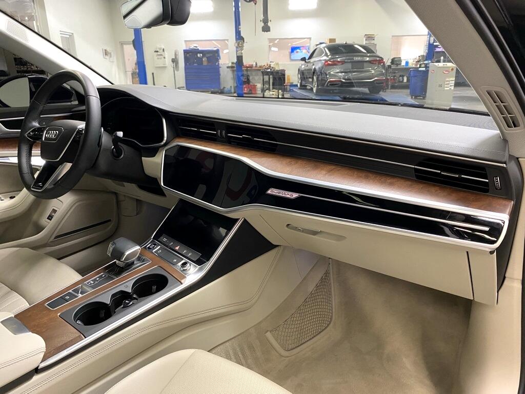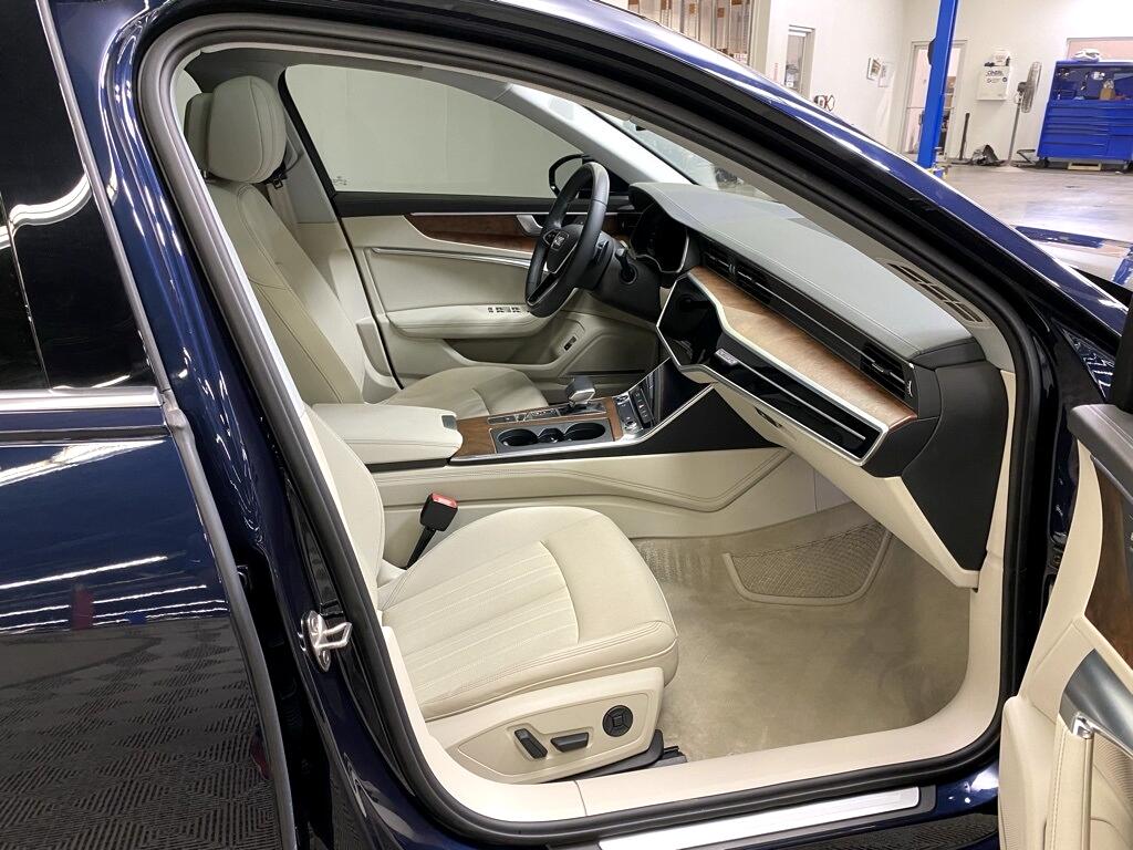 CARFAX One-Owner. THIS VEHICLE IS EQUIPPED WITH THE FOLLOWING FEATURES AND OPTIONS Convenience Package (Adaptive Cruise Assist w/Lane Guidance, Audi Phone Box w/Wireless Charging, Audi Side Assist w/Pre Sense Rear, Heated Steering Wheel, and Top View Camera System w/Virtual 360 View), Executive Package (4-Zone Automatic Climate Control, Heated Rear Seats, Multicolor Contour/Ambient LED Int Lighting Pkg, Open & Close Power Trunk, and Ventilated Front Seats), Premium Plus Package (Bang & Olufsen Premium Sound System w/3D Sound, Contrast Stitching on Door Armrests & Knee Bolster, and Matrix-Design LED Headlights), 10 Speakers, 4-Wheel Disc Brakes, ABS brakes, Air Conditioning, Alloy wheels, AM/FM radio: SiriusXM w/ 360L, Auto High-beam Headlights, Auto tilt-away steering wheel, Auto-dimming door mirrors, Auto-dimming Rear-View mirror, Automatic temperature control, Brake assist, Bumpers: body-color, Compass, Delay-off headlights, Driver door bin, Driver vanity mirror, Dual front impact airbags, Dual front side impact airbags, Electronic Stability Control, Emergency communication system: Audi connect CARE (limited time subscription), Exterior Parking Camera Rear, Four wheel independent suspension, Front anti-roll bar, Front Bucket Seats, Front Center Armrest, Front dual zone A/C, Front fog lights, Front reading lights, Garage door transmitter: HomeLink, Genuine wood console insert, Genuine wood dashboard insert, Genuine wood door panel insert, Heated door mirrors, Heated Front Seats, Heated front seats, Illuminated entry, Integrated Toll Module Delete (DISC), Knee airbag, Leather Seating Surfaces, Leather Shift Knob, Leather steering wheel, Low tire pressure warning, Matrix Design LED Headlights Delete (DISC), Memory seat, Navigation system: MMI Navigation plus, Occupant sensing airbag, Outside temperature display, Overhead airbag, Overhead console, Panic alarm, Passenger door bin, Passenger vanity mirror, Power door mirrors, Power driver seat, Power moonroof, Power passenger seat, Power steering, Power windows, Radio data system, Radio: Audi MMI Nav Plus w/MMI Touch Response, Rain sensing wipers, Rear air conditioning, Rear anti-roll bar, Rear reading lights, Rear seat center armrest, Rear side impact airbag, Rear window defroster, Remote keyless entry, Security system, Speed control, Speed-sensing steering, Speed-Sensitive Wipers, Split folding rear seat, Steering wheel memory, Steering wheel mounted audio controls, Tachometer, Telescoping steering wheel, Tilt steering wheel, Traction control, Trip computer, Turn signal indicator mirrors, Variably intermittent wipers, and Wheels: 19" Bi-Color Finish 5-Double-Spoke-Design. Clean CARFAX. Blue Metallic 2023 Audi A6 45 Premium Plus quattro quattro 7-Speed Automatic 2.0L 4-Cylinder TFSI