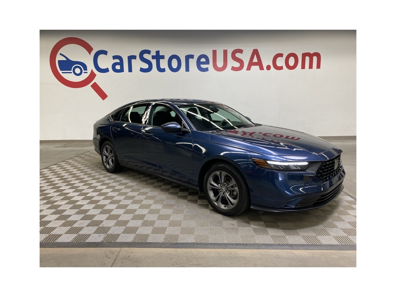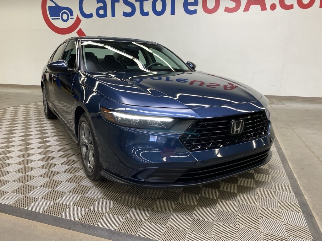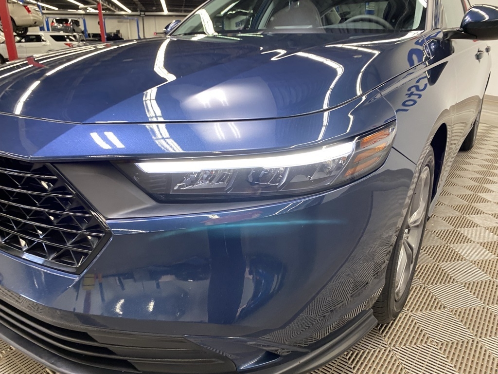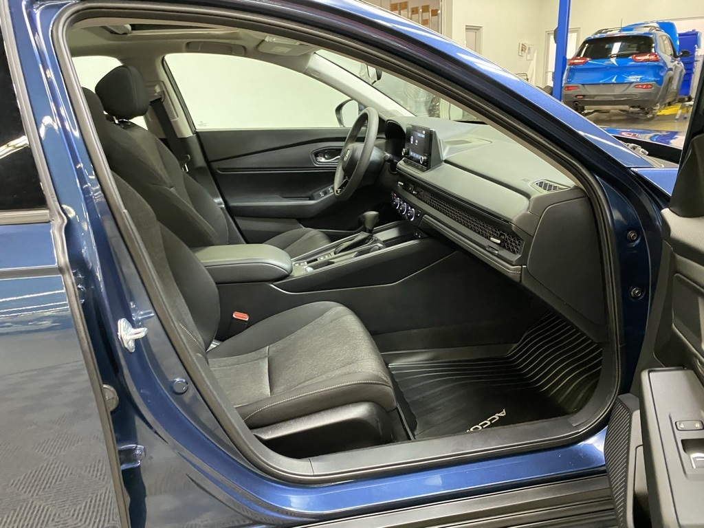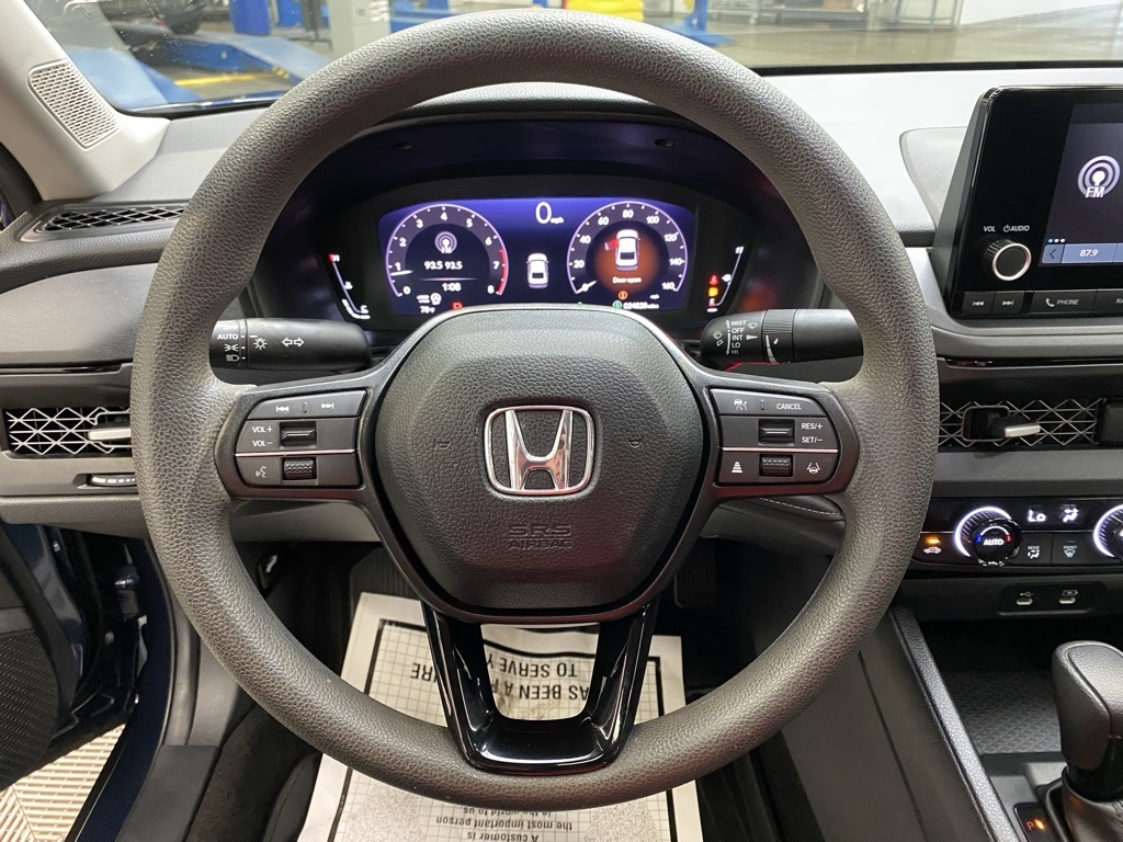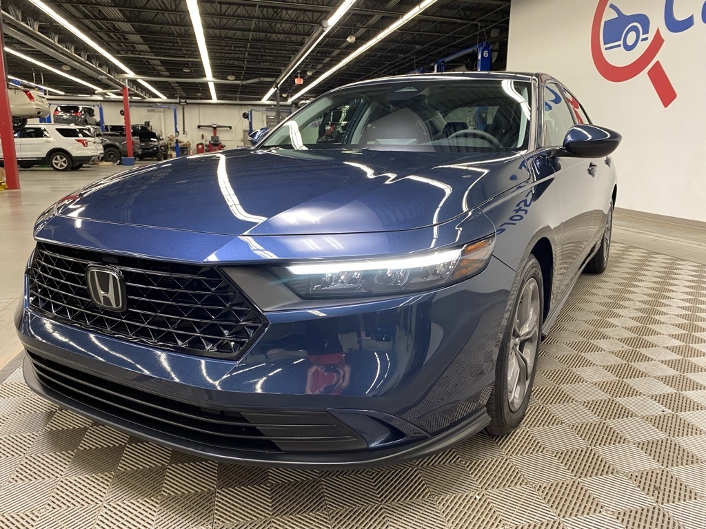 THIS VEHICLE IS EQUIPPED WITH THE FOLLOWING FEATURES AND OPTIONS 4-Wheel Disc Brakes, 8 Speakers, ABS brakes, Adaptive Cruise Control: Adaptive Cruise Control (ACC) with Low-Speed Follow, Air Conditioning, Alloy wheels, AM/FM radio, Apple CarPlay/Android Auto, Auto High-beam Headlights, Auto-dimming Rear-View mirror, Automatic temperature control, Blind Spot Information (BSI) System warning, Brake assist, Bumpers: body-color, Compass, Delay-off headlights, Driver door bin, Driver vanity mirror, Dual front impact airbags, Dual front side impact airbags, Electronic Stability Control, Emergency communication system: HondaLink Assist, Exterior Parking Camera Rear, Fabric Seat Trim, Four wheel independent suspension, Front anti-roll bar, Front Bucket Seats, Front Center Armrest, Front dual zone A/C, Front reading lights, Fully automatic headlights, Heated Front Bucket Seats, Heated front seats, Illuminated entry, Knee airbag, Lane departure: Lane Keeping Assist System (LKAS) active, Low tire pressure warning, Occupant sensing airbag, Outside temperature display, Overhead airbag, Overhead console, Panic alarm, Passenger door bin, Passenger vanity mirror, Power door mirrors, Power driver seat, Power moonroof, Power steering, Power windows, Radio data system, Radio: 180-Watt AM/FM Audio System, Rear anti-roll bar, Rear reading lights, Rear seat center armrest, Rear side impact airbag, Rear window defroster, Remote keyless entry, Security system, Speed control, Speed-sensing steering, Speed-Sensitive Wipers, Split folding rear seat, Steering wheel mounted audio controls, Tachometer, Telescoping steering wheel, Tilt steering wheel, Traction control, Trip computer, Variably intermittent wipers, and Wheels: 17" x 7.5" Pewter Gray. Blue 2024 Honda Accord EX FWD CVT 1.5T I4 DOHC 16V Turbocharged VTEC