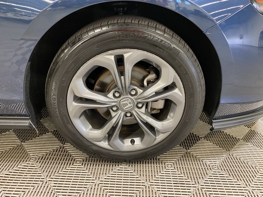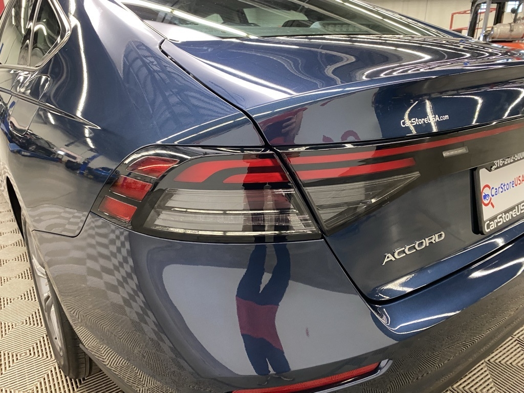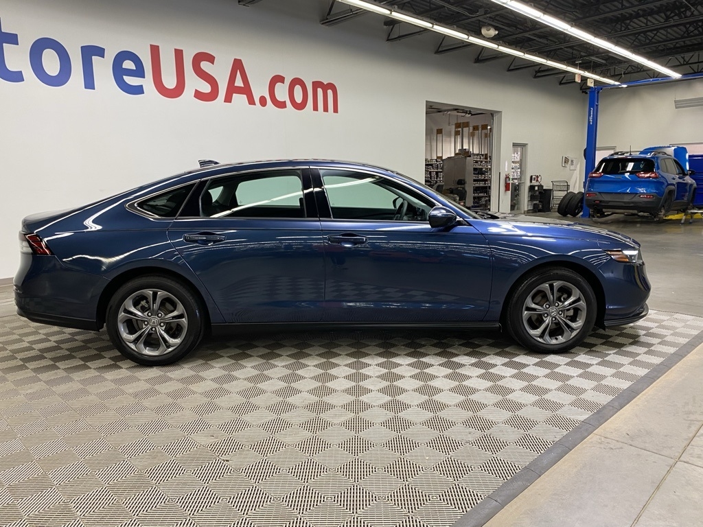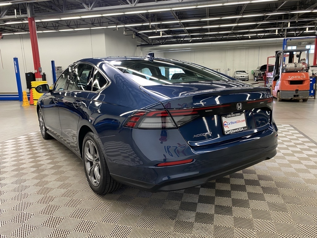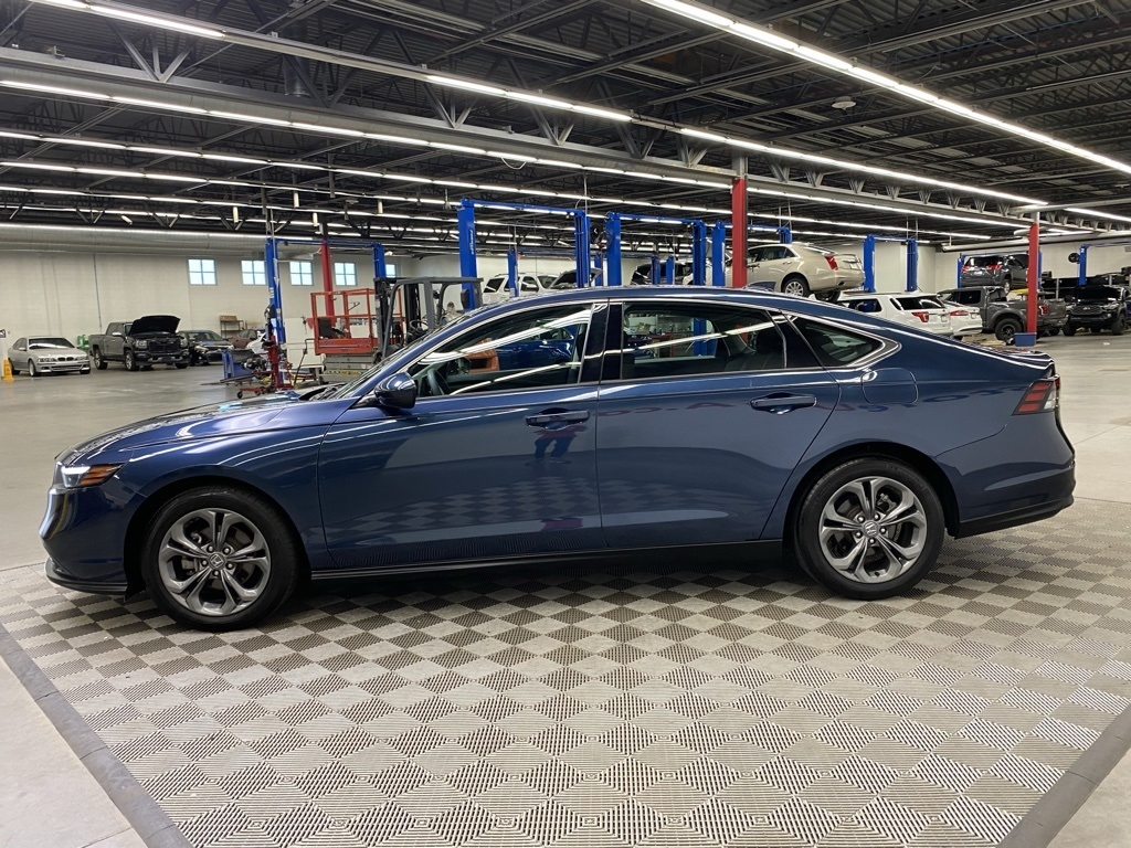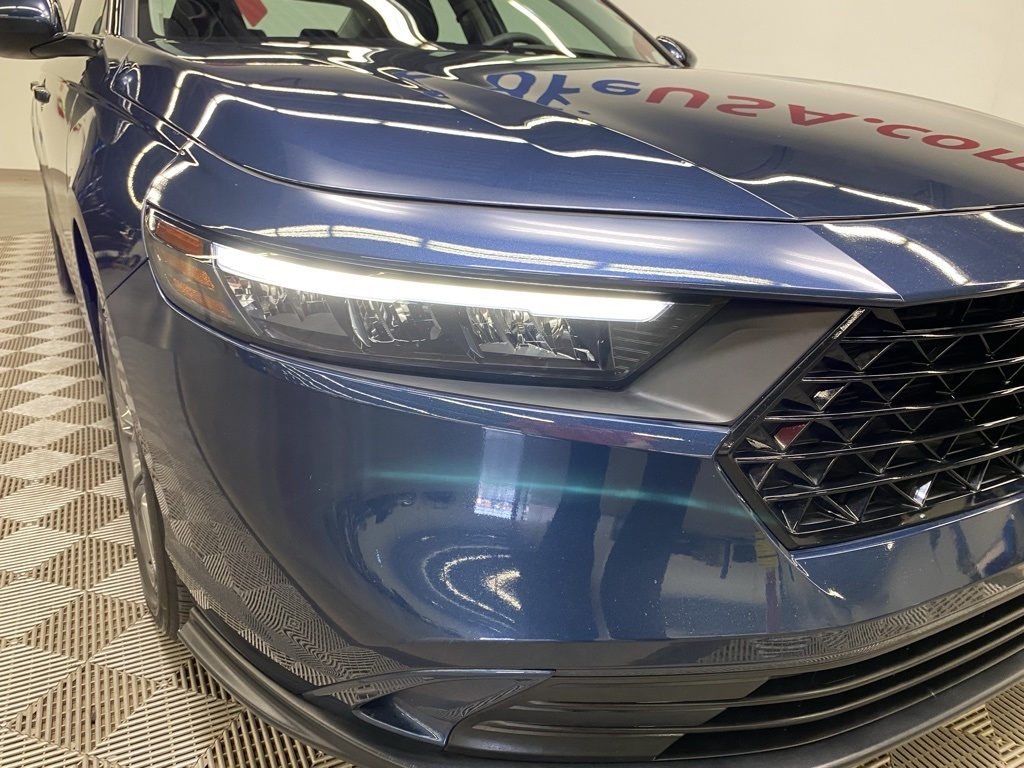 THIS VEHICLE IS EQUIPPED WITH THE FOLLOWING FEATURES AND OPTIONS 4-Wheel Disc Brakes, 8 Speakers, ABS brakes, Adaptive Cruise Control: Adaptive Cruise Control (ACC) with Low-Speed Follow, Air Conditioning, Alloy wheels, AM/FM radio, Apple CarPlay/Android Auto, Auto High-beam Headlights, Auto-dimming Rear-View mirror, Automatic temperature control, Blind Spot Information (BSI) System warning, Brake assist, Bumpers: body-color, Compass, Delay-off headlights, Driver door bin, Driver vanity mirror, Dual front impact airbags, Dual front side impact airbags, Electronic Stability Control, Emergency communication system: HondaLink Assist, Exterior Parking Camera Rear, Fabric Seat Trim, Four wheel independent suspension, Front anti-roll bar, Front Bucket Seats, Front Center Armrest, Front dual zone A/C, Front reading lights, Fully automatic headlights, Heated Front Bucket Seats, Heated front seats, Illuminated entry, Knee airbag, Lane departure: Lane Keeping Assist System (LKAS) active, Low tire pressure warning, Occupant sensing airbag, Outside temperature display, Overhead airbag, Overhead console, Panic alarm, Passenger door bin, Passenger vanity mirror, Power door mirrors, Power driver seat, Power moonroof, Power steering, Power windows, Radio data system, Radio: 180-Watt AM/FM Audio System, Rear anti-roll bar, Rear reading lights, Rear seat center armrest, Rear side impact airbag, Rear window defroster, Remote keyless entry, Security system, Speed control, Speed-sensing steering, Speed-Sensitive Wipers, Split folding rear seat, Steering wheel mounted audio controls, Tachometer, Telescoping steering wheel, Tilt steering wheel, Traction control, Trip computer, Variably intermittent wipers, and Wheels: 17" x 7.5" Pewter Gray. Blue 2024 Honda Accord EX FWD CVT 1.5T I4 DOHC 16V Turbocharged VTEC