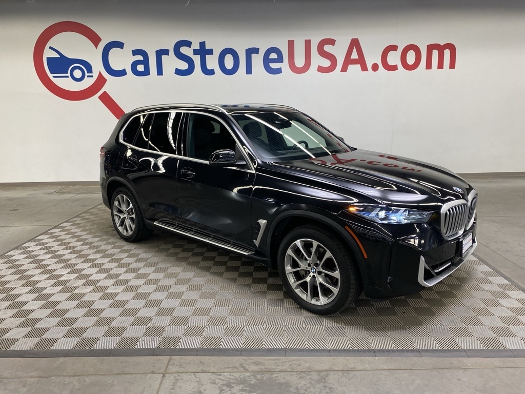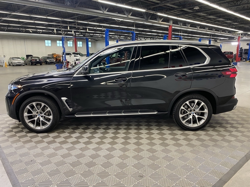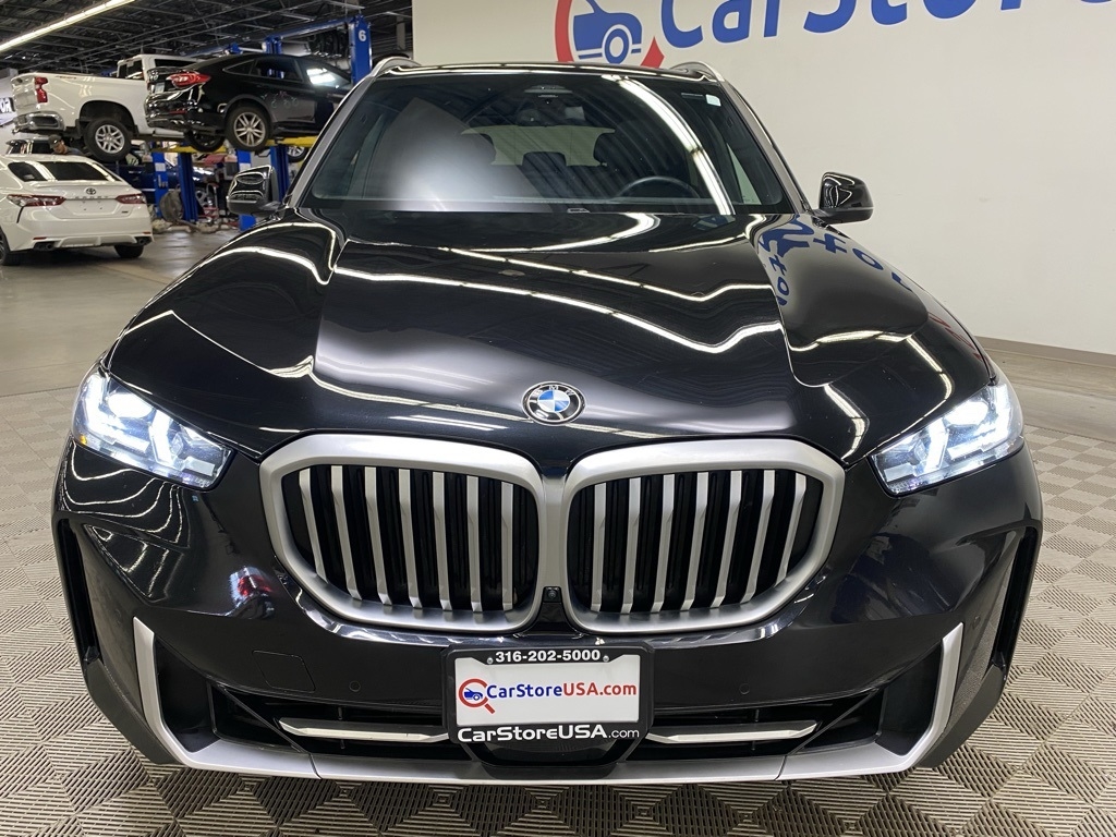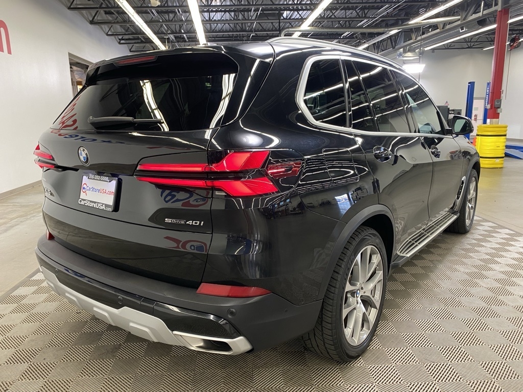 CARFAX One-Owner. THIS VEHICLE IS EQUIPPED WITH THE FOLLOWING FEATURES AND OPTIONS Connected Package Pro, 10 Speakers, 3.39 Axle Ratio, 4-Wheel Disc Brakes, ABS brakes, Air Conditioning, Alloy wheels, AM/FM radio: SiriusXM with 360L, AM/FM Stereo, Apple CarPlay & Android Auto Compatibility, Apple CarPlay Compatibility, Auto High-beam Headlights, Auto tilt-away steering wheel, Auto-dimming door mirrors, Auto-dimming Rear-View mirror, Automatic temperature control, BMW Assist eCall, BMW TeleServices, Brake assist, Bumpers: body-color, Compass, ConnectedDrive Services, Delay-off headlights, Driver door bin, Driver vanity mirror, Dual front impact airbags, Dual front side impact airbags, Electronic Stability Control, Emergency communication system: BMW Assist eCall, Exterior Parking Camera Rear, Four wheel independent suspension, Front anti-roll bar, Front Bucket Seats, Front Center Armrest, Front dual zone A/C, Front reading lights, Fully automatic headlights, Garage door transmitter, Genuine wood console insert, Genuine wood dashboard insert, Genuine wood door panel insert, Head restraints memory, Heated door mirrors, Heated Front Seats, Heated front seats, Hi-Fi Sound System, Illuminated entry, Knee airbag, Leather Shift Knob, Leather steering wheel, Low tire pressure warning, Lumbar Support, Memory seat, Navigation, Navigation System, Occupant sensing airbag, Outside temperature display, Overhead airbag, Panic alarm, Passenger door bin, Passenger vanity mirror, Personal eSIM 5G, Power adjustable front head restraints, Power door mirrors, Power driver seat, Power Front Seats, Power moonroof, Power passenger seat, Power steering, Power windows, Radio data system, Rain sensing wipers, Rear anti-roll bar, Rear reading lights, Rear seat center armrest, Rear window defroster, Rear window wiper, Remote keyless entry, Security system, Sensafin Upholstery, SiriusXM w/360L, Speed control, Speed-sensing steering, Speed-Sensitive Wipers, Split folding rear seat, Spoiler, Sport Seats, Sport steering wheel, Steering wheel mounted audio controls, Tachometer, Telescoping steering wheel, Tilt steering wheel, Traction control, Trip computer, Turn signal indicator mirrors, Variably intermittent wipers, Wheels: 20" x 9" V-Spoke (Style 738), and Wireless Device Charging. Clean CARFAX. Black 2024 BMW X5 sDrive40i RWD 8-Speed Automatic Sport 3.0L I6 DOHC 24V