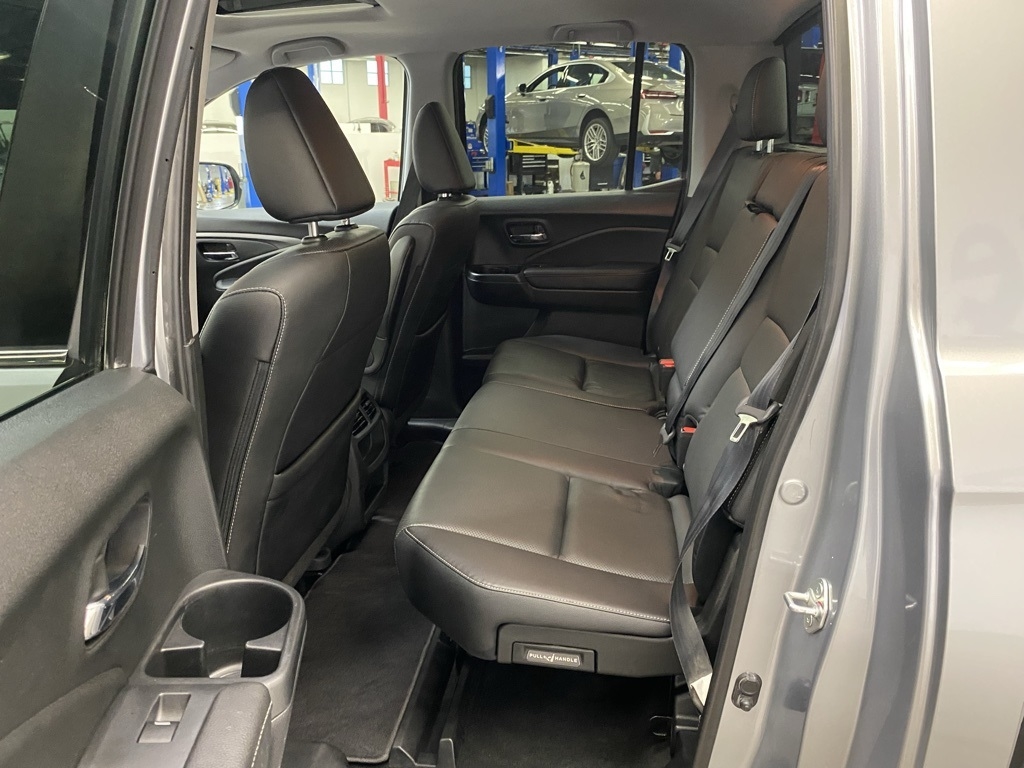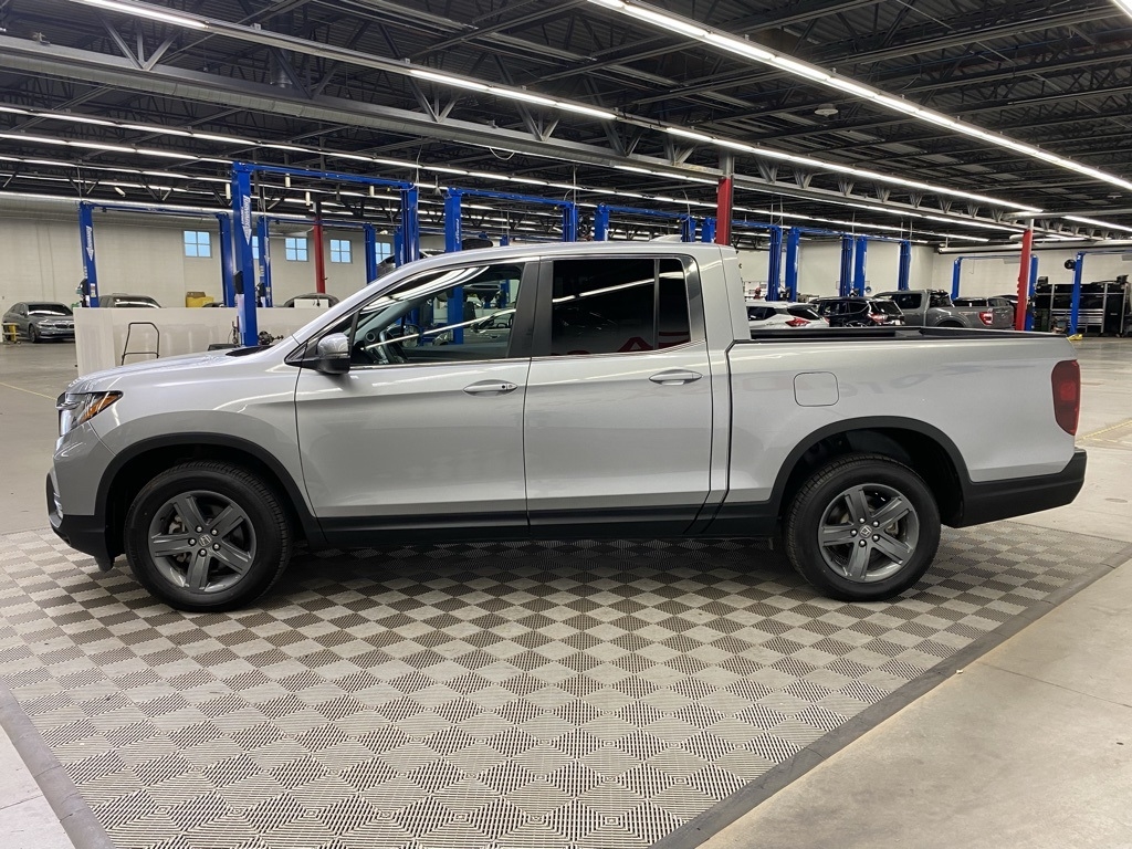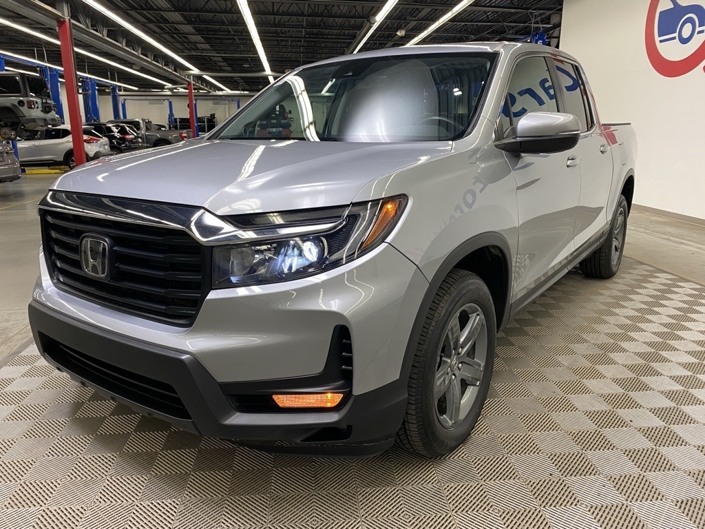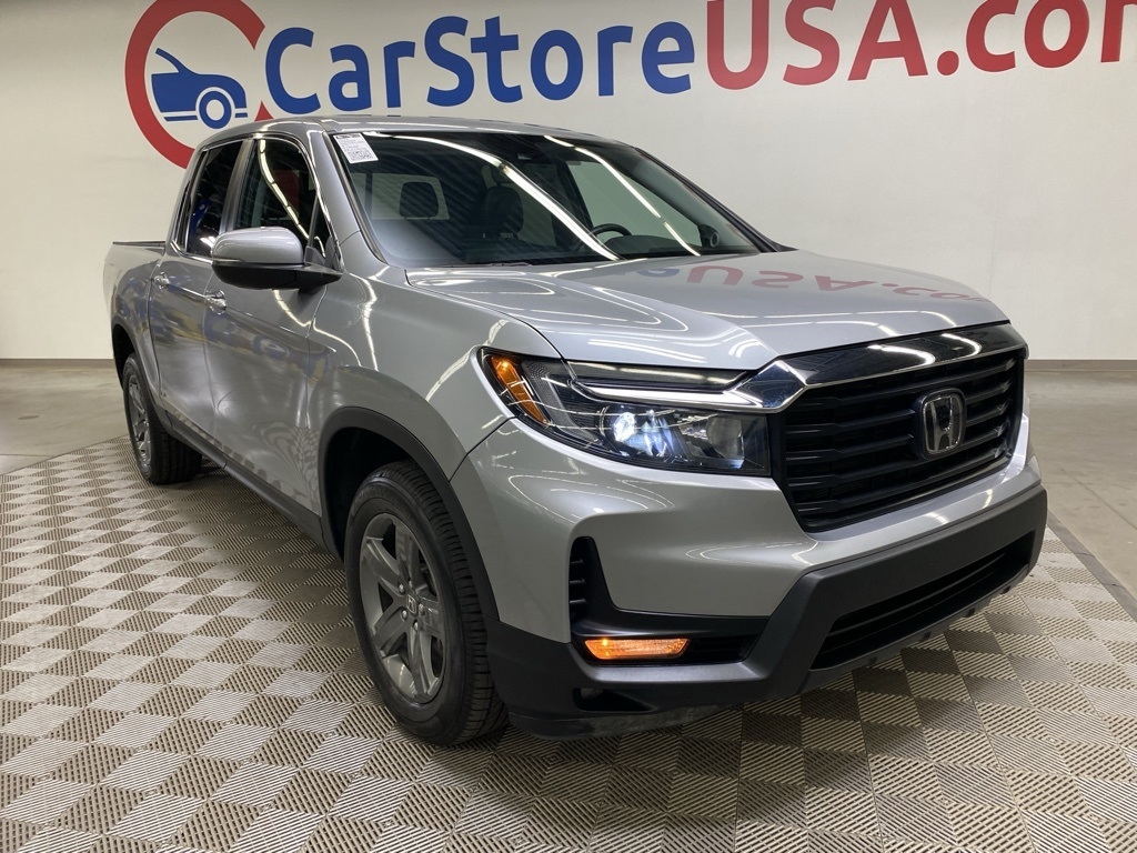 CARFAX One-Owner. THIS VEHICLE IS EQUIPPED WITH THE FOLLOWING FEATURES AND OPTIONS 4-Wheel Disc Brakes, 4.33 Axle Ratio, 7 Speakers, ABS brakes, Air Conditioning, Alloy wheels, AM/FM radio: SiriusXM, Apple CarPlay/Android Auto, Auto-dimming Rear-View mirror, Automatic temperature control, Blind Spot Information (BSI) System warning, Bluetooth® Hands-Free Link, Brake assist, Bumpers: body-color, Delay-off headlights, Driver door bin, Driver vanity mirror, Driver's Seat Mounted Armrest, Dual front impact airbags, Dual front side impact airbags, Electronic Stability Control, Exterior Parking Camera Rear, Four wheel independent suspension, Front anti-roll bar, Front Bucket Seats, Front dual zone A/C, Front fog lights, Front reading lights, Fully automatic headlights, Garage door transmitter: HomeLink, Heated door mirrors, Heated Front Bucket Seats, Heated front seats, Illuminated entry, Leather Seat Trim, Low tire pressure warning, Memory seat, Occupant sensing airbag, Outside temperature display, Overhead airbag, Overhead console, Panic alarm, Passenger door bin, Passenger seat mounted armrest, Passenger vanity mirror, Power door mirrors, Power driver seat, Power moonroof, Power passenger seat, Power steering, Power windows, Radio data system, Radio: 215-Watt Audio System w/7 Speakers, Rear air conditioning, Rear anti-roll bar, Rear reading lights, Rear seat center armrest, Rear step bumper, Rear window defroster, Remote keyless entry, Security system, SiriusXM, Speed control, Speed-sensing steering, Split folding rear seat, Steering wheel mounted audio controls, Tachometer, Telescoping steering wheel, Tilt steering wheel, Traction control, Trip computer, Turn signal indicator mirrors, Variably intermittent wipers, and Wheels: 18" Exclusive Pewter Gray Alloy. Silver 2023 Honda Ridgeline RTL AWD 9-Speed Automatic 3.5L V6 SOHC i-VTEC 24V