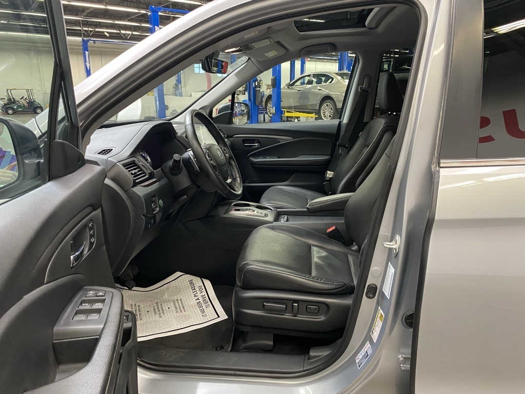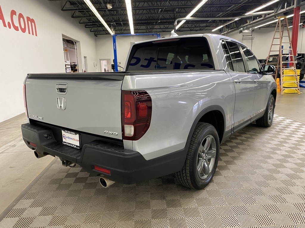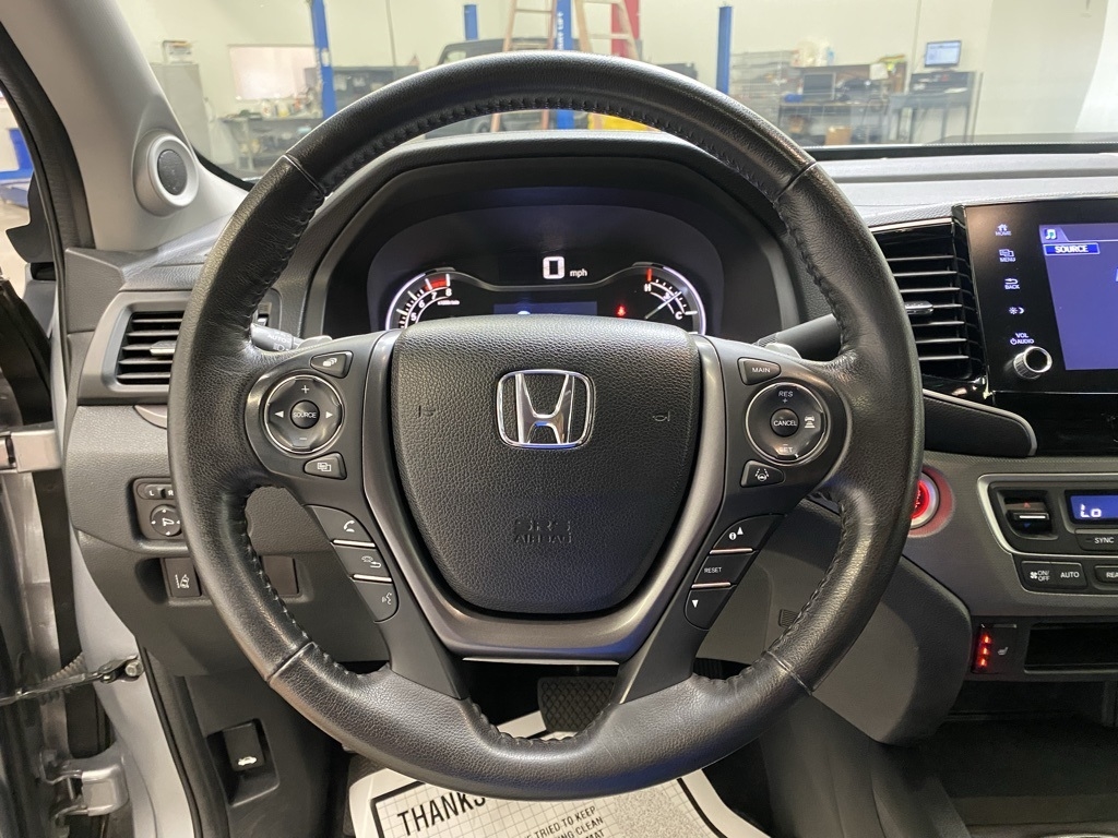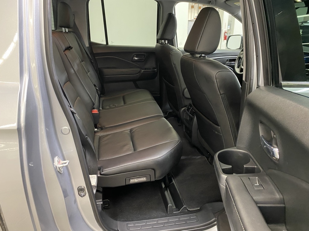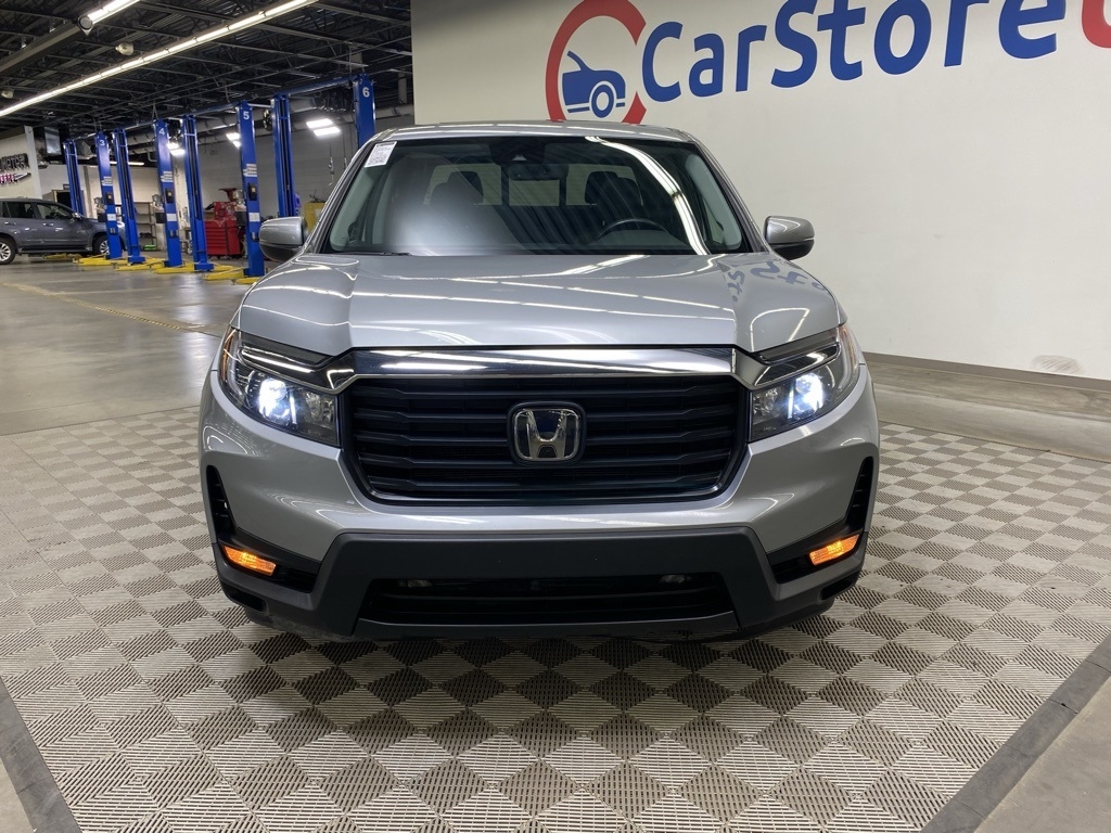 CARFAX One-Owner. THIS VEHICLE IS EQUIPPED WITH THE FOLLOWING FEATURES AND OPTIONS 4-Wheel Disc Brakes, 4.33 Axle Ratio, 7 Speakers, ABS brakes, Air Conditioning, Alloy wheels, AM/FM radio: SiriusXM, Apple CarPlay/Android Auto, Auto-dimming Rear-View mirror, Automatic temperature control, Blind Spot Information (BSI) System warning, Bluetooth® Hands-Free Link, Brake assist, Bumpers: body-color, Delay-off headlights, Driver door bin, Driver vanity mirror, Driver's Seat Mounted Armrest, Dual front impact airbags, Dual front side impact airbags, Electronic Stability Control, Exterior Parking Camera Rear, Four wheel independent suspension, Front anti-roll bar, Front Bucket Seats, Front dual zone A/C, Front fog lights, Front reading lights, Fully automatic headlights, Garage door transmitter: HomeLink, Heated door mirrors, Heated Front Bucket Seats, Heated front seats, Illuminated entry, Leather Seat Trim, Low tire pressure warning, Memory seat, Occupant sensing airbag, Outside temperature display, Overhead airbag, Overhead console, Panic alarm, Passenger door bin, Passenger seat mounted armrest, Passenger vanity mirror, Power door mirrors, Power driver seat, Power moonroof, Power passenger seat, Power steering, Power windows, Radio data system, Radio: 215-Watt Audio System w/7 Speakers, Rear air conditioning, Rear anti-roll bar, Rear reading lights, Rear seat center armrest, Rear step bumper, Rear window defroster, Remote keyless entry, Security system, SiriusXM, Speed control, Speed-sensing steering, Split folding rear seat, Steering wheel mounted audio controls, Tachometer, Telescoping steering wheel, Tilt steering wheel, Traction control, Trip computer, Turn signal indicator mirrors, Variably intermittent wipers, and Wheels: 18" Exclusive Pewter Gray Alloy. Silver 2023 Honda Ridgeline RTL AWD 9-Speed Automatic 3.5L V6 SOHC i-VTEC 24V