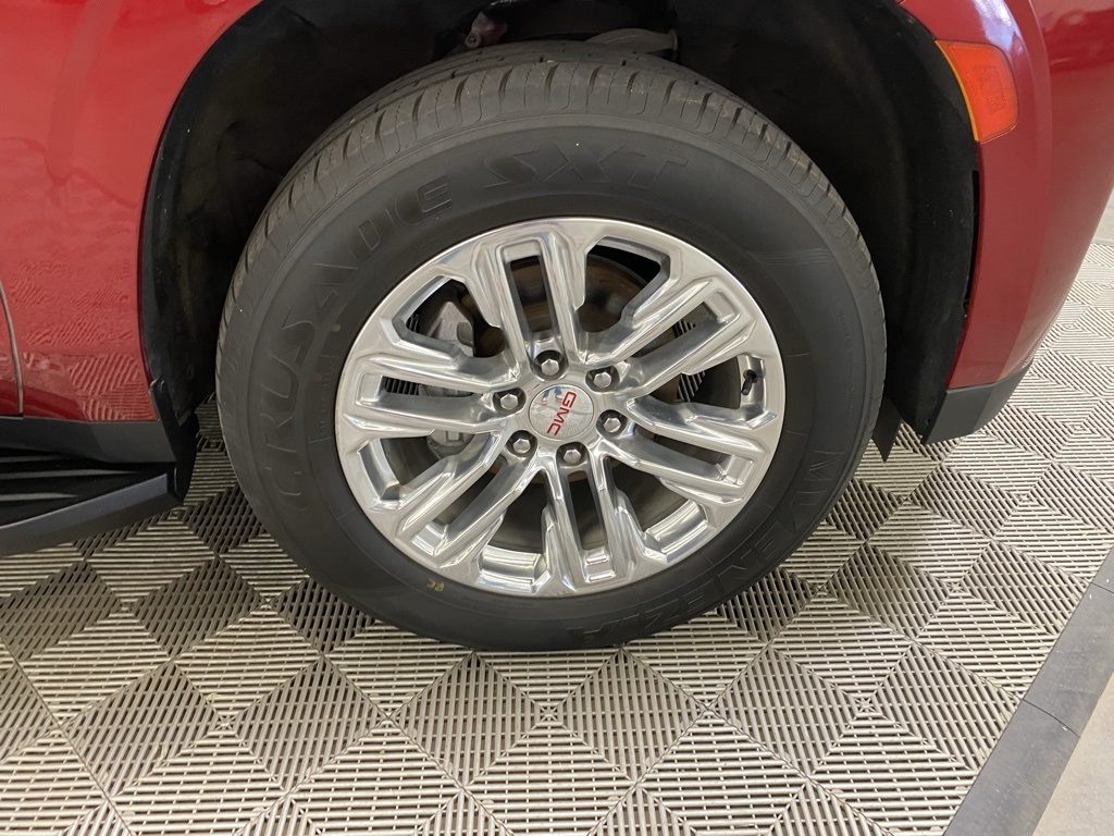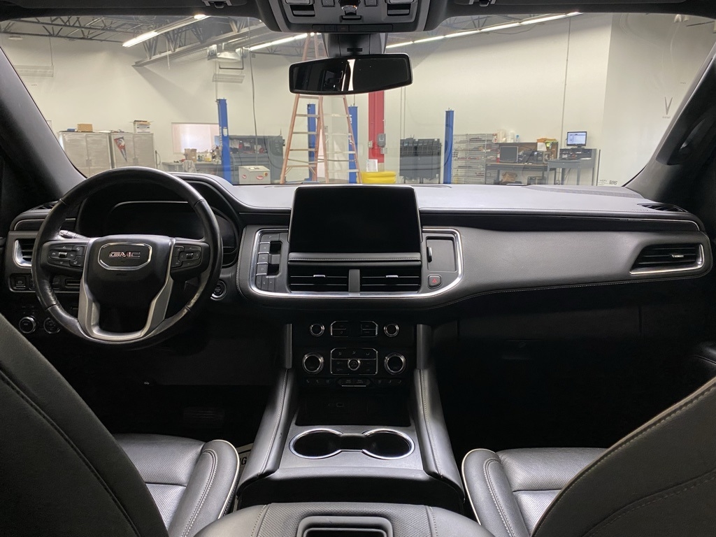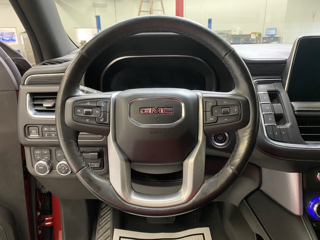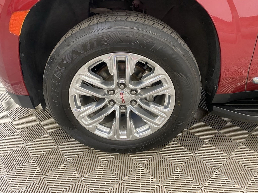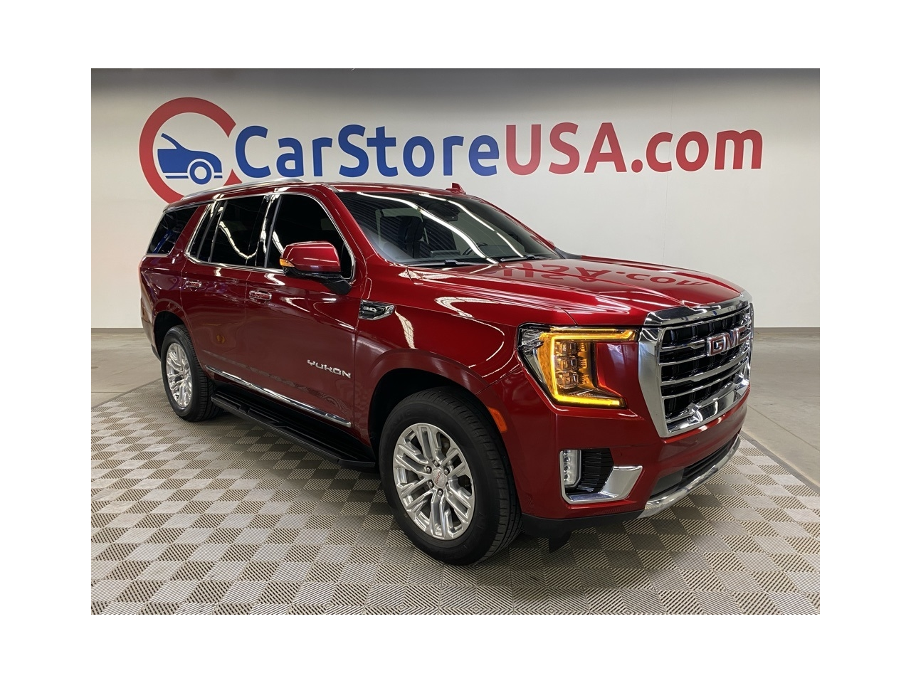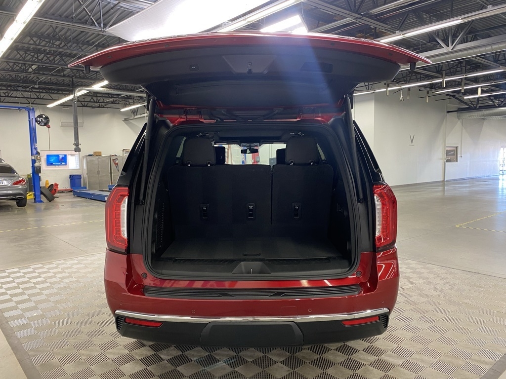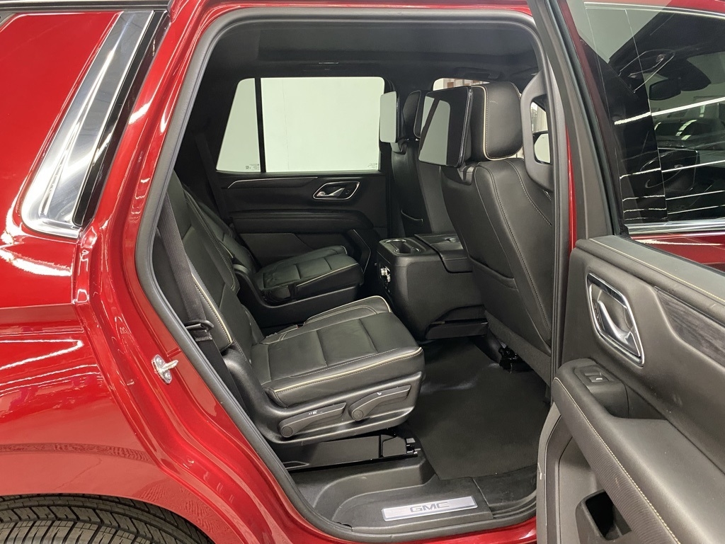 CARFAX One-Owner. THIS VEHICLE IS EQUIPPED WITH THE FOLLOWING FEATURES AND OPTIONS Max Trailering Package, Preferred Equipment Group 4SA (2 Presets For Power Driver Seat, Automatic Stop/Start, Bose 9-Speaker Stereo Audio System Feature, Bright Chrome Bodyside Moldings, Bright Front & Rear Door Sill Plates, Chrome Door Handles w/Body-Color Strip, Hands-Free Power Programmable Rear Liftgate, Heated & Ventilated Driver & Front Passenger Seats, Heated Driver & Front Passenger Seats, Inside Rear-View Auto-Dimming Mirror, Safety Alert Seat, Start/Stop System Disable Button, Universal Home Remote, and Wireless Charging), SLT Luxury Package (2 Presets For Outside Rearview Mirrors, 3rd Row 60/40 Power-Folding Split-Bench Seat, HD Surround Vision, Heated 2nd Row Outboard Position Seats, Heated Steering Wheel, Outside Heated Power-Adjustable Mirrors, Power Release 2nd Row 60/40 Split-Folding Bench Seat, Power Tilt & Telescopic Steering Column, and Rear Pedestrian Alert), SLT Premium Package (Dual-Pane Panoramic Power Sunroof), 3.23 Rear Axle Ratio, 3rd row seats: split-bench, 4-Wheel Disc Brakes, 9 Speakers, ABS brakes, Air Conditioning, Alloy wheels, AM/FM radio: SiriusXM with 360L, AM/FM Stereo, Apple CarPlay/Android Auto, Auto High-beam Headlights, Auto-dimming Rear-View mirror, Automatic Emergency Braking, Automatic temperature control, Bodyside moldings, Brake assist, Bumpers: body-color, Compass, Delay-off headlights, Driver door bin, Driver vanity mirror, Dual front impact airbags, Dual front side impact airbags, Electronic Stability Control, Emergency communication system: OnStar and GMC Connected Services capable, Extra Capacity Cooling System, Floor Console, Following Distance Indicator, Forward Collision Alert, Four wheel independent suspension, Front & Rear Park Assist, Front anti-roll bar, Front Bucket Seats, Front Center Armrest, Front dual zone A/C, Front fog lights, Front Pedestrian Braking, Front reading lights, Fully automatic headlights, Garage door transmitter, Heated door mirrors, Heated front seats, Hitch Guidance w/Hitch View, Illuminated entry, Integrated Trailer Brake Controller, IntelliBeam Automatic High Beam On/Off, Lane Change Alert w/Side Blind Zone Alert, Lane Keep Assist w/Lane Departure Warning, Leather steering wheel, Low tire pressure warning, Memory seat, Navigation System, Not Equipped w/4-Way Driver & Fr Pass Pwr Lumbar, Not Equipped w/Steering Column Lock, Occupant sensing airbag, Outside temperature display, Overhead airbag, Overhead console, Panic alarm, Passenger door bin, Passenger vanity mirror, Perforated Leather-Appointed Seating, Power door mirrors, Power driver seat, Power Liftgate, Power passenger seat, Power Release 2nd Row Bucket Seats, Power steering, Power windows, Premium Smooth Ride Suspension, Rain sensing wipers, Rear air conditioning, Rear anti-roll bar, Rear Cross Traffic Alert, Rear reading lights, Rear seat center armrest, Rear Seat Media System (DISC), Rear window defroster, Rear window wiper, Remote keyless entry, Roof rack: rails only, Security system, SiriusXM w/360L, Smart Trailer Integration Indicator, Speed control, Speed-sensing steering, Split folding rear seat, Spoiler, Steering wheel mounted audio controls, Tachometer, Telescoping steering wheel, Tilt steering wheel, Traction control, Trailer Side Blind Zone Alert, Trip computer, Variably intermittent wipers, Ventilated front seats, Voltmeter, and Wheels: 20" x 9" 6-Spoke Polished Aluminum. Clean CARFAX. Cayenne Red Tintcoat 2022 GMC Yukon SLT 4WD 10-Speed Automatic with Overdrive EcoTec3 5.3L V8