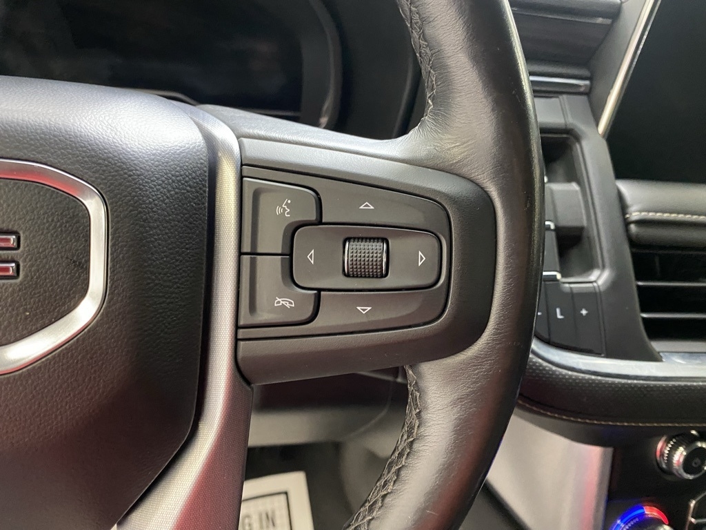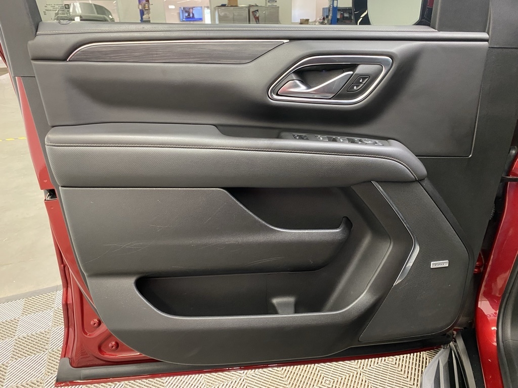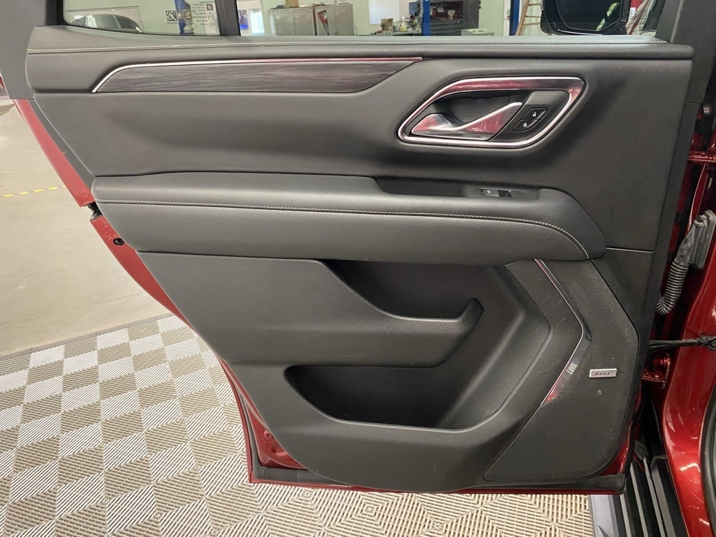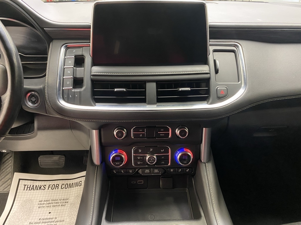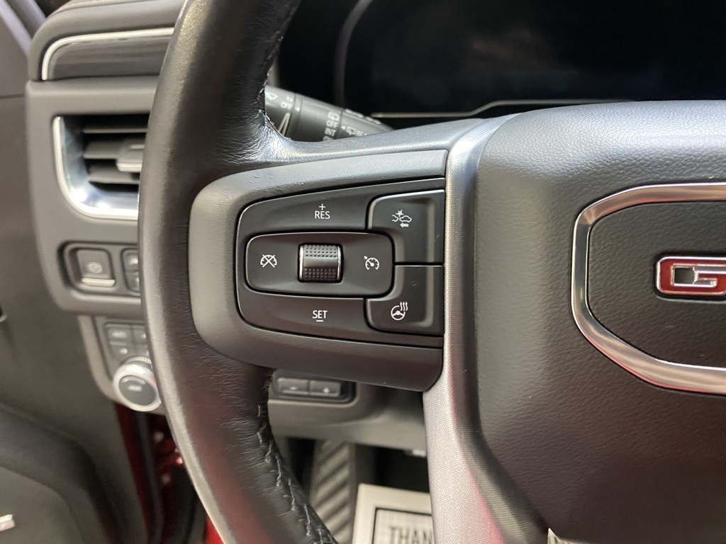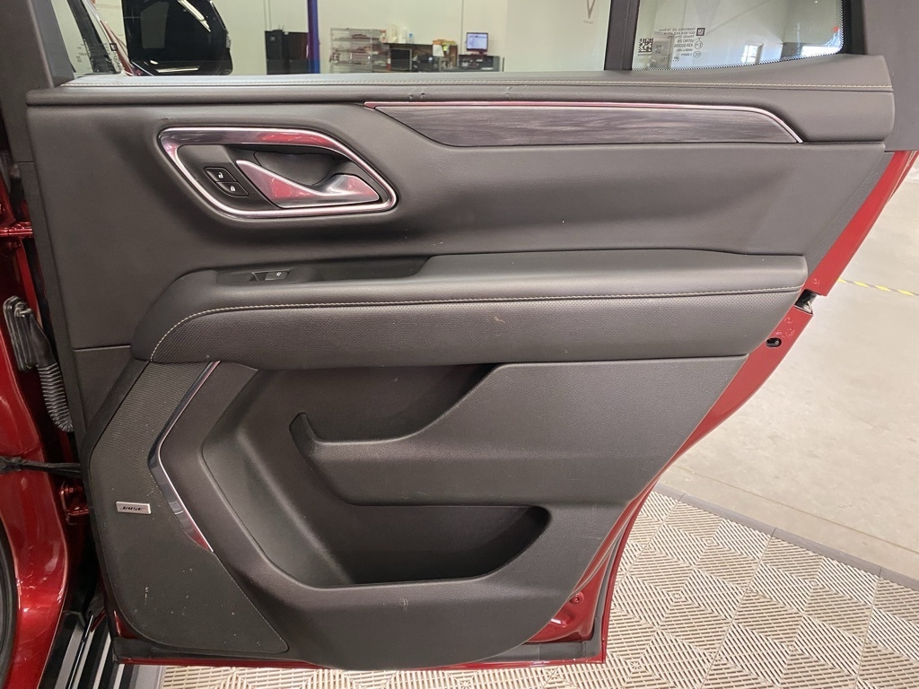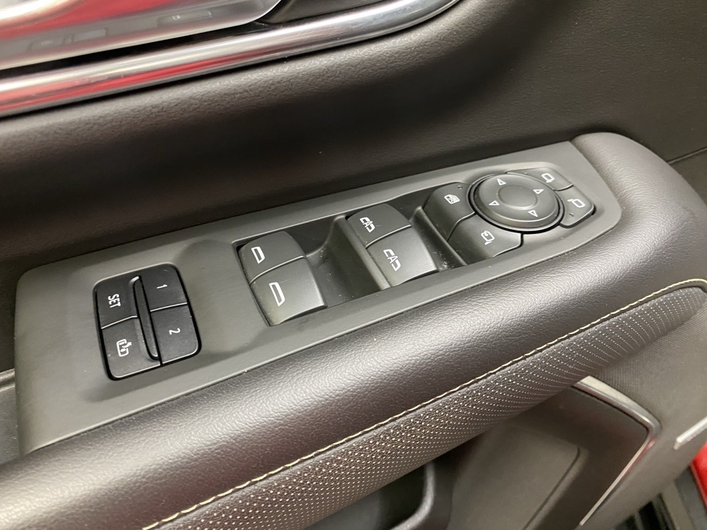 CARFAX One-Owner. THIS VEHICLE IS EQUIPPED WITH THE FOLLOWING FEATURES AND OPTIONS Max Trailering Package, Preferred Equipment Group 4SA (2 Presets For Power Driver Seat, Automatic Stop/Start, Bose 9-Speaker Stereo Audio System Feature, Bright Chrome Bodyside Moldings, Bright Front & Rear Door Sill Plates, Chrome Door Handles w/Body-Color Strip, Hands-Free Power Programmable Rear Liftgate, Heated & Ventilated Driver & Front Passenger Seats, Heated Driver & Front Passenger Seats, Inside Rear-View Auto-Dimming Mirror, Safety Alert Seat, Start/Stop System Disable Button, Universal Home Remote, and Wireless Charging), SLT Luxury Package (2 Presets For Outside Rearview Mirrors, 3rd Row 60/40 Power-Folding Split-Bench Seat, HD Surround Vision, Heated 2nd Row Outboard Position Seats, Heated Steering Wheel, Outside Heated Power-Adjustable Mirrors, Power Release 2nd Row 60/40 Split-Folding Bench Seat, Power Tilt & Telescopic Steering Column, and Rear Pedestrian Alert), SLT Premium Package (Dual-Pane Panoramic Power Sunroof), 3.23 Rear Axle Ratio, 3rd row seats: split-bench, 4-Wheel Disc Brakes, 9 Speakers, ABS brakes, Air Conditioning, Alloy wheels, AM/FM radio: SiriusXM with 360L, AM/FM Stereo, Apple CarPlay/Android Auto, Auto High-beam Headlights, Auto-dimming Rear-View mirror, Automatic Emergency Braking, Automatic temperature control, Bodyside moldings, Brake assist, Bumpers: body-color, Compass, Delay-off headlights, Driver door bin, Driver vanity mirror, Dual front impact airbags, Dual front side impact airbags, Electronic Stability Control, Emergency communication system: OnStar and GMC Connected Services capable, Extra Capacity Cooling System, Floor Console, Following Distance Indicator, Forward Collision Alert, Four wheel independent suspension, Front & Rear Park Assist, Front anti-roll bar, Front Bucket Seats, Front Center Armrest, Front dual zone A/C, Front fog lights, Front Pedestrian Braking, Front reading lights, Fully automatic headlights, Garage door transmitter, Heated door mirrors, Heated front seats, Hitch Guidance w/Hitch View, Illuminated entry, Integrated Trailer Brake Controller, IntelliBeam Automatic High Beam On/Off, Lane Change Alert w/Side Blind Zone Alert, Lane Keep Assist w/Lane Departure Warning, Leather steering wheel, Low tire pressure warning, Memory seat, Navigation System, Not Equipped w/4-Way Driver & Fr Pass Pwr Lumbar, Not Equipped w/Steering Column Lock, Occupant sensing airbag, Outside temperature display, Overhead airbag, Overhead console, Panic alarm, Passenger door bin, Passenger vanity mirror, Perforated Leather-Appointed Seating, Power door mirrors, Power driver seat, Power Liftgate, Power passenger seat, Power Release 2nd Row Bucket Seats, Power steering, Power windows, Premium Smooth Ride Suspension, Rain sensing wipers, Rear air conditioning, Rear anti-roll bar, Rear Cross Traffic Alert, Rear reading lights, Rear seat center armrest, Rear Seat Media System (DISC), Rear window defroster, Rear window wiper, Remote keyless entry, Roof rack: rails only, Security system, SiriusXM w/360L, Smart Trailer Integration Indicator, Speed control, Speed-sensing steering, Split folding rear seat, Spoiler, Steering wheel mounted audio controls, Tachometer, Telescoping steering wheel, Tilt steering wheel, Traction control, Trailer Side Blind Zone Alert, Trip computer, Variably intermittent wipers, Ventilated front seats, Voltmeter, and Wheels: 20" x 9" 6-Spoke Polished Aluminum. Clean CARFAX. Cayenne Red Tintcoat 2022 GMC Yukon SLT 4WD 10-Speed Automatic with Overdrive EcoTec3 5.3L V8
