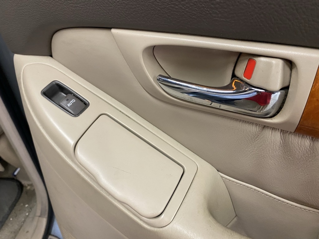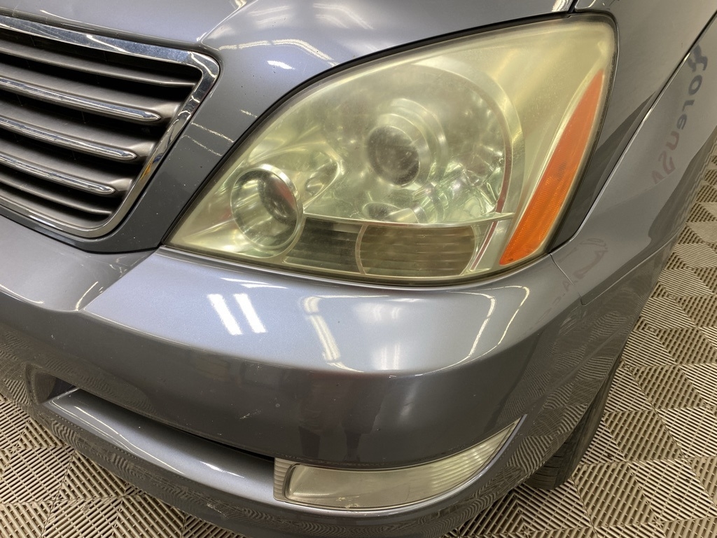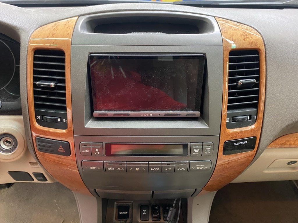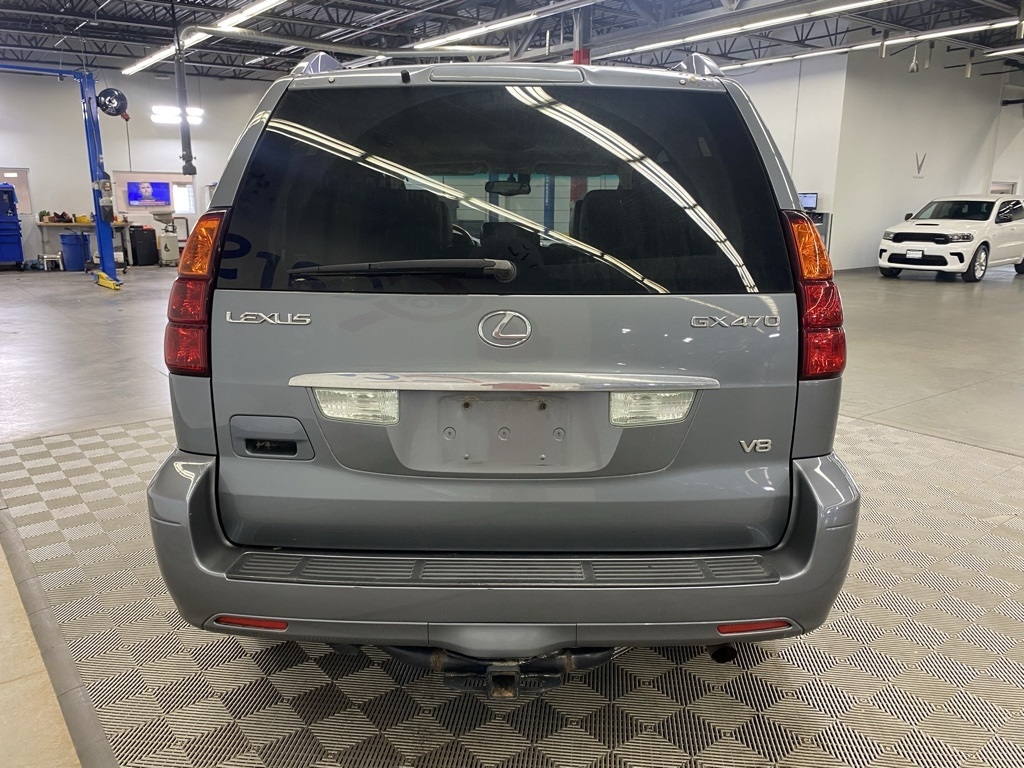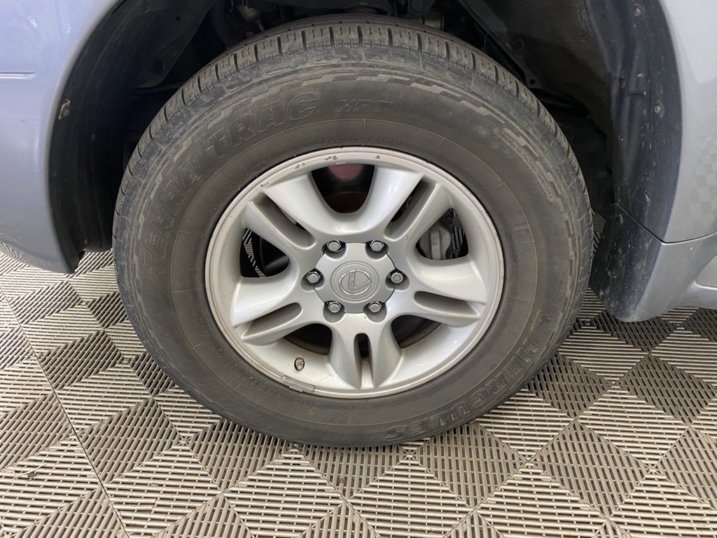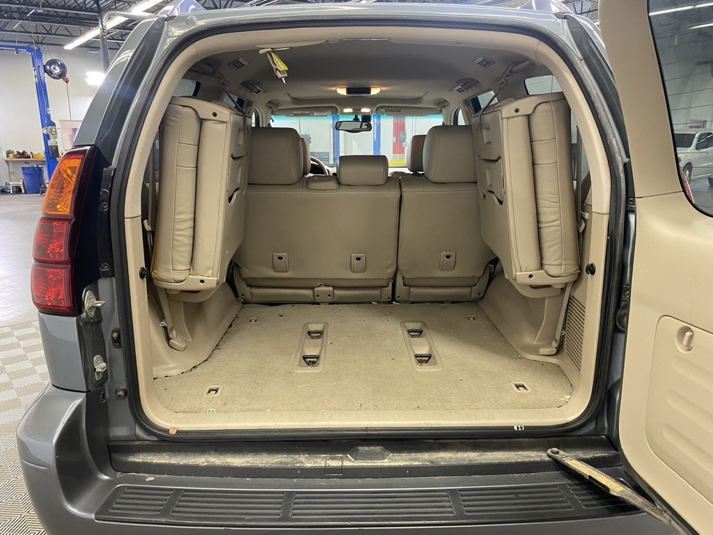 THIS VEHICLE IS EQUIPPED WITH THE FOLLOWING FEATURES AND OPTIONS 11 Speakers, 17" x 7.5" JJ Aluminum Alloy Wheels, 3.727 Axle Ratio, 4-Wheel Disc Brakes, ABS brakes, Adaptive suspension, Air Conditioning, Alloy wheels, AM/FM radio, Auto tilt-away steering wheel, Auto-dimming Rear-View mirror, Auto-leveling suspension, Automatic temperature control, Brake assist, Bumpers: body-color, Cassette, CD player, Compass, Delay-off headlights, Driver door bin, Driver vanity mirror, Driver's Seat Mounted Armrest, Dual front impact airbags, Dual front side impact airbags, Electronic Stability Control, Front anti-roll bar, Front Bucket Seats, Front dual zone A/C, Front fog lights, Front reading lights, Front wheel independent suspension, Fully automatic headlights, Garage door transmitter: HomeLink, Genuine wood console insert, Genuine wood dashboard insert, Genuine wood door panel insert, Heated door mirrors, Heated Front Bucket Seats, Heated front seats, Illuminated entry, Illuminated running boards, Leather Seat Trim, Leather Shift Knob, Leather steering wheel, Low tire pressure warning, Memory seat, Outside temperature display, Overhead airbag, Overhead console, Panic alarm, Passenger door bin, Passenger seat mounted armrest, Passenger vanity mirror, Power door mirrors, Power driver seat, Power moonroof, Power passenger seat, Power steering, Power windows, Premium ETR AM/FM Stereo w/6-Disc CD, Rain sensing wipers, Rear anti-roll bar, Rear audio controls, Rear seat center armrest, Rear window defroster, Rear window wiper, Remote keyless entry, Roof rack, Security system, Speed control, Speed-sensing steering, Split folding rear seat, Steering wheel memory, Steering wheel mounted audio controls, Tachometer, Telescoping steering wheel, Tilt steering wheel, Traction control, Trip computer, and Variably intermittent wipers. Silver 2004 Lexus GX 470 4WD 5-Speed Automatic with Overdrive 4.7L V8 SMPI DOHC