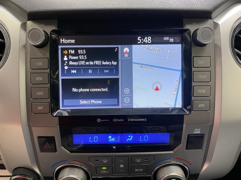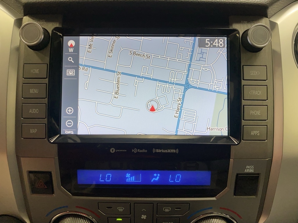 CARFAX One-Owner. THIS VEHICLE IS EQUIPPED WITH THE FOLLOWING FEATURES AND OPTIONS 4-Wheel Disc Brakes, 4.30 Axle Ratio, 9 Speakers, ABS brakes, Air Conditioning, Alloy wheels, AM/FM radio: SiriusXM, Apple CarPlay/Android Auto, Auto High-beam Headlights, Auto-dimming Rear-View mirror, Automatic temperature control, Brake assist, Compass, Delay-off headlights, Driver door bin, Driver vanity mirror, Dual front impact airbags, Dual front side impact airbags, Electronic Stability Control, Emergency communication system: Safety Connect with 1-year trial, Exterior Parking Camera Rear, Front anti-roll bar, Front Bucket Seats, Front Center Armrest, Front dual zone A/C, Front fog lights, Front reading lights, Front wheel independent suspension, Fully automatic headlights, Garage door transmitter: HomeLink, Heated door mirrors, Heated Front Bucket Seats, Heated front seats, Illuminated entry, Knee airbag, Leather Seat Trim (LB), Low tire pressure warning, Navigation system: Dynamic Navigation (3-year trial), Occupant sensing airbag, Outside temperature display, Overhead airbag, Overhead console, Panic alarm, Passenger door bin, Passenger vanity mirror, Power door mirrors, Power driver seat, Power passenger seat, Power steering, Power windows, Radio data system, Radio: Premium Audio w/Dynamic Navigation, Rear reading lights, Rear seat center armrest, Rear step bumper, Rear window defroster, Remote Connect, Remote keyless entry, Safety Connect, Security system, Service Connect, SiriusXM Radio, Speed control, Speed-sensing steering, Split folding rear seat, Steering wheel mounted audio controls, Tachometer, Telescoping steering wheel, Tilt steering wheel, Traction control, Trip computer, Variably intermittent wipers, Voltmeter, and Wheels: 20" Split 5-Spoke Machined Alloy. Clean CARFAX. Silver 2021 Toyota Tundra Limited 4WD 6-Speed Automatic Electronic i-Force 5.7L V8 DOHC 32V LEV