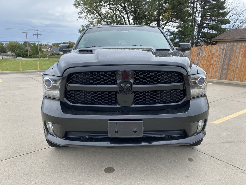 CARFAX One-Owner. THIS VEHICLE IS EQUIPPED WITH THE FOLLOWING FEATURES AND OPTIONS Heated Seats & Wheel Group, ABS brakes, Alloy wheels, Compass, Electronic Stability Control, Front dual zone A/C, Heated door mirrors, Heated Front Seats, Heated front seats, Illuminated entry, Low tire pressure warning, ParkView Rear Back-Up Camera, Remote keyless entry, Traction control, 115V Auxiliary Power Outlet, 20" x 9" Polished Aluminum Wheels, 3.21 Rear Axle Ratio, 4-Wheel Disc Brakes, 6 Speakers, 8.4" Touchscreen Display, Active Grille Shutters, Adjustable pedals, Air Conditioning, AM/FM radio, Audio Jack Input for Mobile Devices, Auto-dimming door mirrors, Auto-dimming Rear-View mirror, Automatic temperature control, Brake assist, Bright Rotary Shifter, Bucket Seats, Bumpers: body-color, Center Hub, Cloth Bucket Seats, Delay-off headlights, Driver door bin, Driver vanity mirror, Dual front impact airbags, Dual front side impact airbags, Electronic Shift, Electronically Controlled Throttle, Emergency communication system: Uconnect Access, Folding Flat Load Floor Storage, Front anti-roll bar, Front Bucket Seats, Front Center Armrest w/Storage, Front fog lights, Front reading lights, Front wheel independent suspension, Full Length Upgraded Floor Console, Fully automatic headlights, Garage door transmitter, GPS Antenna Input, Heated Steering Wheel, Heated steering wheel, Heavy-Duty Engine Cooling, High Back Seats, Integrated Voice Command w/Bluetooth, Leather steering wheel, Media Hub (USB, AUX), Next Generation Engine Controller, Occupant sensing airbag, Outside temperature display, Overhead airbag, Overhead console, Panic alarm, Passenger door bin, Passenger vanity mirror, Power door mirrors, Power driver seat, Power Lumbar Adjust, Power steering, Power windows, Radio data system, Radio: Uconnect 3C w/8.4" Display, Rear 60/40 Split Folding Seat, Rear anti-roll bar, Rear seat center armrest, Rear step bumper, Remote USB Port, SIRIUSXM Satellite Radio, Speed control, Split folding rear seat, Steering wheel mounted audio controls, Tachometer, Tilt steering wheel, Tip Start, Trip computer, Turn signal indicator mirrors, Uconnect Access, Variably intermittent wipers, and Voltmeter. Clean CARFAX. Brilliant Black Crystal Pearlcoat 2017 Ram 1500 Sport ABS brakes, Alloy wheels, Compass, Electronic Stability Control, Front dual zone A/C, Heated door mirrors, Heated Front Seats, Heated front seats, Illuminated entry, Low tire pressure warning, ParkView Rear Back-Up Camera, Remote keyless entry, Traction control. Night Edition 4WD 8-Speed Automatic HEMI 5.7L V8 Multi Displacement VVT
