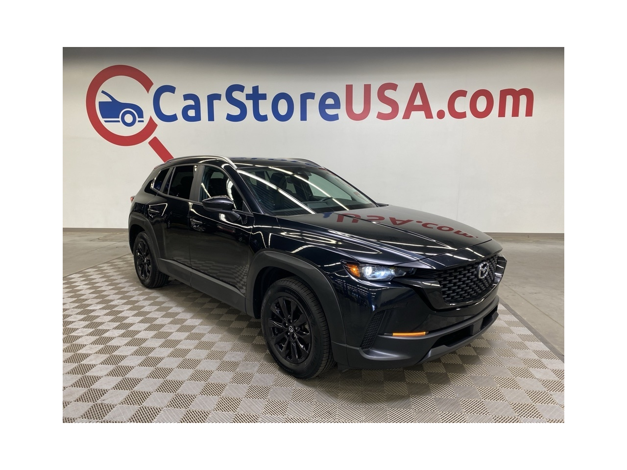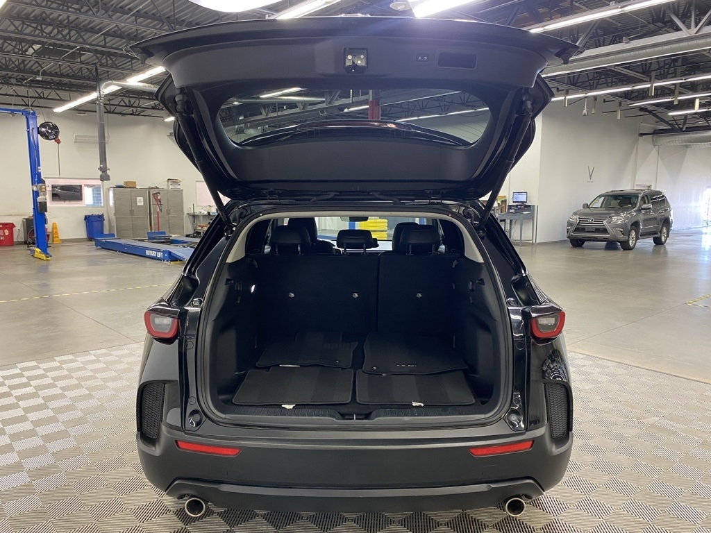 CARFAX One-Owner. THIS VEHICLE IS EQUIPPED WITH THE FOLLOWING FEATURES AND OPTIONS 4-Wheel Disc Brakes, 4.367 Axle Ratio, 8 Speakers, ABS brakes, Air Conditioning, Alloy wheels, AM/FM radio, AppLink/Apple CarPlay and Android Auto, Auto High-beam Headlights, Automatic temperature control, Brake assist, Bumpers: body-color, Delay-off headlights, Driver door bin, Driver vanity mirror, Dual front impact airbags, Dual front side impact airbags, Electronic Stability Control, Emergency communication system: MAZDA CONNECT, Exterior Parking Camera Rear, Front anti-roll bar, Front Bucket Seats, Front Center Armrest, Front dual zone A/C, Front reading lights, Front wheel independent suspension, Fully automatic headlights, Half Leatherette Seat Trim, Heated door mirrors, Heated Front Bucket Seats, Heated front seats, Illuminated entry, Knee airbag, Leather Shift Knob, Leather steering wheel, Low tire pressure warning, Occupant sensing airbag, Outside temperature display, Overhead airbag, Overhead console, Panic alarm, Passenger door bin, Passenger vanity mirror, Power door mirrors, Power driver seat, Power Liftgate, Power steering, Power windows, Radio data system, Radio: AM/FM/HD Audio System, Rain sensing wipers, Rear seat center armrest, Rear window defroster, Rear window wiper, Remote keyless entry, Speed control, Speed-sensing steering, Split folding rear seat, Spoiler, Steering wheel mounted audio controls, Tachometer, Telescoping steering wheel, Tilt steering wheel, Traction control, Trip computer, Turn signal indicator mirrors, Variably intermittent wipers, and Wheels: 17" x 7J Aluminum Alloy. Clean CARFAX. Jet Black 2024 Mazda CX-50 2.5 S Preferred Package AWD 6-Speed Automatic SKYACTIV® 2.5L 4-Cylinder DOHC 16V