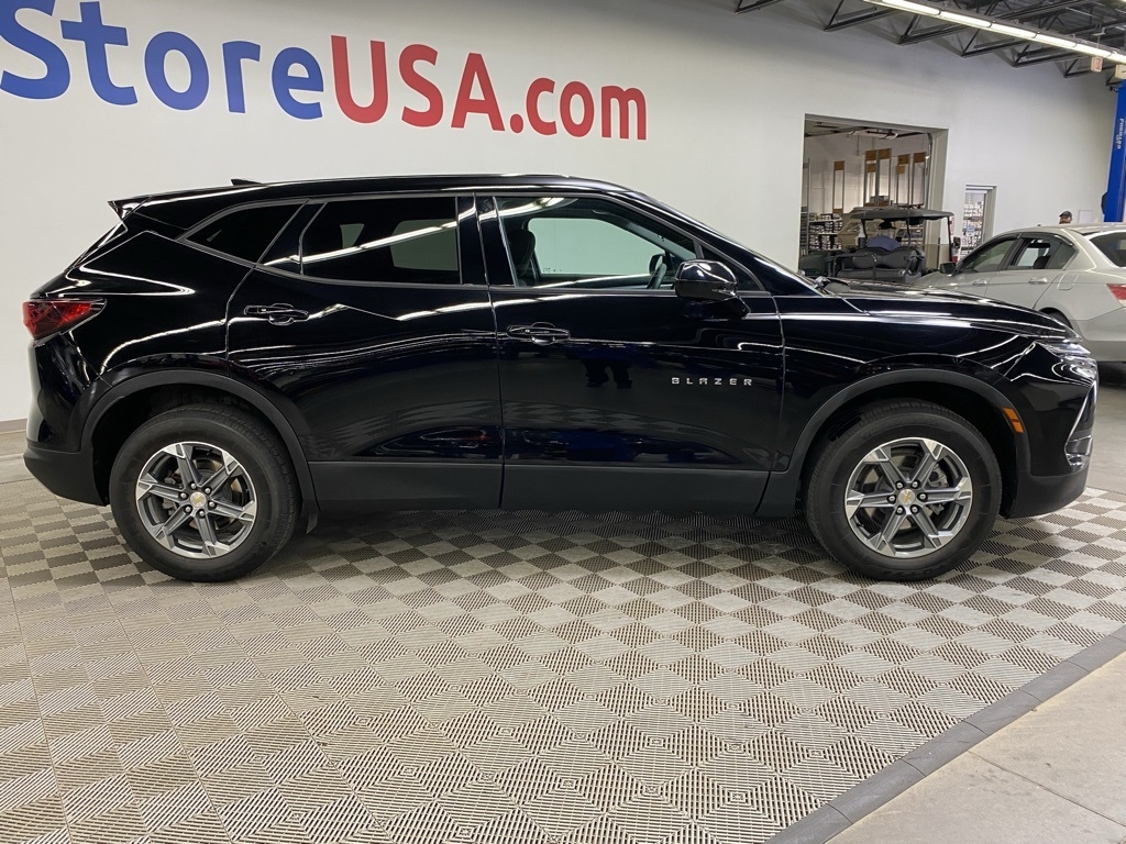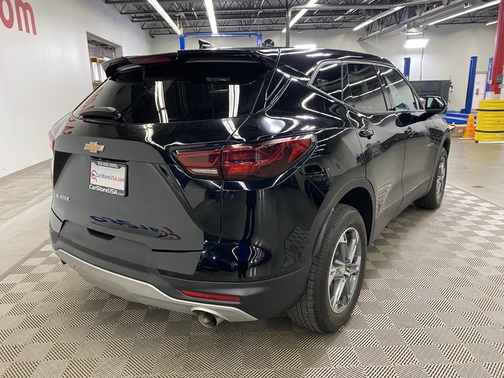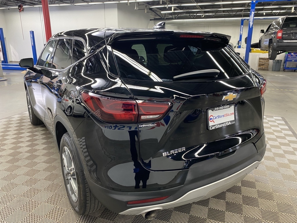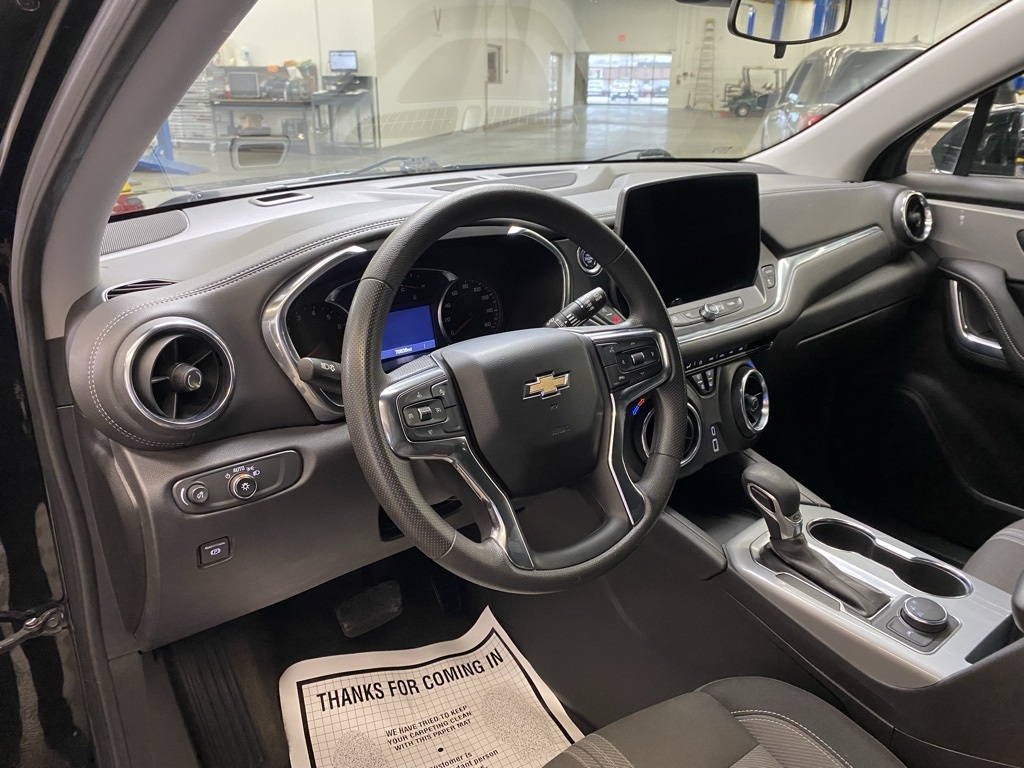 CARFAX One-Owner. THIS VEHICLE IS EQUIPPED WITH THE FOLLOWING FEATURES AND OPTIONS Preferred Equipment Group 2LT, 170 Amp Alternator, 3.47 Final Drive Axle Ratio, 4-Way Manual Front Passenger Seat Adjuster, 4-Wheel Disc Brakes, 6 Speakers, 6-Speaker Audio System Feature, 8-Way Power Driver Seat Adjuster, ABS brakes, Air Conditioning, Alloy wheels, AM/FM radio: SiriusXM with 360L, Apple CarPlay/Android Auto, Auto High-beam Headlights, Automatic temperature control, Brake assist, Bumpers: body-color, Child-Seat-Sensing Airbag, Compass, Delay-off headlights, Deleted 3 Years of Remote Access, Driver door bin, Driver vanity mirror, Dual front impact airbags, Dual front side impact airbags, Electronic Stability Control, Emergency communication system: OnStar and Chevrolet connected services capable, Four wheel independent suspension, Front anti-roll bar, Front Bucket Seats, Front Center Armrest, Front dual zone A/C, Front reading lights, Fully automatic headlights, Heated door mirrors, Illuminated entry, Knee airbag, Leather Shift Knob, Low tire pressure warning, Occupant sensing airbag, Outside temperature display, Overhead airbag, Overhead console, Panic alarm, Passenger door bin, Passenger vanity mirror, Power door mirrors, Power Driver Lumbar Control, Power driver seat, Power steering, Power windows, Premium audio system: Chevrolet Infotainment 3 Plus, Premium Cloth Seat Trim, Radio data system, Radio: Chevrolet Infotainment 3 Plus System, Rear anti-roll bar, Rear reading lights, Rear seat center armrest, Rear window defroster, Rear window wiper, Remote keyless entry, Ride & Handling Suspension, Security system, SiriusXM w/360L, Speed control, Speed-sensing steering, Split folding rear seat, Spoiler, Steering wheel mounted audio controls, Tachometer, Telescoping steering wheel, Tilt steering wheel, Traction control, Trip computer, Variably intermittent wipers, Voltmeter, and Wheels: 18" Grazen Metallic Aluminum. Clean CARFAX. Black 2023 Chevrolet Blazer LT FWD 9-Speed Automatic with Overdrive 2.0L Turbocharged