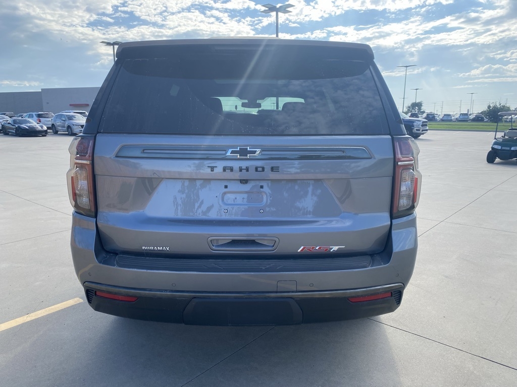 THIS VEHICLE IS EQUIPPED WITH THE FOLLOWING FEATURES AND OPTIONS Advanced Trailering Package (Hitch Guidance w/Hitch View, Integrated Trailer Brake Controller, and Smart Trailer Integration Indicator), Driver Alert Package (Lane Change Alert w/Side Blind Zone Alert and Rear Cross Traffic Alert), License Plate Front Mounting Package, Luxury Package (2nd Row Pwr Release 60/40 Split-Folding Bench Seat, 3rd Row 60/40 Power-Folding Split-Bench Seat, HD Surround Vision, Heated 2nd Row Outboard Seats, Heated Steering Wheel, Memory Settings, Outside Heated Power-Adjustable Mirrors, Power Tilt & Telescopic Steering Column, and Rear Pedestrian Alert), Max Trailering Package (2-Speed Active Electronic AutoTrac Transfer Case and Extra Capacity Cooling System), Preferred Equipment Group 1SP (1st & 2nd Row Color-Keyed Carpeted Floor Mats, Auto-Dimming Inside Rear-View Mirror, Automatic Stop/Start, Bose 9-Speaker Stereo Audio System Feature, Bright Front & Rear Door Sill Plates, Color-Keyed Carpeting Floor Covering, Driver & Front Outboard Passenger Airbags, Enhanced Driver Information Center, Floor Console w/Storage Area, Hands-Free Rear Power Programmable Liftgate, Infotainment Display, Leather-Wrapped Steering Wheel, LED Daytime Running Lamps, Memory Settings for Driver, Remote Start, SiriusXM Radio w/360L, Start/Stop System Disable Button, Universal Home Remote, and Wireless Charging), 1.5 kW Heater/Defrost Air System, 10-Way Power Driver & Passenger Seat Adjusters, 250-Amp Alternator, 3.23 Rear Axle Ratio, 3rd row seats: split-bench, 4-Wheel Disc Brakes, 850 Cold-Cranking Amps Battery, 9 Speakers, ABS brakes, Air Conditioning, Alloy wheels, AM/FM radio: SiriusXM with 360L, Apple CarPlay/Android Auto, Auto High-beam Headlights, Auto-dimming Rear-View mirror, Automatic temperature control, Black Illuminated Front Bowtie Emblem (LPO), Brake assist, Bumpers: body-color, Compass, Delay-off headlights, Diesel B20 Fuel, Driver door bin, Driver vanity mirror, Dual front impact airbags, Dual front side impact airbags, Dual-Pane Power Panoramic Sunroof, Electronic Stability Control, Emergency communication system: OnStar and Chevrolet connected services capable, Engine Block Heater, Four wheel independent suspension, Front anti-roll bar, Front Bucket Seats, Front Center Armrest, Front dual zone A/C, Front High-Back Reclining Bucket Seats, Front reading lights, Fully automatic headlights, Garage door transmitter, Heated door mirrors, Heated Driver & Front Passenger Seats, Heated front seats, Illuminated entry, Leather steering wheel, Low tire pressure warning, Memory seat, Navigation System, Not Equipped w/Front & Rear Park Assist, Not Equipped w/Steering Column Lock, Occupant sensing airbag, Outside temperature display, Overhead airbag, Overhead console, Panic alarm, Passenger door bin, Passenger vanity mirror, Perforated Leather Seat Trim, Power door mirrors, Power driver seat, Power Liftgate, Power passenger seat, Power Release 2nd Row Bucket Seats, Power steering, Power windows, Premium audio system: Chevrolet Infotainment System 3, Premium Smooth Ride Suspension, Radio: Chevrolet Infotainment 3 Premium System, Rain sensing wipers, Rear air conditioning, Rear anti-roll bar, Rear reading lights, Rear seat center armrest, Rear window defroster, Rear window wiper, Remote keyless entry, Roof rack: rails only, Security system, Set of 4 Wheel Locks (LPO), Speed control, Speed-sensing steering, Split folding rear seat, Spoiler, Steering wheel mounted audio controls, Tachometer, Telescoping steering wheel, Tilt steering wheel, Traction control, Trip computer, Upper & Lower Active Aero Shutters, Variably intermittent wipers, Voltmeter, and Wheels: 22" x 9" Bright Machined. Clean CARFAX. Satin Steel Metallic 2022 Chevrolet Tahoe RST 4WD 10-Speed Automatic with Overdrive 3.0L I6