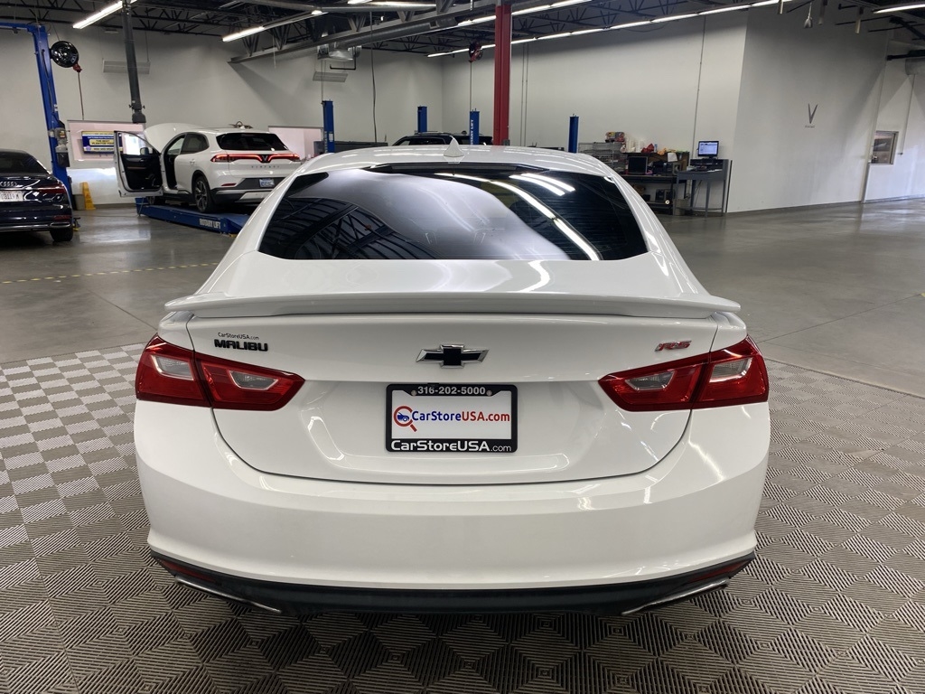 New Price! THIS VEHICLE IS EQUIPPED WITH THE FOLLOWING FEATURES AND OPTIONS Convenience Package 2 (LPO) (All-Weather Floor Mats, Cargo Net, and Remote Start Kit (LPO)), Preferred Equipment Group 1SP, 18" Aluminum Wheels, 4-Wheel Disc Brakes, 6 Speakers, 6-Speaker Audio System Feature, 6-Way Manual Front Passenger Seat Adjuster, 8-Way Power Driver Seat Adjuster, ABS brakes, Air Conditioning, Alloy wheels, AM/FM radio, Apple CarPlay/Android Auto, Brake assist, Bumpers: body-color, Compass, Delay-off headlights, Driver door bin, Driver vanity mirror, Dual front impact airbags, Dual front side impact airbags, Electronic Stability Control, Emergency communication system: OnStar and Chevrolet connected services capable, Exterior Parking Camera Rear, Four wheel independent suspension, Front anti-roll bar, Front Bucket Seats, Front Center Armrest, Front reading lights, Fully automatic headlights, Illuminated entry, Knee airbag, Leather Shift Knob, Low tire pressure warning, Occupant sensing airbag, Outside temperature display, Overhead airbag, Overhead console, Panic alarm, Passenger door bin, Passenger vanity mirror, Power door mirrors, Power Driver Lumbar Control Seat Adjuster, Power driver seat, Power steering, Power windows, Premium audio system: Chevrolet Infotainment 3, Premium Cloth Seat Trim, Radio data system, Radio: Chevrolet Infotainment 3 System, Rear anti-roll bar, Rear side impact airbag, Rear window defroster, Remote keyless entry, Security system, Speed control, Split folding rear seat, Spoiler, Steering wheel mounted audio controls, Tachometer, Telescoping steering wheel, Tilt steering wheel, Traction control, Trip computer, Variably intermittent wipers, and Voltmeter. Clean CARFAX. Summit White 2020 Chevrolet Malibu RS FWD CVT 1.5L DOHC