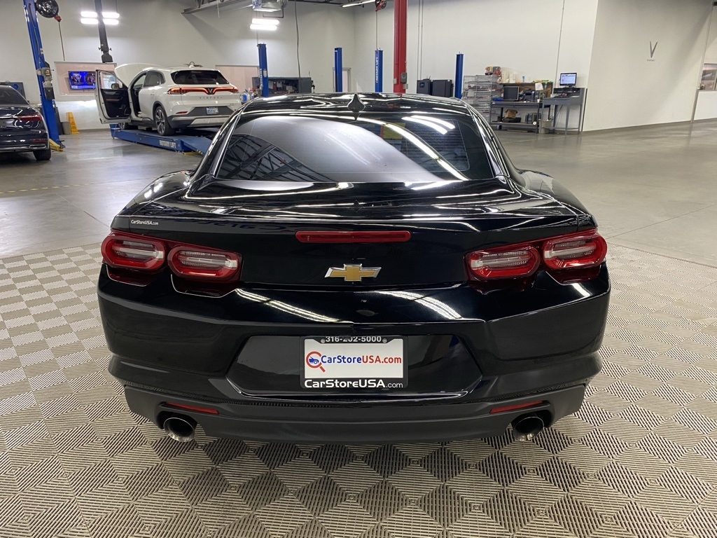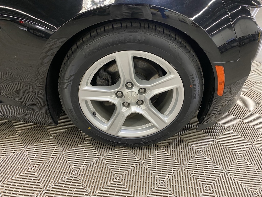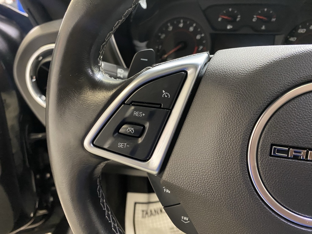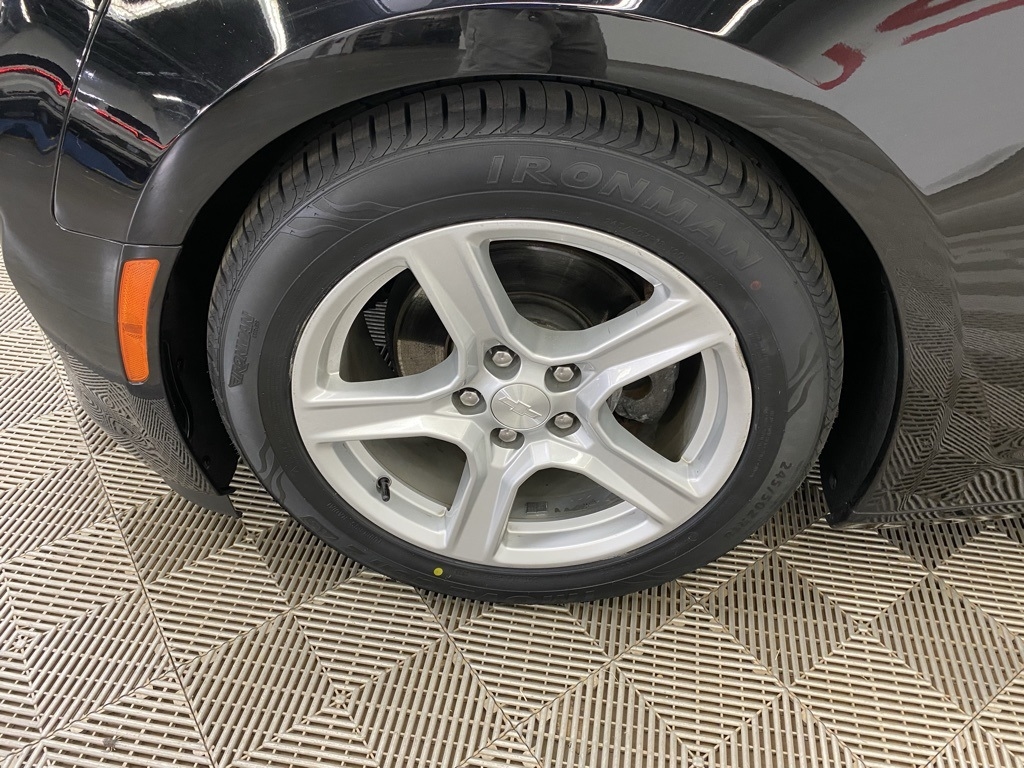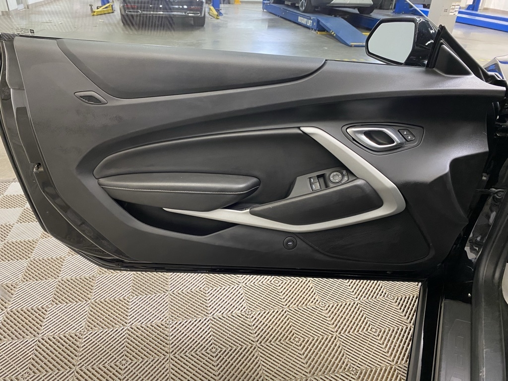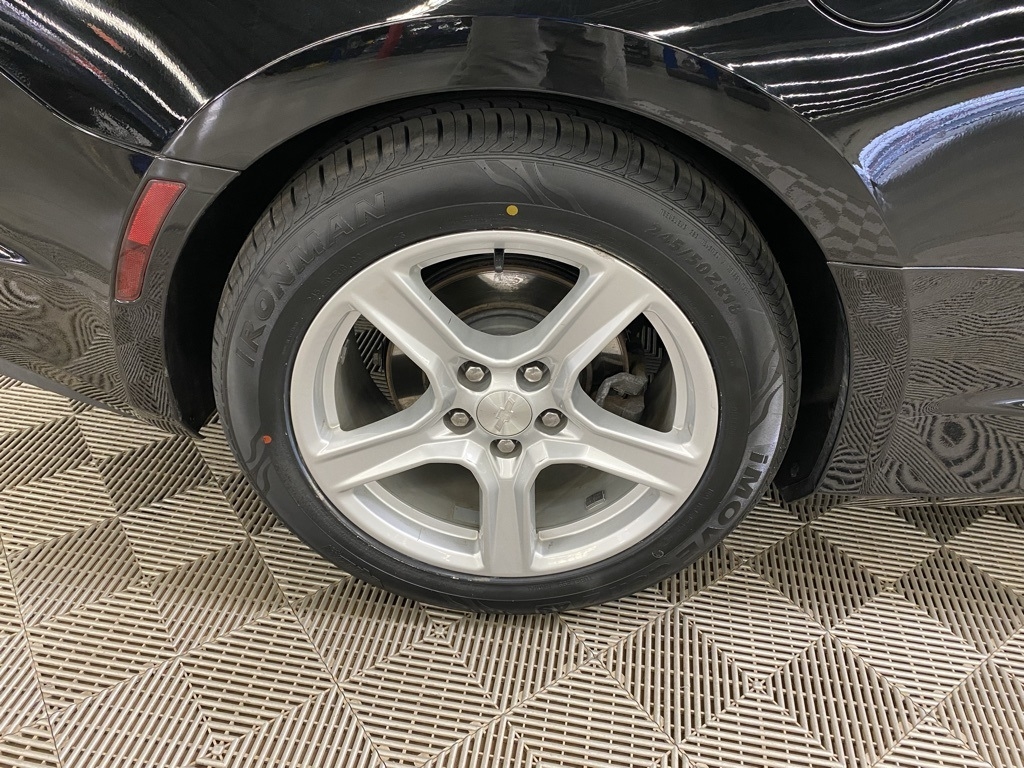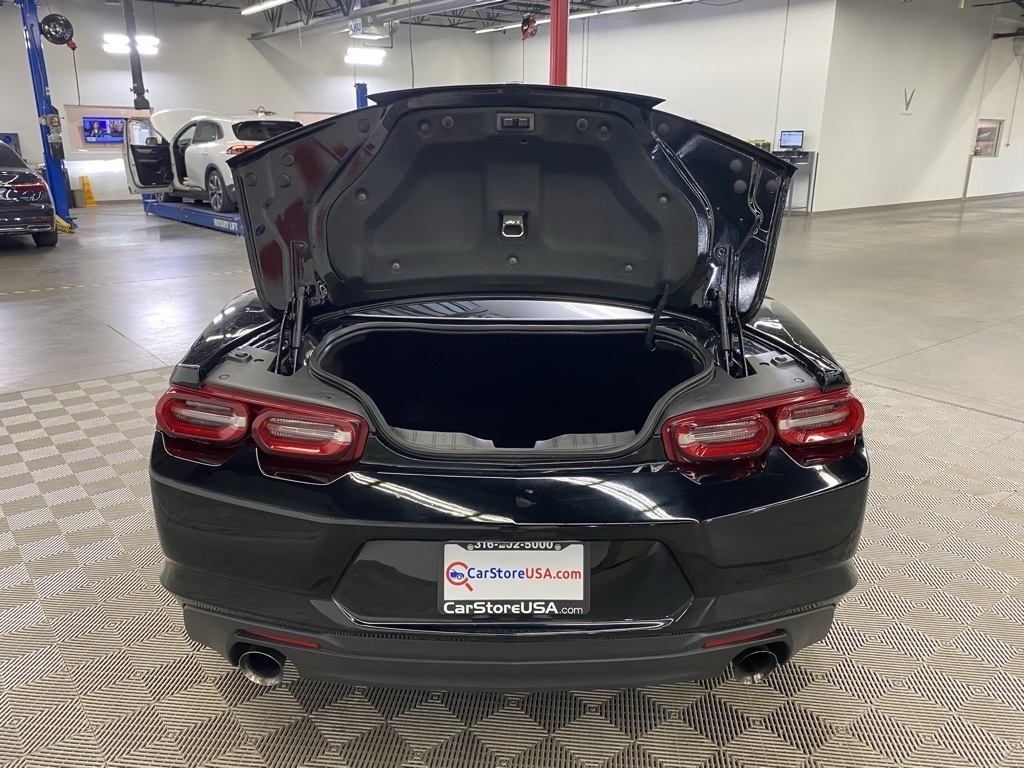 THIS VEHICLE IS EQUIPPED WITH THE FOLLOWING FEATURES AND OPTIONS 4-Wheel Disc Brakes, 6 Speakers, 6-Speaker Audio System Feature, 8-Way Power Driver Seat Adjuster, ABS brakes, Air Conditioning, Alloy wheels, Apple CarPlay/Android Auto, Automatic temperature control, Bluetooth® For Phone, Brake assist, Bumpers: body-color, Cloth Seat Trim, Compass, Delay-off headlights, Driver door bin, Driver vanity mirror, Dual front impact airbags, Dual front side impact airbags, Electronic Stability Control, Exterior Parking Camera Rear, Four wheel independent suspension, Front anti-roll bar, Front Bucket Seats, Front Center Armrest, Front License Plate Bracket, Front reading lights, Front Sport Bucket Seats, Fully automatic headlights, Illuminated entry, Knee airbag, Leather Shift Knob, Low tire pressure warning, Occupant sensing airbag, Overhead airbag, Paddle-Shift Manual Controls, Panic alarm, Passenger door bin, Passenger vanity mirror, Power door mirrors, Power driver seat, Power passenger seat, Power steering, Power windows, Premium audio system: Chevrolet Infotainment System, Radio data system, Radio: Chevrolet Infotainment 3 System, Rear anti-roll bar, Rear window defroster, Remote keyless entry, Remote Vehicle Starter System, Security system, Speed control, Speed-sensing steering, Steering wheel mounted audio controls, Tachometer, Telescoping steering wheel, Tilt steering wheel, Tire Inflation Kit, Traction control, Trip computer, Variably intermittent wipers, and Voltmeter. Black 2019 Chevrolet Camaro 1LT RWD 8-Speed Automatic 2.0L Turbocharged