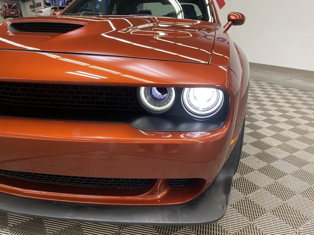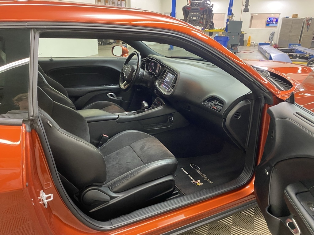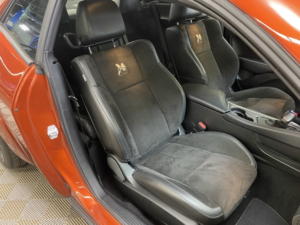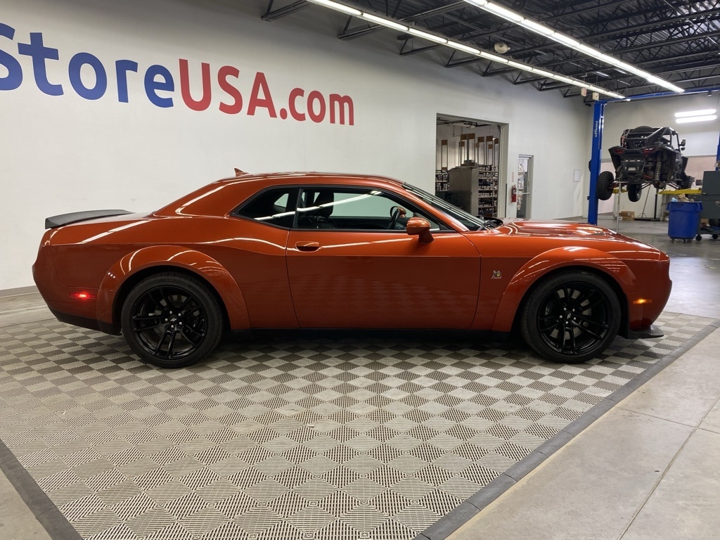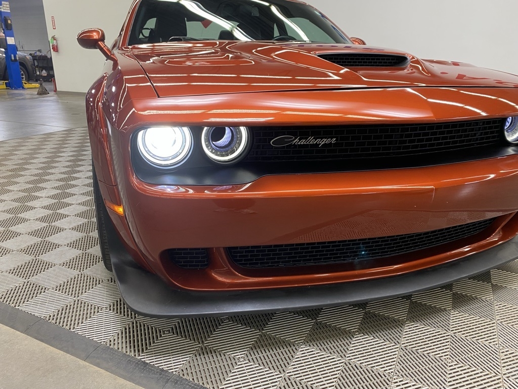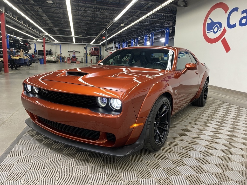 CARFAX One-Owner. THIS VEHICLE IS EQUIPPED WITH THE FOLLOWING FEATURES AND OPTIONS Alpine Audio Group w/Subwoofer (506 Watt Amplifier, 9 Amplified Speakers w/Subwoofer, and Surround Sound), Driver Convenience Group (Blind Spot & Cross Path Detection, High-Intensity Discharge Headlamps, and Power Multi-Function Foldaway Mirrors), Plus Package (Door Trim Panel w/Ambient Lighting, Heated Steering Wheel, Power Tilt/Telescope Steering Column, Premium-Stitched Dash Panel, and Radio/Driver Seat/Mirrors Memory), Quick Order Package 24N R/T Scat Pack Widebody (3.09 Rear Axle Ratio, Adaptive Damping Suspension, Brembo 6-Pot Fixed Front Caliper Brakes, Flat-Bottom Steering Wheel, Performance Shift Indicator, Wheels: 20" x 11.0" Devil's Rim Aluminum, Widebody Competition Suspension, and Widebody Fender Flares), 1-Yr SiriusXM Guardian Trial, 230MM Rear Axle, 4-Wheel Disc Brakes, 4G LTE Wi-Fi Hot Spot, 5-Year SiriusXM Traffic Service, 5-Year SiriusXM Travel Link Service, 6 Speakers, 8.4" Touchscreen Display, ABS brakes, Air Conditioning, Alloy wheels, AM/FM radio: SiriusXM, Anti-whiplash front head restraints, Apple CarPlay, Apple CarPlay/Android Auto, Auto-dimming Rear-View mirror, Automatic temperature control, Brake assist, Bumpers: body-color, Compass, Delay-off headlights, Driver door bin, Driver vanity mirror, Dual front impact airbags, Dual front side impact airbags, Electronic Stability Control, Emergency communication system: SiriusXM Guardian, For Details, Visit DriveUconnect.com, Four wheel independent suspension, Front anti-roll bar, Front Bucket Seats, Front Center Armrest, Front dual zone A/C, Front fog lights, Front reading lights, Fully automatic headlights, Garage door transmitter, Google Android Auto, GPS Antenna Input, GPS Navigation, HD Radio, Heated door mirrors, Heated front seats, Heated steering wheel, Illuminated entry, Integrated Center Stack Radio, Integrated Voice Command w/Bluetooth, Leather Shift Knob, Low tire pressure warning, Media Hub (2 USB, AUX), Outside temperature display, Overhead airbag, Overhead console, Panic alarm, ParkView Rear Back-Up Camera, Passenger door bin, Passenger vanity mirror, Power door mirrors, Power driver seat, Power steering, Power Sunroof, Power windows, Radio data system, Radio: Uconnect 4C Nav w/8.4" Display, Radio: Uconnect 4C w/8.4" Display, Rear anti-roll bar, Rear reading lights, Rear seat center armrest, Rear window defroster, Remote keyless entry, Rhombi 2-Pc Wheel Center Cap, Scat Pack Logo Houndstooth Seat, Security system, Shark Fin Antenna, SiriusXM Satellite Radio, SiriusXM Traffic Plus, SiriusXM Travel Link, Speed control, Speed-sensing steering, Split folding rear seat, Spoiler, Sport steering wheel, Steering wheel mounted audio controls, Tachometer, Telescoping steering wheel, Tilt steering wheel, Traction control, Trip computer, USB Host Flip, Variably intermittent wipers, Wheels: 20" x 11" Carbon Black Aluminum, and Wheels: 20" x 9" Lo Gloss Granite CrystaL. Clean CARFAX. Sinamon Stick 2021 Dodge Challenger R/T Scat Pack Widebody RWD 8-Speed Automatic SRT HEMI 6.4L V8 MDS