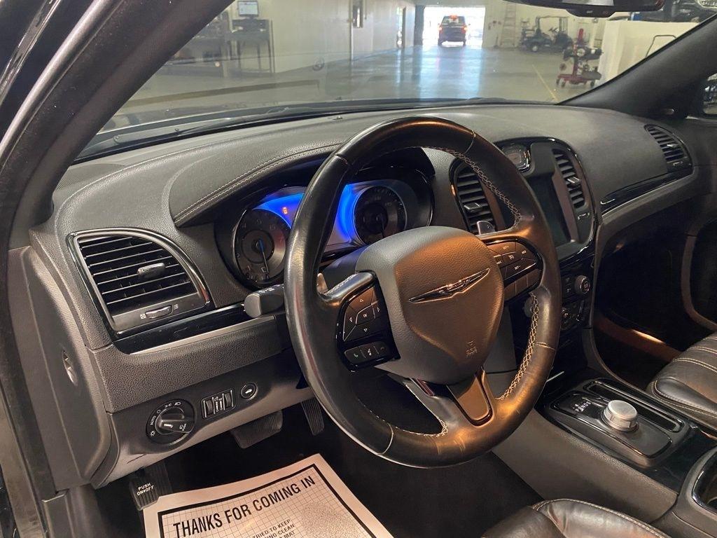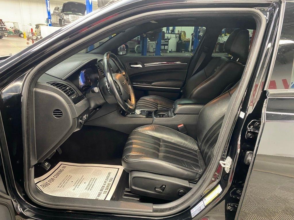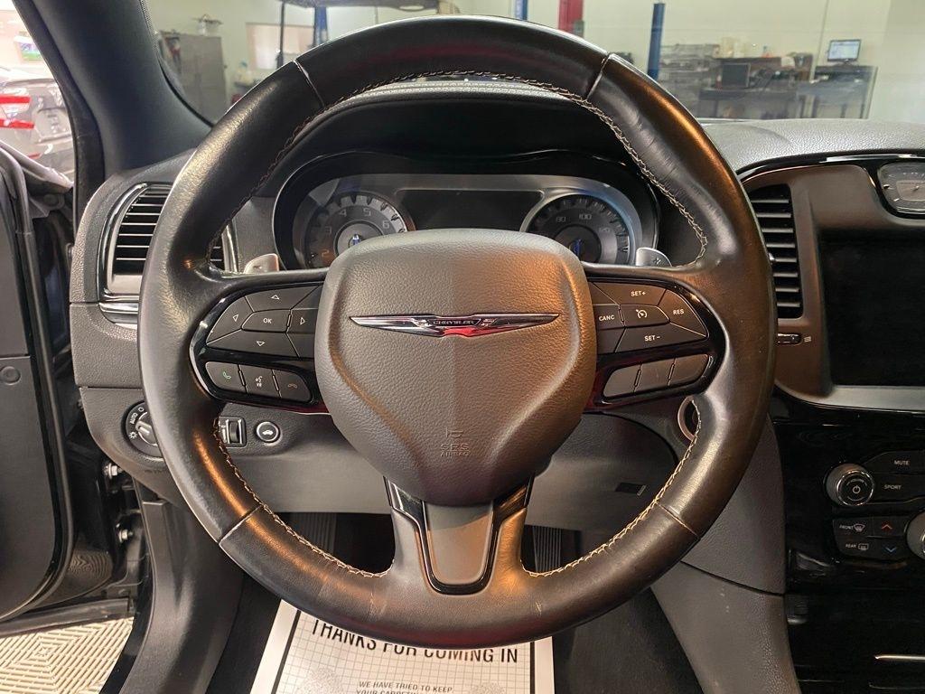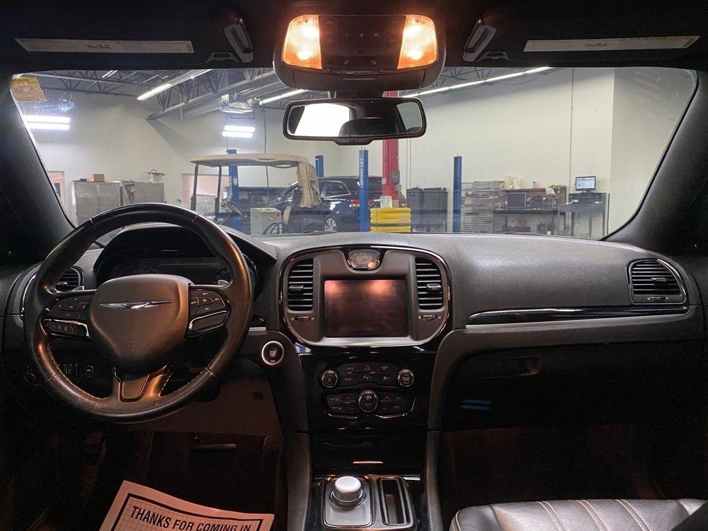 CARFAX One-Owner. THIS VEHICLE IS EQUIPPED WITH THE FOLLOWING FEATURES AND OPTIONS Quick Order Package 2EG (Surround Sound), 4-Wheel Disc Brakes, 9 Speakers, ABS brakes, Air Conditioning, Alloy wheels, AM/FM radio: SiriusXM, Anti-whiplash front head restraints, Apple CarPlay/Android Auto, Auto-dimming door mirrors, Auto-Dimming Exterior Driver Mirror, Auto-dimming Rear-View mirror, Automatic temperature control, Blind Spot & Cross Path Detection, Body Color Exterior Mirrors, Brake assist, Bumpers: body-color, Compass, Delay-off headlights, Driver door bin, Driver vanity mirror, Dual front impact airbags, Dual front side impact airbags, Electronic Stability Control, Emergency communication system: SiriusXM Guardian, Exterior Mirrors Courtesy Lamps, Exterior Mirrors w/Heating Element, Exterior Mirrors w/Supplemental Signals, Four wheel independent suspension, Front anti-roll bar, Front Bucket Seats, Front Center Armrest, Front dual zone A/C, Front fog lights, Front License Plate Bracket, Front reading lights, Fully automatic headlights, Garage door transmitter, Heated door mirrors, Heated front seats, Illuminated entry, Knee airbag, Leather Trimmed Sport Seats, Low tire pressure warning, Navigation System, Occupant sensing airbag, Outside temperature display, Overhead airbag, Overhead console, Panic alarm, ParkView Rear Back-Up Camera, Passenger door bin, Passenger vanity mirror, Power door mirrors, Power driver seat, Power moonroof, Power passenger seat, Power steering, Power windows, Radio data system, Radio: Uconnect 4C Nav w/8.4" Display, Rear anti-roll bar, Rear reading lights, Rear seat center armrest, Rear window defroster, Remote keyless entry, Security system, Speed control, Speed-sensing steering, Split folding rear seat, Steering wheel mounted audio controls, Tachometer, Telescoping steering wheel, Tilt steering wheel, Traction control, Trip computer, Turn signal indicator mirrors, Variably intermittent wipers, and Wheels: 20" x 8.0" Black Noise Aluminum. Clean CARFAX. Gloss Black 2022 Chrysler 300 S RWD 8-Speed Automatic 3.6L V6 24V VVT