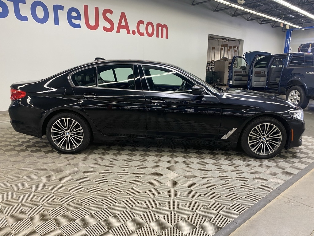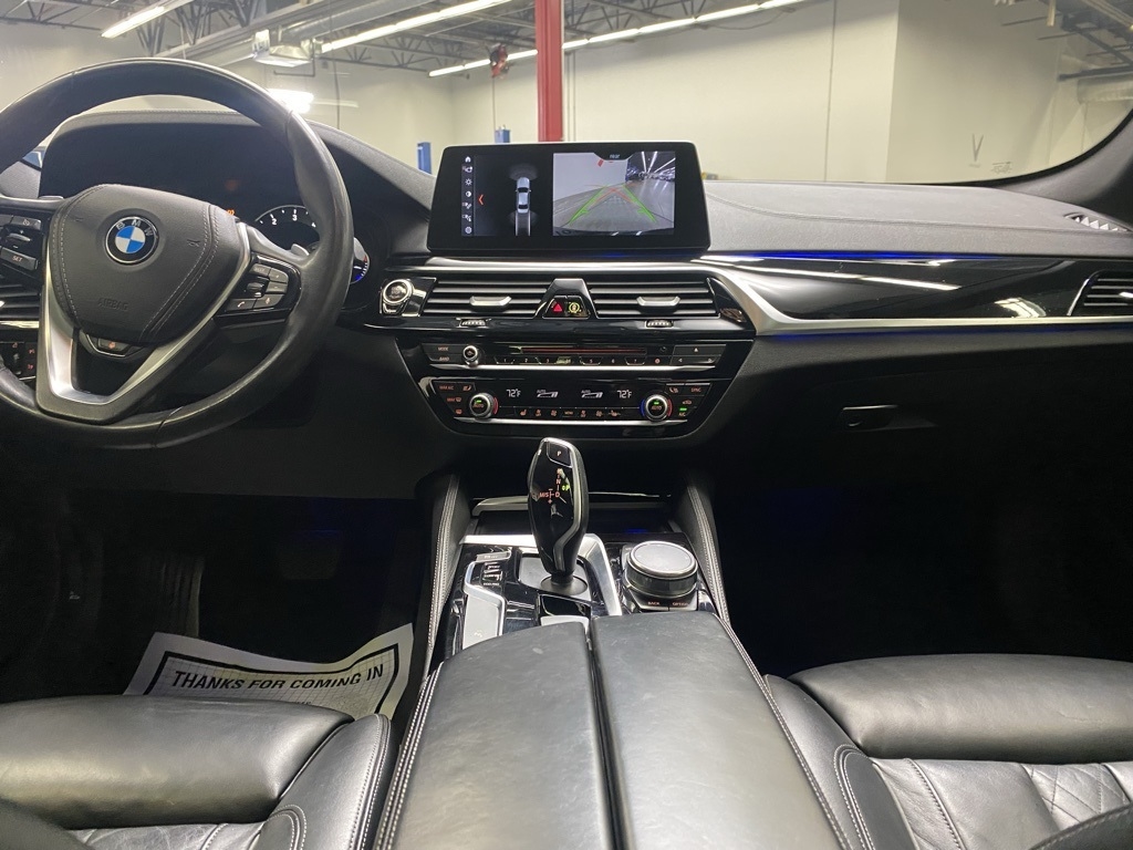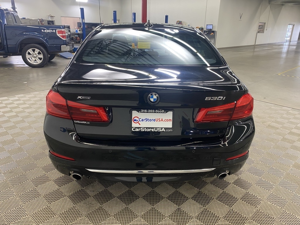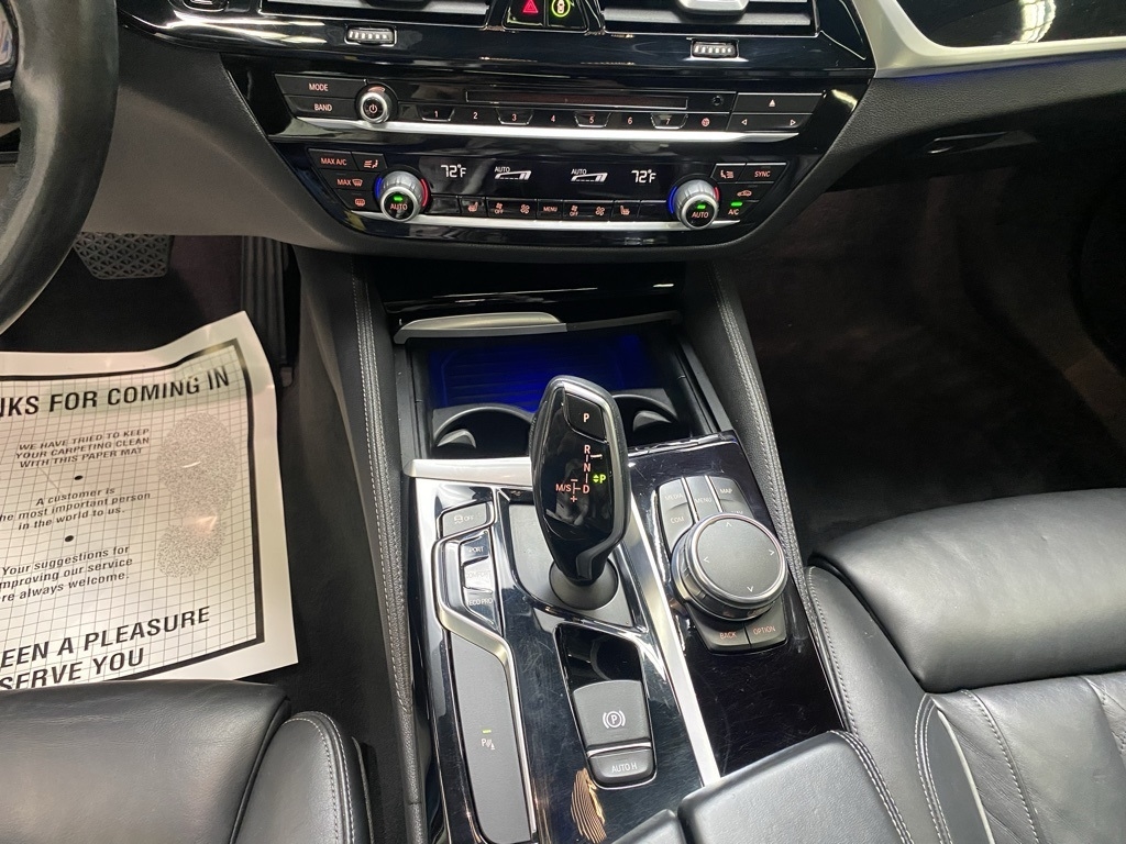 THIS VEHICLE IS EQUIPPED WITH THE FOLLOWING FEATURES AND OPTIONS 12 Speakers, 4-Wheel Disc Brakes, ABS brakes, Active Blind Spot Detection, Active Driving Assistant, Air Conditioning, Alloy wheels, AM/FM radio, Apple CarPlay Compatibility, Auto tilt-away steering wheel, Auto-dimming door mirrors, Auto-dimming Rear-View mirror, Automatic temperature control, Brake assist, Bumpers: body-color, CD player, Comfort Access Keyless Entry, Delay-off headlights, Driver door bin, Driver vanity mirror, Dual front impact airbags, Dual front side impact airbags, Electronic Stability Control, Emergency communication system: BMW Assist eCall, Enhanced USB & Bluetooth, Exterior Parking Camera Rear, Four wheel independent suspension, Front anti-roll bar, Front Bucket Seats, Front Center Armrest, Front dual zone A/C, Front fog lights, Front reading lights, Fully automatic headlights, Garage door transmitter, Genuine wood console insert, Genuine wood dashboard insert, Genuine wood door panel insert, Gesture Control, Head-Up Display, Heated door mirrors, Heated Front Seats, Heated Steering Wheel, HiFi Sound System, Illuminated entry, In-Dash CD Player, Lane Departure Warning System, Leather Shift Knob, Leather steering wheel, Low tire pressure warning, Lumbar Support, Memory seat, Multi-Contour Seats, Navigation System, Occupant sensing airbag, Outside temperature display, Overhead airbag, Panic alarm, Park Distance Control, Passenger door bin, Passenger vanity mirror, Piano Finish Black Trim, Power door mirrors, Power driver seat, Power Front Seats, Power moonroof, Power passenger seat, Power steering, Power Tailgate, Power windows, Radio data system, Radio: AM/FM Audio System, Rain sensing wipers, Rear anti-roll bar, Rear reading lights, Rear seat center armrest, Rear window defroster, Remote keyless entry, Security system, SensaTec Leatherette Upholstery, SiriusXM Satellite Radio, Speed control, Speed-sensing steering, Speed-Sensitive Wipers, Split folding rear seat, Sport Seats, Sport steering wheel, Steering wheel memory, Steering wheel mounted audio controls, Tachometer, Telescoping steering wheel, Tilt steering wheel, Traction control, Trip computer, Turn signal indicator mirrors, Variably intermittent wipers, Wheels: 18" x 8" Double-Spoke (Style 634), and WiFi Hotspot. Clean CARFAX. Black Sapphire Metallic 2018 BMW 5 Series 530i xDrive AWD 8-Speed Automatic 2.0L 4-Cylinder