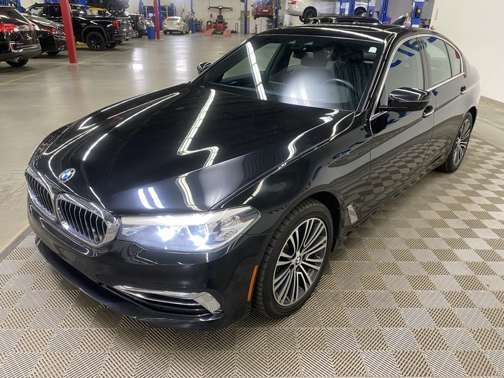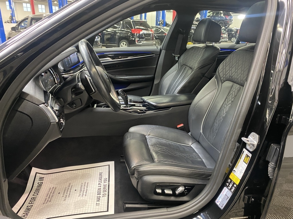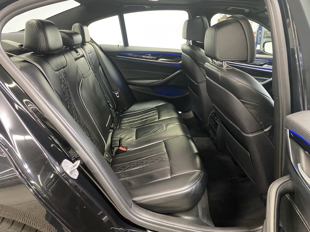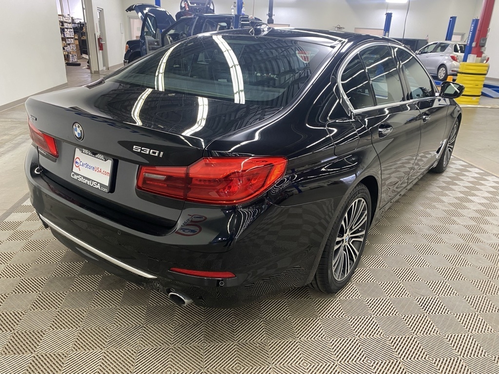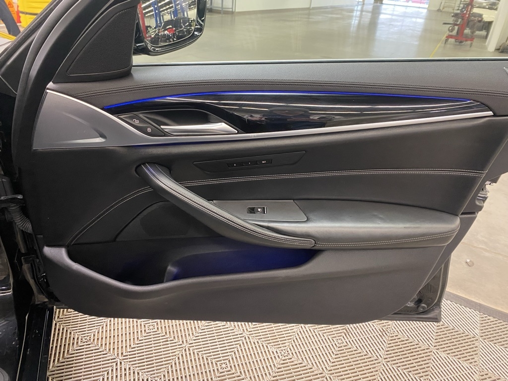 THIS VEHICLE IS EQUIPPED WITH THE FOLLOWING FEATURES AND OPTIONS 12 Speakers, 4-Wheel Disc Brakes, ABS brakes, Active Blind Spot Detection, Active Driving Assistant, Air Conditioning, Alloy wheels, AM/FM radio, Apple CarPlay Compatibility, Auto tilt-away steering wheel, Auto-dimming door mirrors, Auto-dimming Rear-View mirror, Automatic temperature control, Brake assist, Bumpers: body-color, CD player, Comfort Access Keyless Entry, Delay-off headlights, Driver door bin, Driver vanity mirror, Dual front impact airbags, Dual front side impact airbags, Electronic Stability Control, Emergency communication system: BMW Assist eCall, Enhanced USB & Bluetooth, Exterior Parking Camera Rear, Four wheel independent suspension, Front anti-roll bar, Front Bucket Seats, Front Center Armrest, Front dual zone A/C, Front fog lights, Front reading lights, Fully automatic headlights, Garage door transmitter, Genuine wood console insert, Genuine wood dashboard insert, Genuine wood door panel insert, Gesture Control, Head-Up Display, Heated door mirrors, Heated Front Seats, Heated Steering Wheel, HiFi Sound System, Illuminated entry, In-Dash CD Player, Lane Departure Warning System, Leather Shift Knob, Leather steering wheel, Low tire pressure warning, Lumbar Support, Memory seat, Multi-Contour Seats, Navigation System, Occupant sensing airbag, Outside temperature display, Overhead airbag, Panic alarm, Park Distance Control, Passenger door bin, Passenger vanity mirror, Piano Finish Black Trim, Power door mirrors, Power driver seat, Power Front Seats, Power moonroof, Power passenger seat, Power steering, Power Tailgate, Power windows, Radio data system, Radio: AM/FM Audio System, Rain sensing wipers, Rear anti-roll bar, Rear reading lights, Rear seat center armrest, Rear window defroster, Remote keyless entry, Security system, SensaTec Leatherette Upholstery, SiriusXM Satellite Radio, Speed control, Speed-sensing steering, Speed-Sensitive Wipers, Split folding rear seat, Sport Seats, Sport steering wheel, Steering wheel memory, Steering wheel mounted audio controls, Tachometer, Telescoping steering wheel, Tilt steering wheel, Traction control, Trip computer, Turn signal indicator mirrors, Variably intermittent wipers, Wheels: 18" x 8" Double-Spoke (Style 634), and WiFi Hotspot. Clean CARFAX. Black Sapphire Metallic 2018 BMW 5 Series 530i xDrive AWD 8-Speed Automatic 2.0L 4-Cylinder