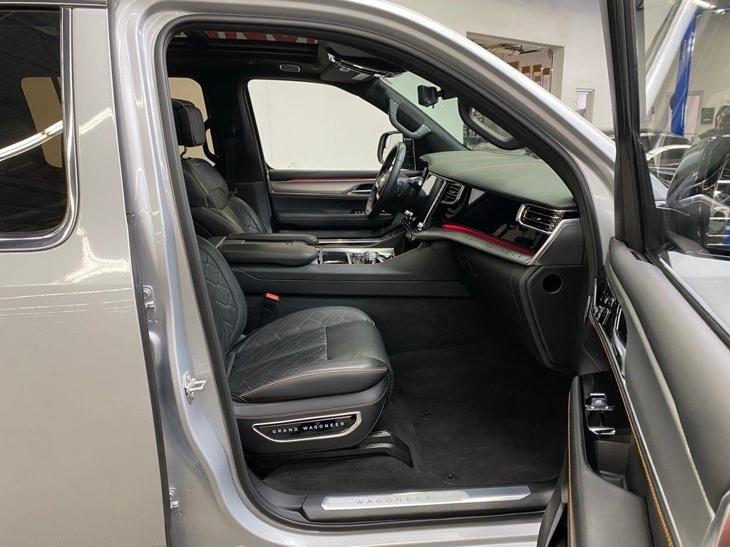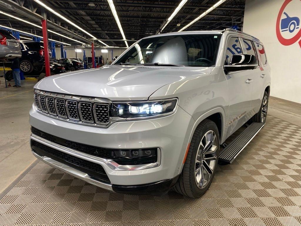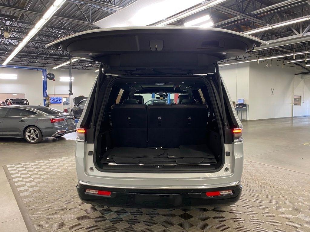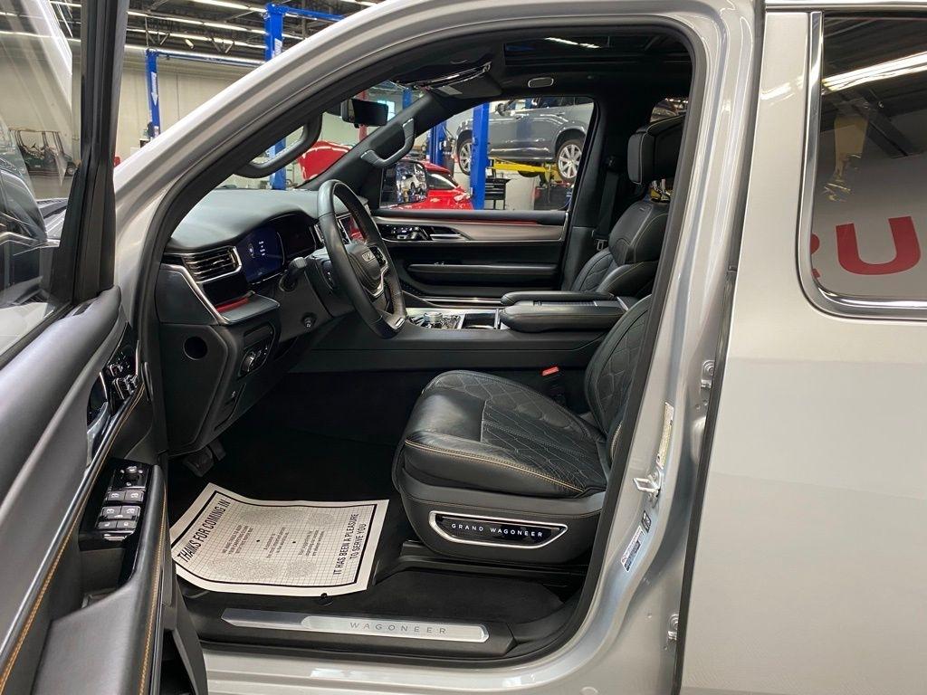 CARFAX One-Owner. THIS VEHICLE IS EQUIPPED WITH THE FOLLOWING FEATURES AND OPTIONS Quick Order Package 28W, Two Tone Paint Group, 3.92 Rear Axle Ratio, 3rd row seats: bench, 4-Wheel Disc Brakes, ABS brakes, Adjustable pedals, Air Conditioning, Alloy wheels, AM/FM radio: SiriusXM with 360L, Anti-whiplash front head restraints, Audio memory, Auto High-beam Headlights, Auto-dimming door mirrors, Auto-dimming Rear-View mirror, Auto-leveling suspension, Automatic temperature control, Body Color Roof, Brake assist, Bumpers: body-color, Compass, Delay-off headlights, Driver door bin, Driver vanity mirror, Driver's Seat Mounted Armrest, Dual front impact airbags, Dual front side impact airbags, Electronic Stability Control, Embossed Metal Interior Accents, Emergency communication system: Automatic SOS Call, Four wheel independent suspension, Front anti-roll bar, Front Bucket Seats, Front Center Armrest w/Storage, Front dual zone A/C, Front fog lights, Front reading lights, Fully automatic headlights, Garage door transmitter, Genuine wood console insert, Genuine wood dashboard insert, Genuine wood door panel insert, Heads-Up Display, Heated door mirrors, Heated front seats, Heated rear seats, Heated steering wheel, Illuminated entry, Knee airbag, Leather steering wheel, Low tire pressure warning, Memory seat, Navigation System, Night vision lights, Normal Duty Suspension, Occupant sensing airbag, Outside temperature display, Overhead airbag, Overhead console, Panic alarm, Passenger door bin, Passenger seat mounted armrest, Passenger vanity mirror, Pedal memory, Power adjustable front head restraints, Power door mirrors, Power driver seat, Power Liftgate, Power moonroof, Power passenger seat, Power steering, Power windows, Premium Leather Trimmed Bucket Seats, Radio data system, Radio: Uconnect 5 Nav w/12.0" Display, Rain sensing wipers, Rear air conditioning, Rear anti-roll bar, Rear dual zone A/C, Rear reading lights, Rear seat center armrest, Rear window defroster, Rear window wiper, Reclining 3rd row seat, Remote keyless entry, Roof rack, Security system, Speed control, Speed-sensing steering, Speed-Sensitive Wipers, Split folding rear seat, Steering wheel memory, Steering wheel mounted audio controls, Tachometer, Telescoping steering wheel, Tilt steering wheel, Traction control, Trip computer, Turn signal indicator mirrors, Variably intermittent wipers, Ventilated front seats, Ventilated rear seats, Voltmeter, Wheels: 22" x 9.0" Painted Aluminum, and Wheels: 22" x 9.0" Premium 4 Aluminum. Silver Zynith 2023 Jeep Grand Wagoneer Series III 4WD 8-Speed Automatic 3.0L I6