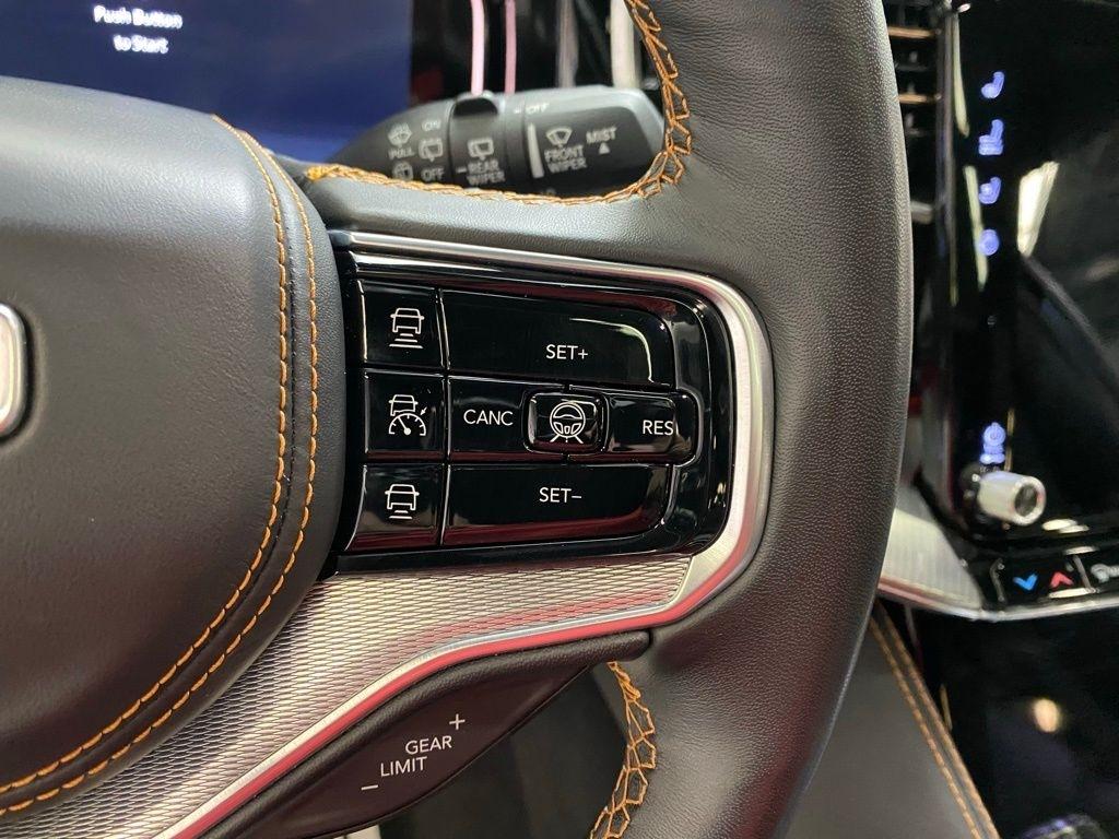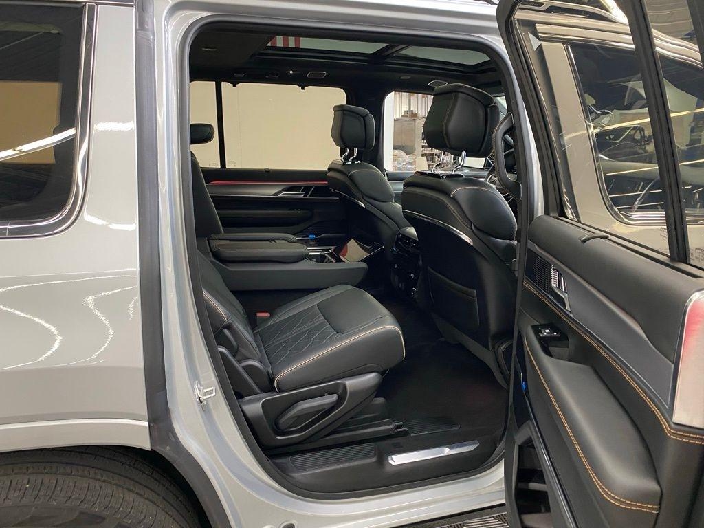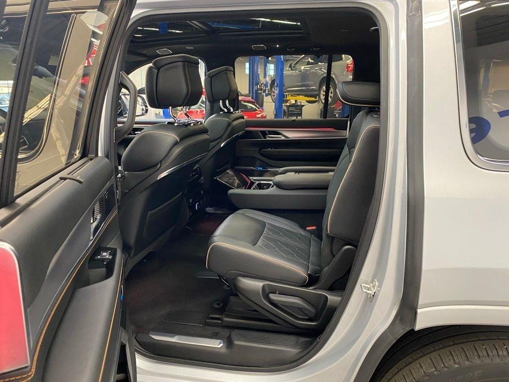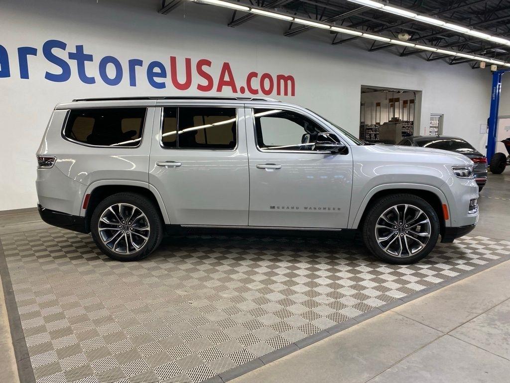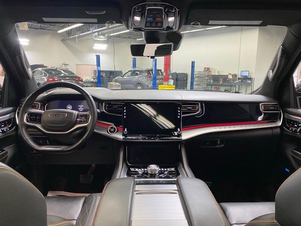 CARFAX One-Owner. THIS VEHICLE IS EQUIPPED WITH THE FOLLOWING FEATURES AND OPTIONS Quick Order Package 28W, Two Tone Paint Group, 3.92 Rear Axle Ratio, 3rd row seats: bench, 4-Wheel Disc Brakes, ABS brakes, Adjustable pedals, Air Conditioning, Alloy wheels, AM/FM radio: SiriusXM with 360L, Anti-whiplash front head restraints, Audio memory, Auto High-beam Headlights, Auto-dimming door mirrors, Auto-dimming Rear-View mirror, Auto-leveling suspension, Automatic temperature control, Body Color Roof, Brake assist, Bumpers: body-color, Compass, Delay-off headlights, Driver door bin, Driver vanity mirror, Driver's Seat Mounted Armrest, Dual front impact airbags, Dual front side impact airbags, Electronic Stability Control, Embossed Metal Interior Accents, Emergency communication system: Automatic SOS Call, Four wheel independent suspension, Front anti-roll bar, Front Bucket Seats, Front Center Armrest w/Storage, Front dual zone A/C, Front fog lights, Front reading lights, Fully automatic headlights, Garage door transmitter, Genuine wood console insert, Genuine wood dashboard insert, Genuine wood door panel insert, Heads-Up Display, Heated door mirrors, Heated front seats, Heated rear seats, Heated steering wheel, Illuminated entry, Knee airbag, Leather steering wheel, Low tire pressure warning, Memory seat, Navigation System, Night vision lights, Normal Duty Suspension, Occupant sensing airbag, Outside temperature display, Overhead airbag, Overhead console, Panic alarm, Passenger door bin, Passenger seat mounted armrest, Passenger vanity mirror, Pedal memory, Power adjustable front head restraints, Power door mirrors, Power driver seat, Power Liftgate, Power moonroof, Power passenger seat, Power steering, Power windows, Premium Leather Trimmed Bucket Seats, Radio data system, Radio: Uconnect 5 Nav w/12.0" Display, Rain sensing wipers, Rear air conditioning, Rear anti-roll bar, Rear dual zone A/C, Rear reading lights, Rear seat center armrest, Rear window defroster, Rear window wiper, Reclining 3rd row seat, Remote keyless entry, Roof rack, Security system, Speed control, Speed-sensing steering, Speed-Sensitive Wipers, Split folding rear seat, Steering wheel memory, Steering wheel mounted audio controls, Tachometer, Telescoping steering wheel, Tilt steering wheel, Traction control, Trip computer, Turn signal indicator mirrors, Variably intermittent wipers, Ventilated front seats, Ventilated rear seats, Voltmeter, Wheels: 22" x 9.0" Painted Aluminum, and Wheels: 22" x 9.0" Premium 4 Aluminum. Silver Zynith 2023 Jeep Grand Wagoneer Series III 4WD 8-Speed Automatic 3.0L I6