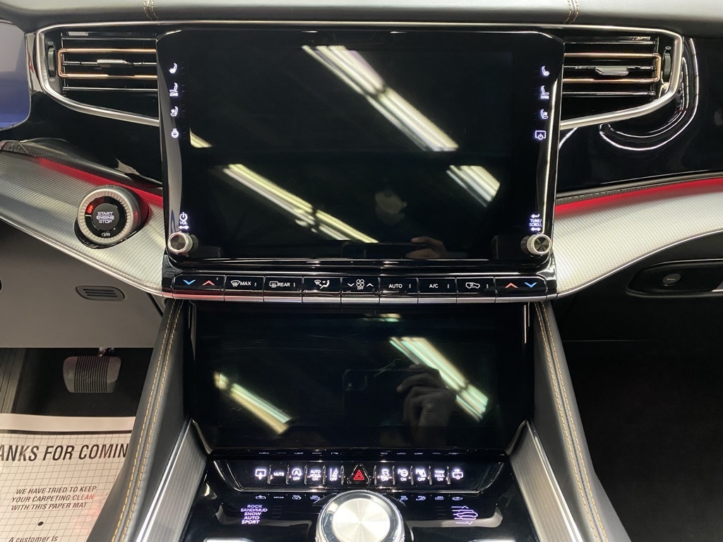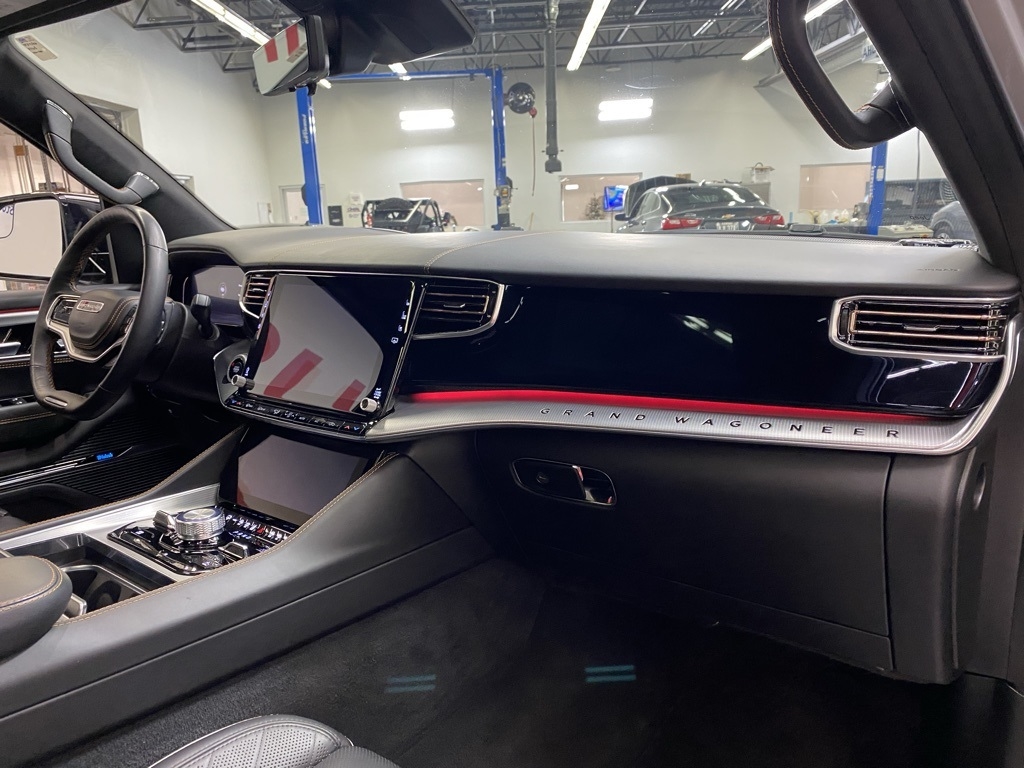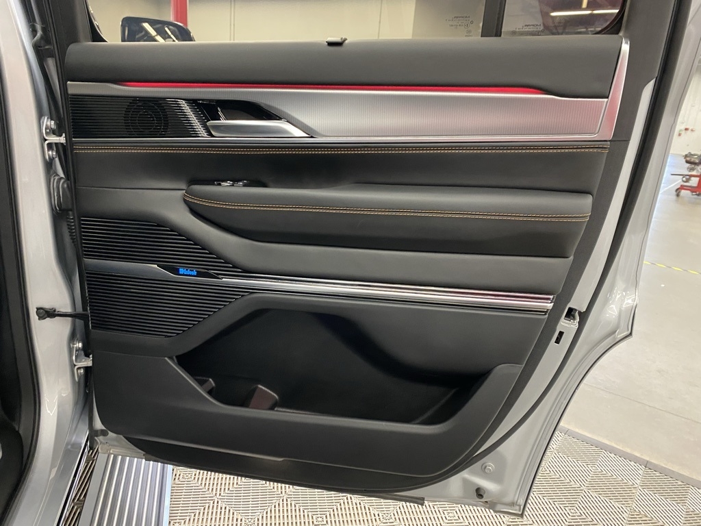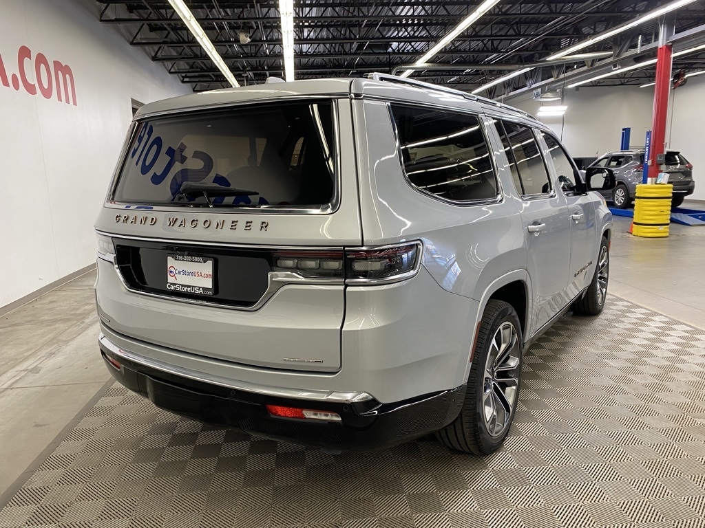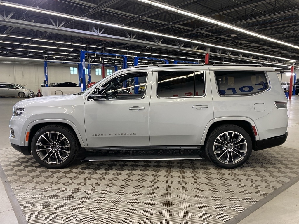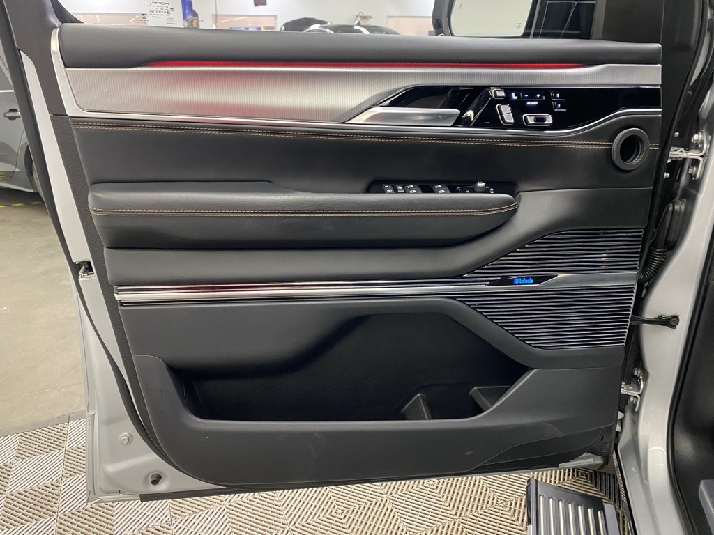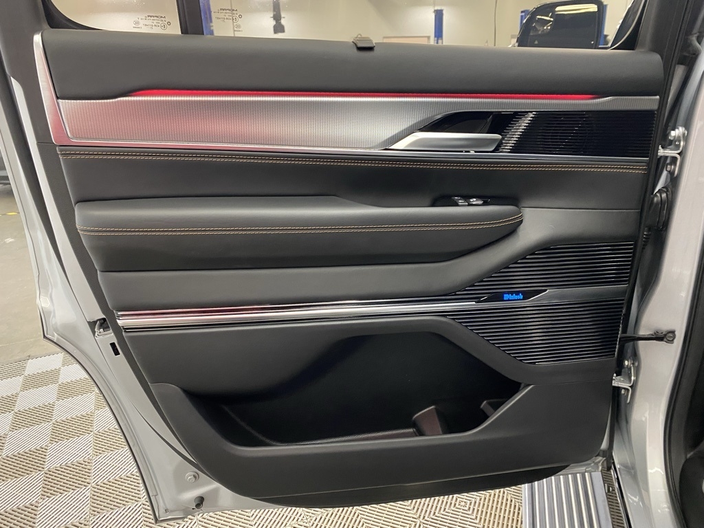 CARFAX One-Owner. THIS VEHICLE IS EQUIPPED WITH THE FOLLOWING FEATURES AND OPTIONS Quick Order Package 28W, Two Tone Paint Group, 3.92 Rear Axle Ratio, 3rd row seats: bench, 4-Wheel Disc Brakes, ABS brakes, Adjustable pedals, Air Conditioning, Alloy wheels, AM/FM radio: SiriusXM with 360L, Anti-whiplash front head restraints, Audio memory, Auto High-beam Headlights, Auto-dimming door mirrors, Auto-dimming Rear-View mirror, Auto-leveling suspension, Automatic temperature control, Body Color Roof, Brake assist, Bumpers: body-color, Compass, Delay-off headlights, Driver door bin, Driver vanity mirror, Driver's Seat Mounted Armrest, Dual front impact airbags, Dual front side impact airbags, Electronic Stability Control, Embossed Metal Interior Accents, Emergency communication system: Automatic SOS Call, Four wheel independent suspension, Front anti-roll bar, Front Bucket Seats, Front Center Armrest w/Storage, Front dual zone A/C, Front fog lights, Front reading lights, Fully automatic headlights, Garage door transmitter, Genuine wood console insert, Genuine wood dashboard insert, Genuine wood door panel insert, Heads-Up Display, Heated door mirrors, Heated front seats, Heated rear seats, Heated steering wheel, Illuminated entry, Knee airbag, Leather steering wheel, Low tire pressure warning, Memory seat, Navigation System, Night vision lights, Normal Duty Suspension, Occupant sensing airbag, Outside temperature display, Overhead airbag, Overhead console, Panic alarm, Passenger door bin, Passenger seat mounted armrest, Passenger vanity mirror, Pedal memory, Power adjustable front head restraints, Power door mirrors, Power driver seat, Power Liftgate, Power moonroof, Power passenger seat, Power steering, Power windows, Premium Leather Trimmed Bucket Seats, Radio data system, Radio: Uconnect 5 Nav w/12.0" Display, Rain sensing wipers, Rear air conditioning, Rear anti-roll bar, Rear dual zone A/C, Rear reading lights, Rear seat center armrest, Rear window defroster, Rear window wiper, Reclining 3rd row seat, Remote keyless entry, Roof rack, Security system, Speed control, Speed-sensing steering, Speed-Sensitive Wipers, Split folding rear seat, Steering wheel memory, Steering wheel mounted audio controls, Tachometer, Telescoping steering wheel, Tilt steering wheel, Traction control, Trip computer, Turn signal indicator mirrors, Variably intermittent wipers, Ventilated front seats, Ventilated rear seats, Voltmeter, Wheels: 22" x 9.0" Painted Aluminum, and Wheels: 22" x 9.0" Premium 4 Aluminum. Silver Zynith 2023 Jeep Grand Wagoneer Series III 4WD 8-Speed Automatic 3.0L I6