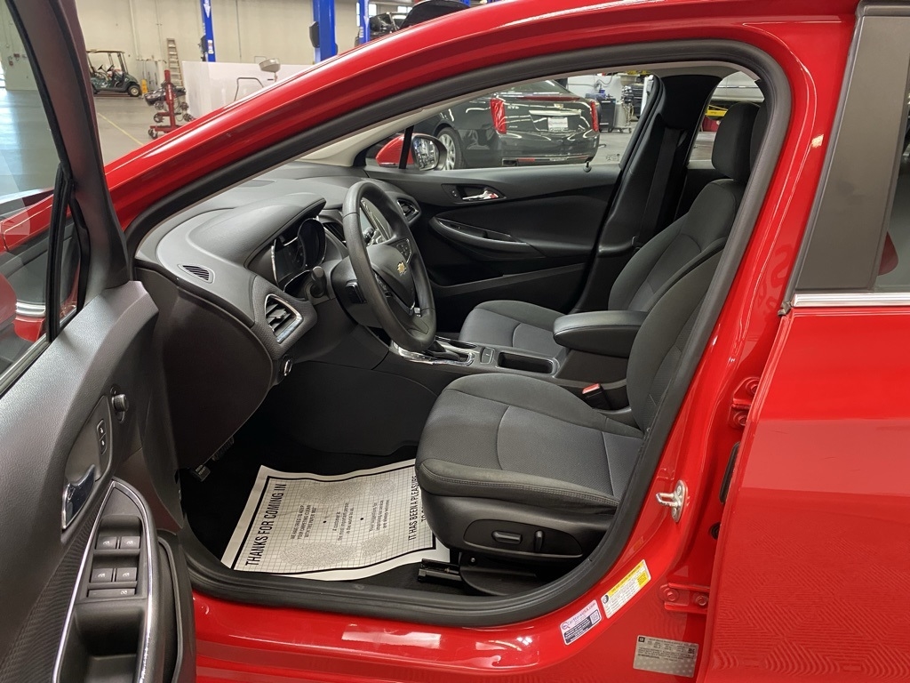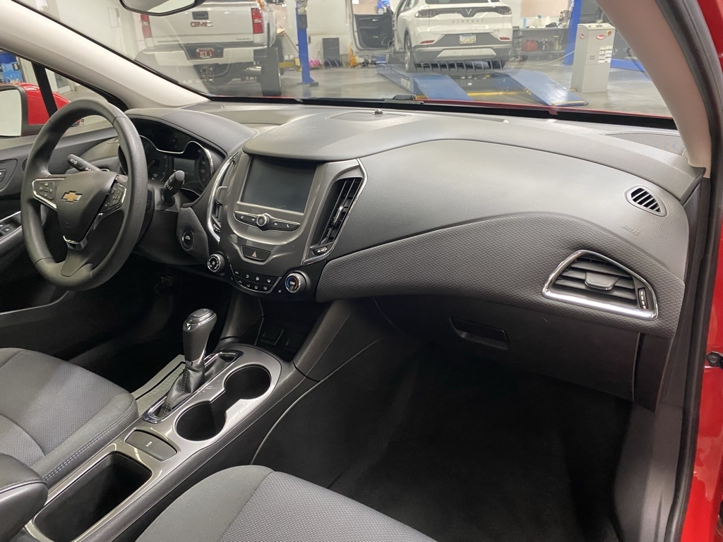 THIS VEHICLE IS EQUIPPED WITH THE FOLLOWING FEATURES AND OPTIONS Convenience Package (Driver 8-Way Power Seat Adjuster, Heated Driver & Front Passenger Seat, Keyless Open, Keyless Start, and Remote Vehicle Starter System), Preferred Equipment Group 1SD, 16" Aluminum Wheels, 4-Wheel Disc Brakes, 6 Speakers, 6-Speaker Audio System Feature, ABS brakes, Air Conditioning, Alloy wheels, AM/FM radio: SiriusXM, Apple CarPlay/Android Auto, Brake assist, Bumpers: body-color, Cloth Seat Trim, Compass, Delay-off headlights, Driver 6-Way Manual Seat Adjuster, Driver door bin, Driver vanity mirror, Dual front impact airbags, Dual front side impact airbags, Electronic Stability Control, Emergency communication system: OnStar Guidance, Exterior Parking Camera Rear, Front anti-roll bar, Front Bucket Seats, Front Center Armrest, Front License Plate Bracket, Front Passenger 2-Way Manual Seat Adjuster, Front reading lights, Front wheel independent suspension, Fully automatic headlights, Heated door mirrors, Illuminated entry, Knee airbag, Low tire pressure warning, Occupant sensing airbag, Outside temperature display, Overhead airbag, Panic alarm, Passenger door bin, Passenger vanity mirror, Power door mirrors, Power steering, Power windows, Radio data system, Radio: AM/FM Chevrolet MyLink w/7" Touch-Screen, Rear seat center armrest, Rear side impact airbag, Rear window defroster, Rear window wiper, Remote keyless entry, Security system, SiriusXM Satellite Radio, Speed control, Split folding rear seat, Spoiler, Steering wheel mounted audio controls, Tachometer, Telescoping steering wheel, Tilt steering wheel, Traction control, Trip computer, Variably intermittent wipers, and Voltmeter. Clean CARFAX. Red Hot 2018 Chevrolet Cruze LT FWD 6-Speed Automatic 1.4L 4-Cylinder Turbo DOHC CVVT