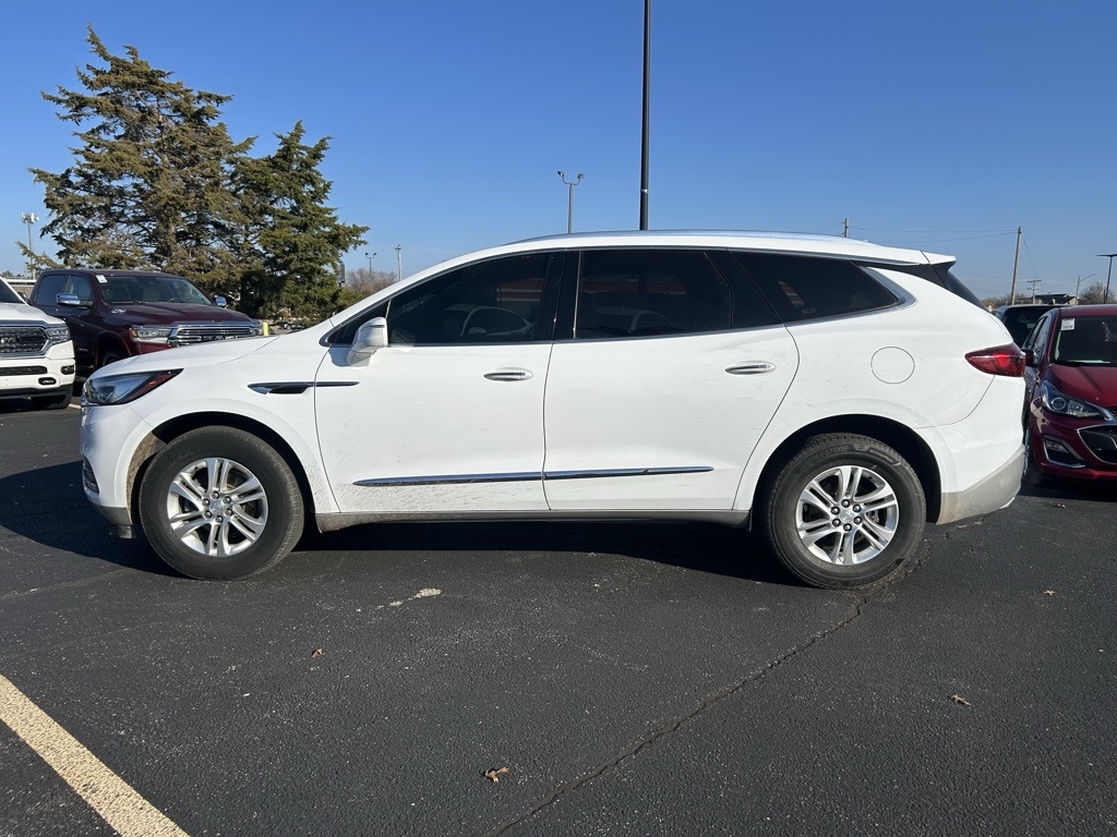 THIS VEHICLE IS EQUIPPED WITH THE FOLLOWING FEATURES AND OPTIONS Front Mounting License Plate Bracket Package, Preferred Equipment Group 1SL, 18" Painted Aluminum Wheels, 3.49 Axle Ratio, 3rd row seats: split-bench, 4-Wheel Disc Brakes, 6 Speakers, 6-Speaker Audio System Feature, 7-Passenger Seating, ABS brakes, Air Conditioning, Alloy wheels, AM/FM radio: SiriusXM with 360L, Apple CarPlay/Android Auto, Auto High-beam Headlights, Auto-dimming door mirrors, Auto-dimming Rear-View mirror, Automatic temperature control, Brake assist, Bumpers: body-color, Compass, Delay-off headlights, Driver door bin, Driver vanity mirror, Dual front impact airbags, Dual front side impact airbags, Electronic Stability Control, Emergency communication system: OnStar and Buick connected services capable, Four wheel independent suspension, Front anti-roll bar, Front Bucket Seats, Front Center Armrest, Front dual zone A/C, Front reading lights, Fully automatic headlights, Garage door transmitter, Heated door mirrors, Heated Driver & Front Passenger Seats, Heated front seats, Illuminated entry, Leather steering wheel, Low tire pressure warning, Occupant sensing airbag, Outside temperature display, Overhead airbag, Overhead console, Panic alarm, Passenger door bin, Passenger vanity mirror, Perforated Leather-Appointed Seat Trim, Power door mirrors, Power Driver Lumbar Control Seat Adjuster, Power driver seat, Power Liftgate, Power Passenger Lumbar Control Seat Adjuster, Power passenger seat, Power steering, Power windows, Premium audio system: Buick Infotainment System, Radio data system, Radio: Buick Infotainment System AM/FM Stereo, Rear air conditioning, Rear anti-roll bar, Rear Parking Sensors, Rear reading lights, Rear window defroster, Rear window wiper, Remote keyless entry, Roof rack: rails only, Security system, SiriusXM w/360L, Speed control, Speed-sensing steering, Spoiler, Steering wheel mounted audio controls, Tachometer, Telescoping steering wheel, Tilt steering wheel, Traction control, Trip computer, Turn signal indicator mirrors, Variably intermittent wipers, and Voltmeter. Clean CARFAX. Summit White 2020 Buick Enclave Essence FWD 9-Speed Automatic 3.6L V6 SIDI VVT
