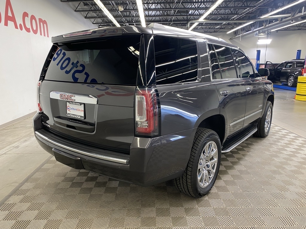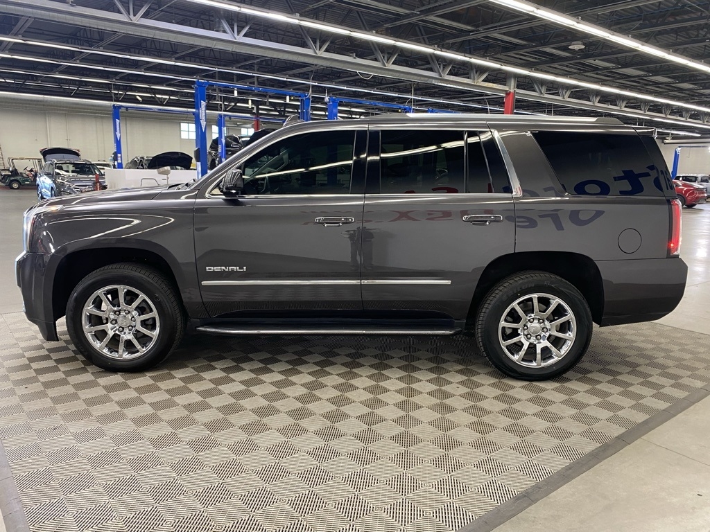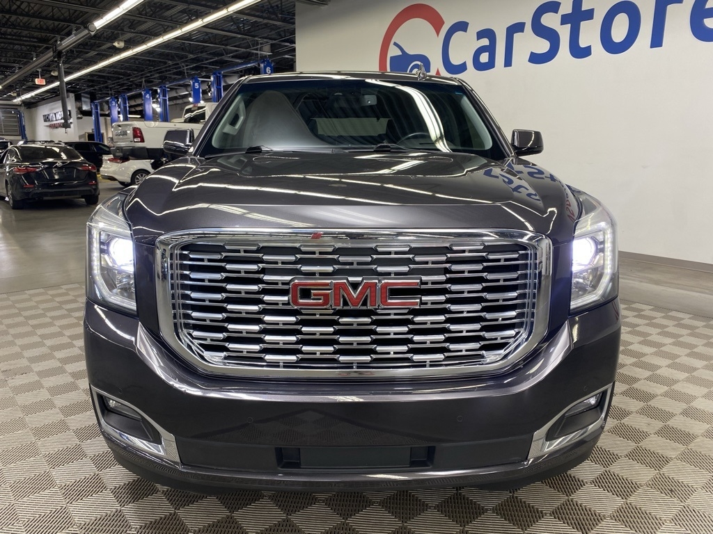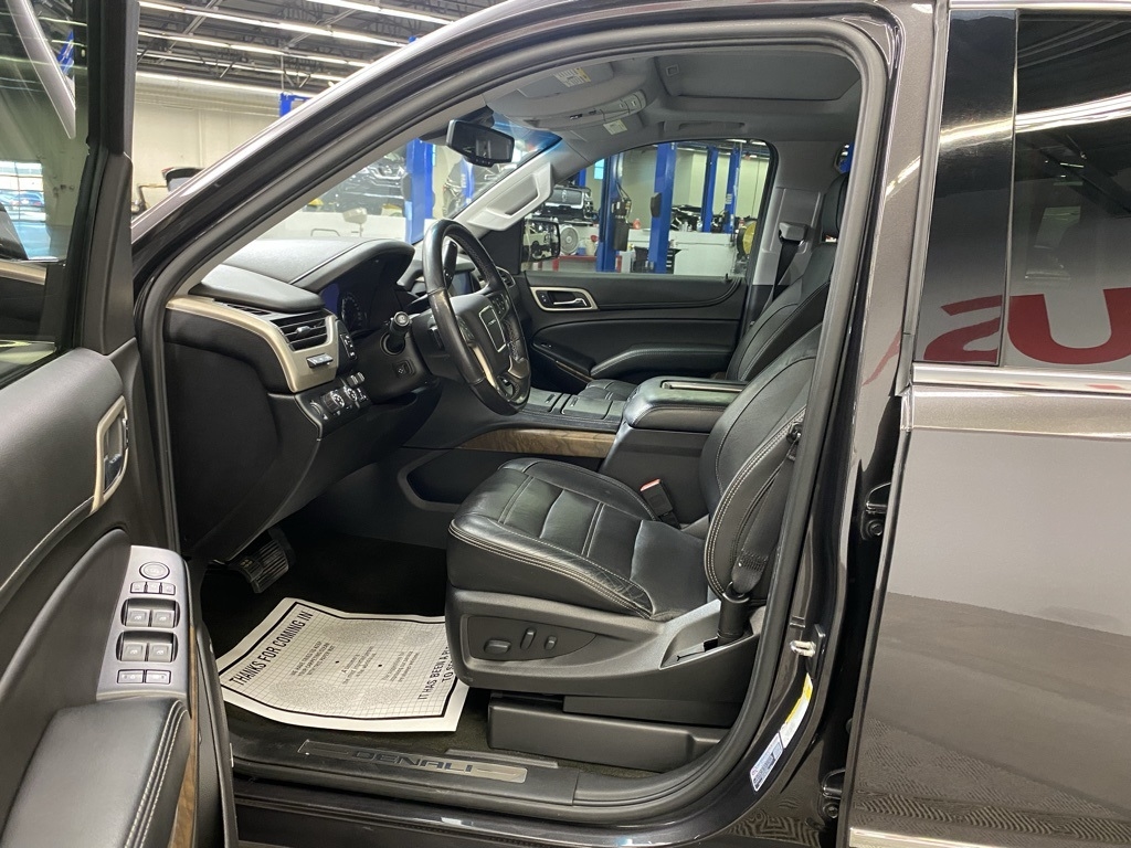 THIS VEHICLE IS EQUIPPED WITH THE FOLLOWING FEATURES AND OPTIONS Enhanced Driver Alert Package (Forward Collision Alert, IntelliBeam Automatic High Beam On/Off Headlamps, Lane Keep Assist w/Lane Departure Warning, and Low Speed Forward Automatic Braking), Magnetic Ride Control Suspension Package, Memory Package, Open Road Package (Power Tilt-Sliding Sunroof w/Express-Open/Close and Rear Seat Blu-Ray/DVD Entertainment System), Preferred Equipment Group 5SA (4-Wheel Antilock Disc Brakes, 5 Auxiliary 12-volt Power Outlets, Black Assist Steps w/Chrome Strip, Hands Free Power Liftgate, Heated Leather-Wrapped Steering Wheel, Inside Rear-View Auto-Dimming Mirror, Integrated Trailer Brake Controller, Lane Change Alert w/Side Blind Zone Alert, OnStar 4G LTE, OnStar Basic Plan For 5 Years, Passive Entry System, Power Release Second Row Bucket Seats, Power Tilt & Telescopic Steering Column, Power-Adjustable Pedals For Accelerator & Brake, Push Button Keyless Start, Rear Cross-Traffic Alert, Remote Keyless Entry, Universal Home Remote, and Wireless Charging), 10 Speakers, 3.23 Rear Axle Ratio, 3rd row seats: split-bench, 4-Wheel Disc Brakes, ABS brakes, Adaptive suspension, Adjustable pedals, Air Conditioning, Alloy wheels, AM/FM radio: SiriusXM, Apple CarPlay/Android Auto, Auto High-beam Headlights, Auto-dimming door mirrors, Auto-dimming Rear-View mirror, Automatic temperature control, Bodyside moldings, Bose Centerpoint Premium 10-Speaker Surround Sound, Brake assist, Bumpers: body-color, CD Player, CD player, Compass, Delay-off headlights, Driver door bin, Driver vanity mirror, Dual front impact airbags, Dual front side impact airbags, Electronic Stability Control, Emergency communication system: OnStar Guidance, Exterior Parking Camera Rear, Front anti-roll bar, Front Bucket Seats, Front Center Armrest, Front dual zone A/C, Front fog lights, Front reading lights, Front wheel independent suspension, Full-Feature Reclining Bucket Seats, Fully automatic headlights, Garage door transmitter: HomeLink, Genuine wood console insert, Genuine wood dashboard insert, Genuine wood door panel insert, Heads-Up Display, Heated & Ventilated Driver & Front Passenger Seats, Heated door mirrors, Heated front seats, Heated rear seats, Heated steering wheel, High-Intensity Discharge Headlights, Illuminated entry, Leather Shift Knob, Low tire pressure warning, Memory seat, Navigation System, Occupant sensing airbag, Outside temperature display, Overhead airbag, Overhead console, Panic alarm, Passenger door bin, Passenger vanity mirror, Pedal memory, Perforated Leather-Appointed Seat Trim, Power door mirrors, Power driver seat, Power Liftgate, Power passenger seat, Power steering, Power windows, Premium audio system: IntelliLink, Radio: AM/FM/SiriusXM w/Navigation, Rain sensing wipers, Rear air conditioning, Rear anti-roll bar, Rear reading lights, Rear window defroster, Rear window wiper, Remote keyless entry, Roof rack: rails only, Security system, SiriusXM NavTraffic, SiriusXM Satellite Radio, Speed control, Speed-sensing steering, Split folding rear seat, Spoiler, Steering wheel memory, Steering wheel mounted audio controls, Tachometer, Telescoping steering wheel, Tilt steering wheel, Traction control, Trip computer, Turn signal indicator mirrors, Variably intermittent wipers, Ventilated front seats, Voltmeter, Wheel Locks, Wheels: 20" x 9" Chrome, and Wheels: 20" x 9" Ultra Bright Machined Aluminum. Clean CARFAX. Iridium Metallic 2018 GMC Yukon Denali 4WD 10-Speed Automatic with Overdrive EcoTec3 6.2L V8