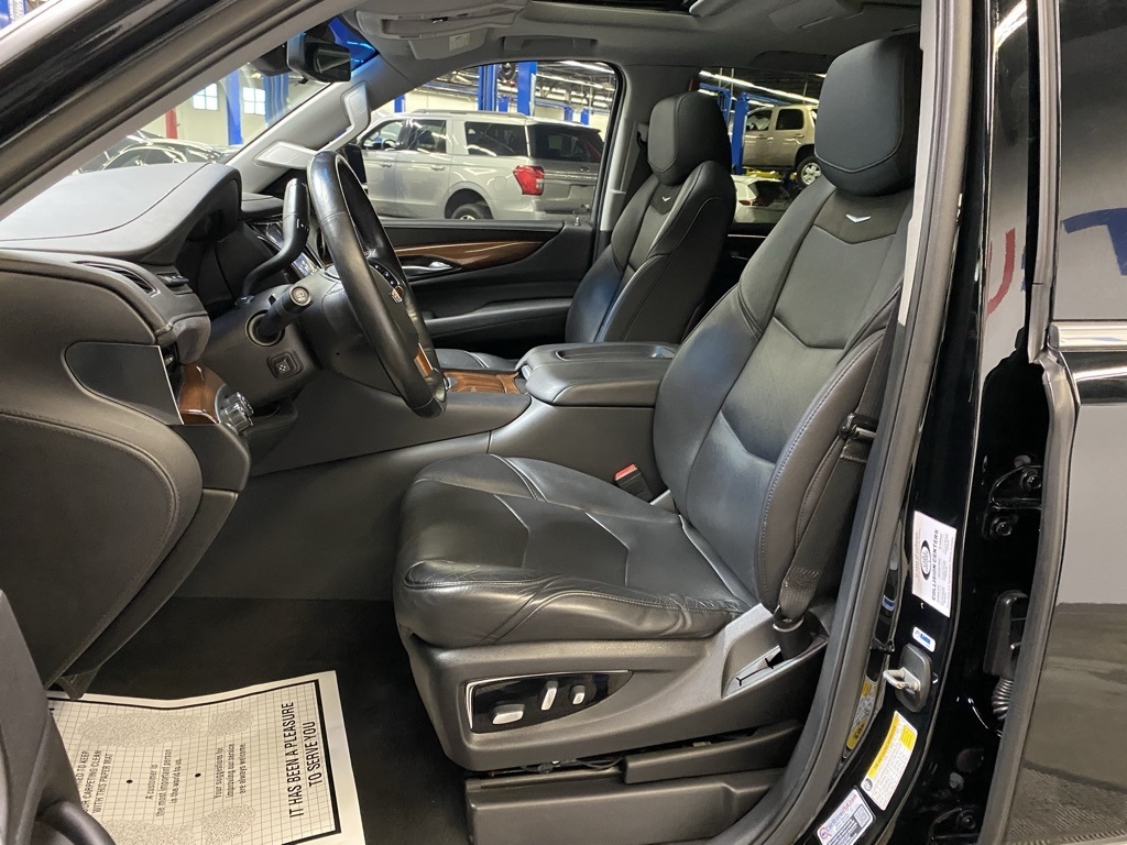 CARFAX One-Owner. THIS VEHICLE IS EQUIPPED WITH THE FOLLOWING FEATURES AND OPTIONS Driver Assist Package (Advanced Adaptive Cruise Control, Automatic Seat Belt Tightening, Electronic Powered Parking Brake, and Forward & Reverse Automatic Braking), Preferred Equipment Group 1SC (Forward Automatic Braking, Forward Collision Alert, Illuminated Door Handles, IntelliBeam Automatic High Beam On/Off, Lane Change Alert w/Side Blind Zone Alert, Lane Keep Assist w/Lane Departure Warning, Power Configurable Second Row Bucket Seats, Power Tilt-Sliding Sunroof w/Express-Open/Close, Rear Camera Mirror, Rear Camera Mirror Washer, Rear Cross Traffic Alert, Rear Seat Entertainment System, Reconfigurable 4-Color Head-Up Display, Running Side Board Assist Steps, Safety Alert Seat, and VAC Power 17" Disc Brakes), Theft-Deterrent Package (Inclination Sensor, Theft-Deterrent Alarm System, and Vehicle Interior Movement Sensor), 12-Way Power Front Passenger Seat Adjuster, 16 Speakers, 2-Presets Memory For Driver Seat Adjuster, 3.23 Axle Ratio, 3rd row seats: split-bench, 4-Wheel Disc Brakes, A/V remote, ABS brakes, Adaptive suspension, Adjustable pedals, Air Conditioning, Alloy wheels, AM/FM radio: SiriusXM, Apple CarPlay/Android Auto, Auto High-beam Headlights, Auto tilt-away steering wheel, Auto-dimming door mirrors, Auto-leveling suspension, Automatic temperature control, Black Front License Plate Bracket, Bodyside moldings, Bose Centerpoint 16 Speaker Surround Sound System, Brake assist, Bumpers: body-color, CD player, Compass, Delay-off headlights, Driver door bin, Driver vanity mirror, Dual front impact airbags, Dual front side impact airbags, DVD-Audio, Electronic Stability Control, Emergency communication system: OnStar Protection, Exterior Parking Camera Rear, Front anti-roll bar, Front Bucket Seats, Front Center Armrest w/Storage, Front dual zone A/C, Front reading lights, Front wheel independent suspension, Fully automatic headlights, Garage door transmitter, HD Radio, Headphones, Heads-Up Display, Heated & Cooled Driver & Front Passenger Seats, Heated door mirrors, Heated front seats, Heated rear seats, Heated steering wheel, Illuminated entry, Leather Seating Surfaces, Leather Shift Knob, Leather steering wheel, Low tire pressure warning, Magnetic Ride Control Suspension, Memory seat, Navigation System, Occupant sensing airbag, Outside temperature display, Overhead airbag, Overhead console, Panic alarm, Passenger door bin, Passenger vanity mirror, Pedal memory, Power door mirrors, Power driver seat, Power Liftgate, Power moonroof, Power passenger seat, Power steering, Power windows, Power-Retractable Assist Steps, Radio data system, Radio: AM/FM Cadillac User Experience w/Nav, Rain sensing wipers, Rear air conditioning, Rear anti-roll bar, Rear audio controls, Rear reading lights, Rear window defroster, Rear window wiper, Remote keyless entry, Roof rack: rails only, Security system, SiriusXM NavTraffic, SiriusXM Radio, Speed control, Split folding rear seat, Spoiler, Steering wheel memory, Steering wheel mounted audio controls, Tachometer, Telescoping steering wheel, Tilt steering wheel, Traction control, Trip computer, Turn signal indicator mirrors, Variably intermittent wipers, Ventilated front seats, and Wheels: 22" x 9" 7-Spoke Alloy w/Chrome Inserts. Black Raven 2019 Cadillac Escalade Premium Luxury 4WD 10-Speed Automatic with Overdrive 6.2L V8