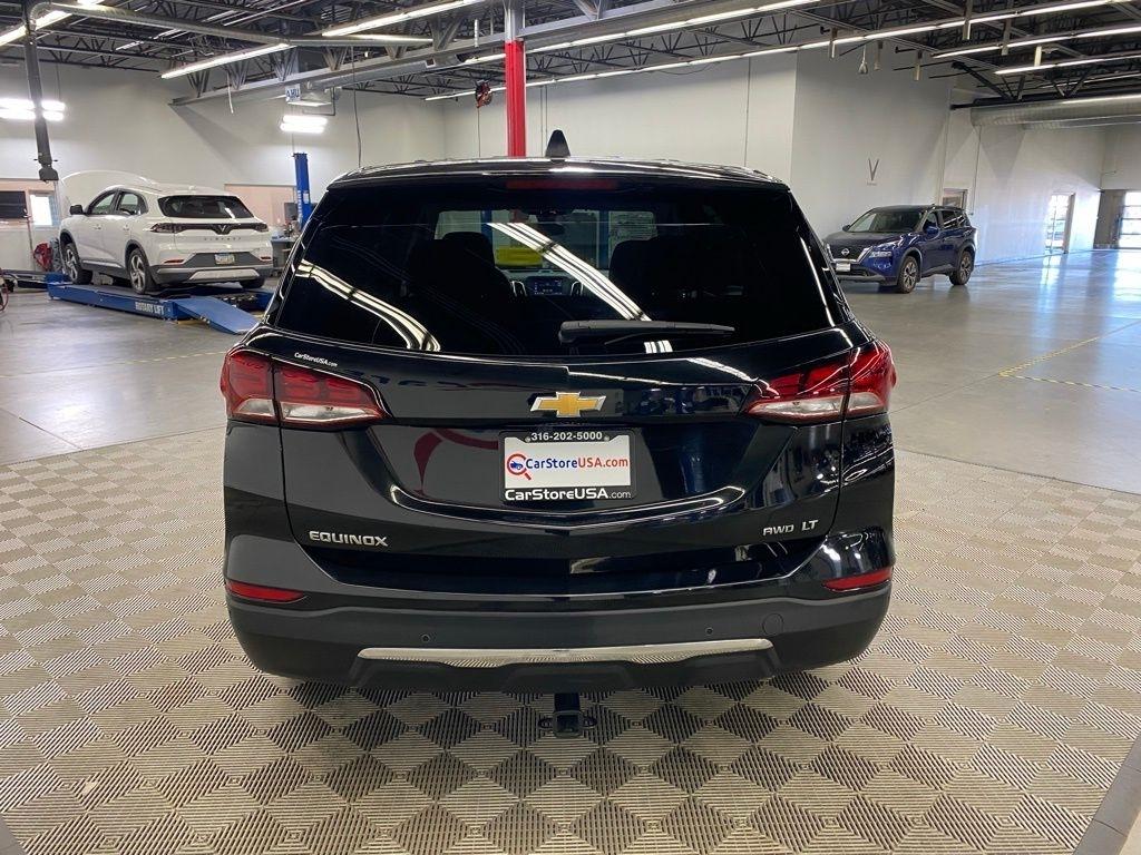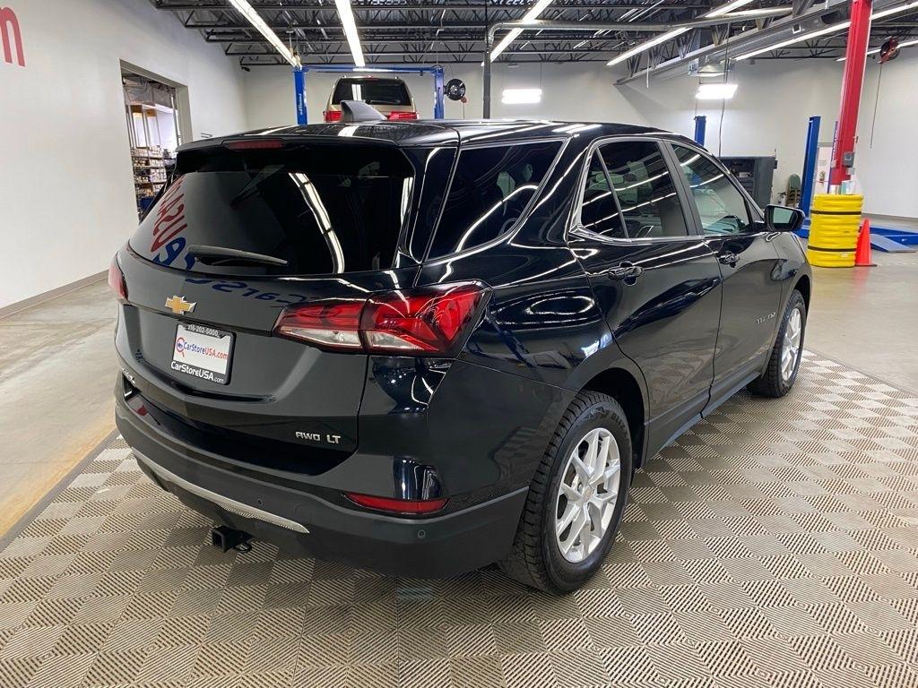 CARFAX One-Owner. THIS VEHICLE IS EQUIPPED WITH THE FOLLOWING FEATURES AND OPTIONS Driver Convenience Package (Dual-Zone Automatic Climate Control, Heated Driver & Front Passenger Seats, Rear Power Liftgate, Remote Start, and Wrapped Steering Wheel), Preferred Equipment Group 2FL, Side Blind Zone & Rear Cross Traffic (Lane Change Alert w/Side Blind Zone Alert and Rear Cross Traffic Alert), 17" Aluminum Wheels, 2 Rear USB Charging-Only Ports, 2 USB Ports & Auxiliary Input Jack, 2-Way Power Driver Lumbar Control Seat Adjuster, 3.87 Final Drive Axle Ratio, 4-Wheel Disc Brakes, 6 Speakers, 6-Speaker Audio System Feature, ABS brakes, Air Conditioning, Alloy wheels, AM/FM radio: SiriusXM, Auto High-beam Headlights, Bluetooth® For Phone, Brake assist, Bumpers: body-color, Cold Air Grille Shutter, Compass, Delay-off headlights, Deleted 3 Years of Remote Access, Driver 8-Way Power Seat Adjuster, Driver door bin, Driver vanity mirror, Dual front impact airbags, Dual front side impact airbags, Electronic Stability Control, Emergency communication system: OnStar and Chevrolet connected services capable, Four wheel independent suspension, Front anti-roll bar, Front Bucket Seats, Front Center Armrest, Front Passenger 4-Way Manual Seat Adjuster, Front reading lights, Fully automatic headlights, Heated door mirrors, Illuminated entry, Low tire pressure warning, Occupant sensing airbag, Outside temperature display, Overhead airbag, Overhead console, Panic alarm, Passenger door bin, Passenger vanity mirror, Power door mirrors, Power driver seat, Power steering, Power windows, Premium audio system: Chevrolet Infotainment 3, Premium Cloth Seat Trim, Radio data system, Radio: Chevrolet Infotainment 3 System w/AM/FM, Rear anti-roll bar, Rear reading lights, Rear seat center armrest, Rear window defroster, Rear window wiper, Remote keyless entry, Security system, SiriusXM Radio, Speed control, Speed-sensing steering, Split folding rear seat, Spoiler, Steering wheel mounted audio controls, Tachometer, Telescoping steering wheel, Tilt steering wheel, Traction control, Trip computer, Variably intermittent wipers, and Wireless Apple CarPlay/Wireless Android Auto. Clean CARFAX. Black Metallic 2023 Chevrolet Equinox LT AWD 6-Speed Automatic Electronic with Overdrive 1.5L DOHC