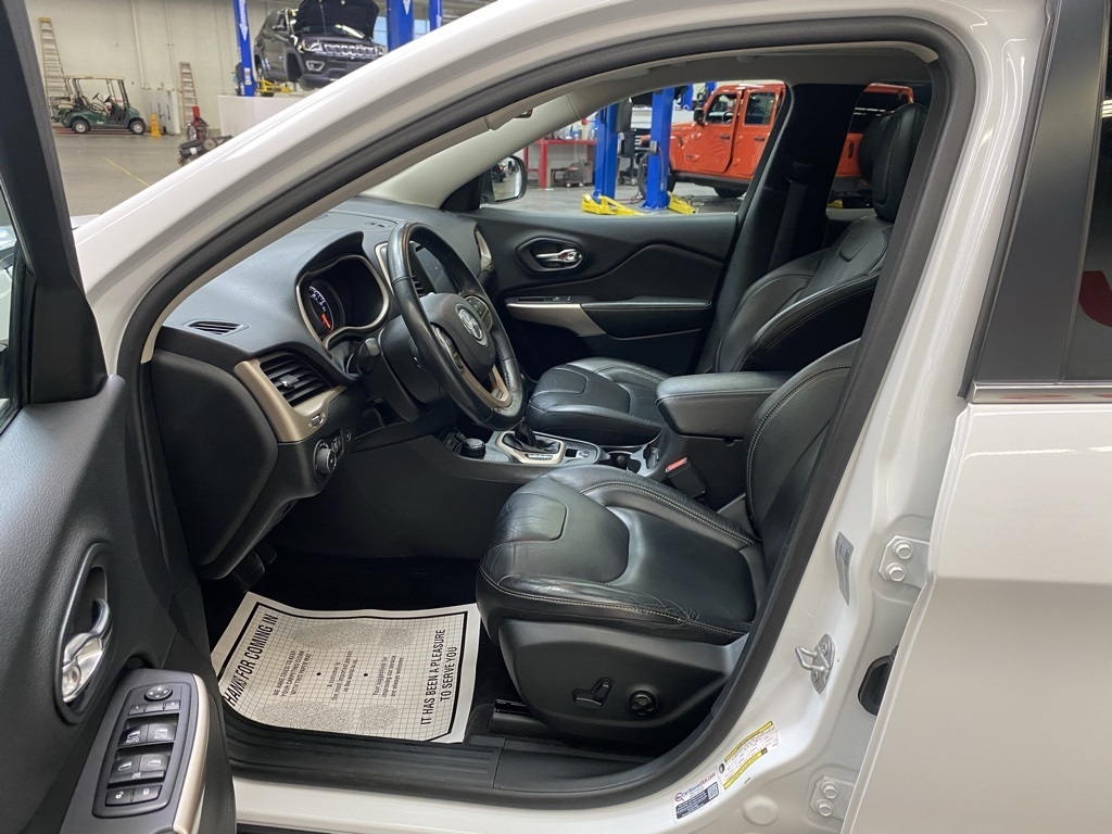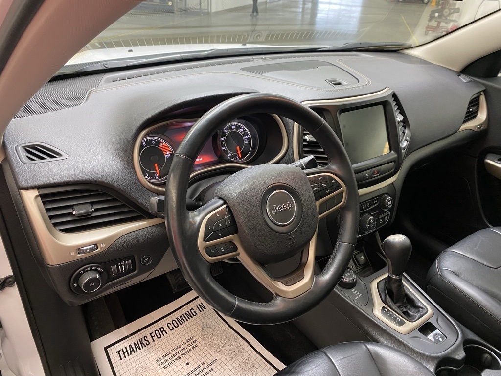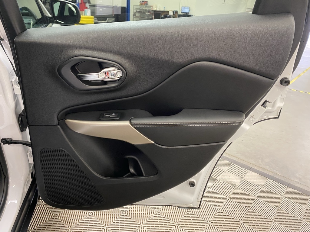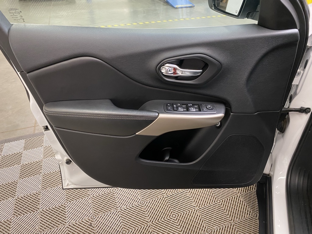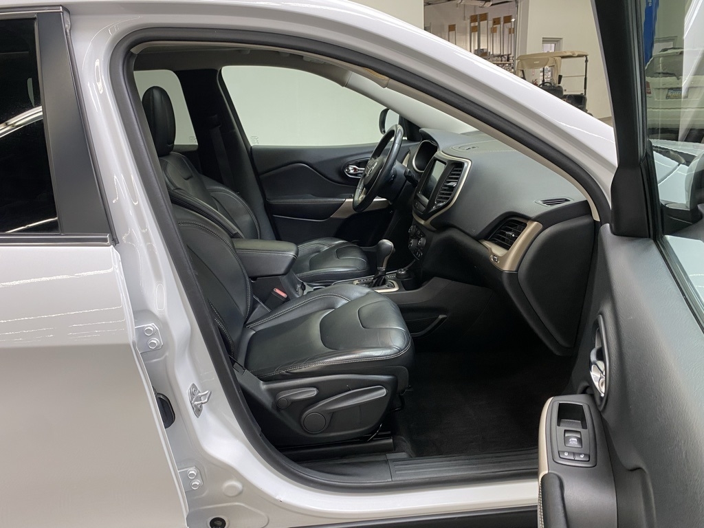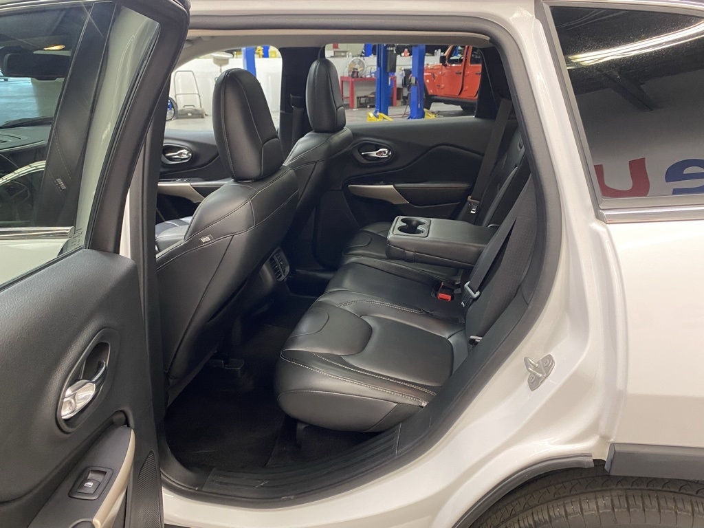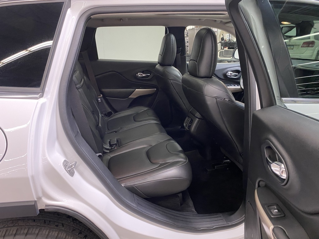 THIS VEHICLE IS EQUIPPED WITH THE FOLLOWING FEATURES AND OPTIONS Quick Order Package 26G, 3.734 Axle Ratio, 4-Wheel Disc Brakes, 6 Speakers, 600 Amp Maintenance Free Battery, 8.4" Touchscreen Display, ABS brakes, Active Grille Shutters, Air Conditioning, Alloy wheels, AM/FM radio: SiriusXM, Anti-whiplash front head restraints, Auto-dimming Rear-View mirror, Automatic temperature control, Auxiliary Transmission Oil Cooler, Brake assist, Bumpers: body-color, Compass, Delay-off headlights, Driver door bin, Driver vanity mirror, Dual front impact airbags, Dual front side impact airbags, Electronic Range Select, Electronic Stability Control, Emergency communication system: Uconnect Access, Engine Oil Cooler, Exterior Mirrors Courtesy Lamps, Exterior Mirrors w/Supplemental Signals, Four wheel independent suspension, Front anti-roll bar, Front Bucket Seats, Front Center Armrest, Front dual zone A/C, Front fog lights, Front License Plate Bracket, Front reading lights, Fully automatic headlights, Garage door transmitter, GPS Antenna Input, Heated door mirrors, Heated front seats, Heated steering wheel, High intensity discharge headlights: Bi-Xenon, Illuminated entry, Integrated Voice Command w/Bluetooth, Knee airbag, Leather Shift Knob, Leather Trimmed Bucket Seats, Low tire pressure warning, Normal Duty Suspension, Occupant sensing airbag, Outside temperature display, Overhead airbag, Overhead console, Panic alarm, ParkView Rear Back-Up Camera, Passenger door bin, Passenger vanity mirror, Power door mirrors, Power driver seat, Power Front/Fixed Rear Full Sunroof, Power Liftgate, Power steering, Power windows, Radio data system, Radio: Uconnect 3C w/8.4" Display, Rear anti-roll bar, Rear reading lights, Rear seat center armrest, Rear side impact airbag, Rear window defroster, Rear window wiper, Remote keyless entry, Roof rack: rails only, Security system, SiriusXM Satellite Radio, Speed control, Speed-sensing steering, Split folding rear seat, Spoiler, Steering wheel mounted audio controls, Tachometer, Telescoping steering wheel, Tilt steering wheel, Traction control, Trip computer, Turn signal indicator mirrors, Uconnect Access, Variably intermittent wipers, Voltmeter, and Wheels: 18" x 7" Painted Aluminum. Clean CARFAX. Bright White Clearcoat 2018 Jeep Cherokee Limited 4WD 9-Speed 948TE Automatic 3.2L V6